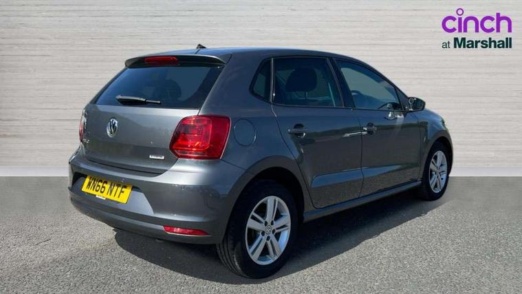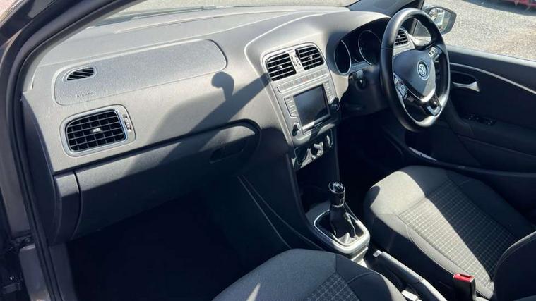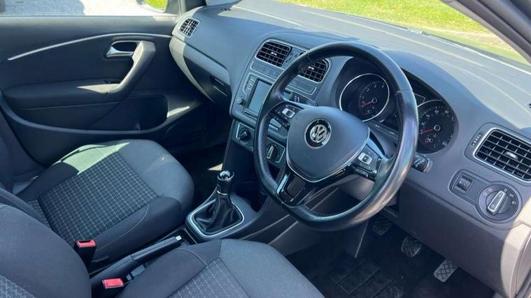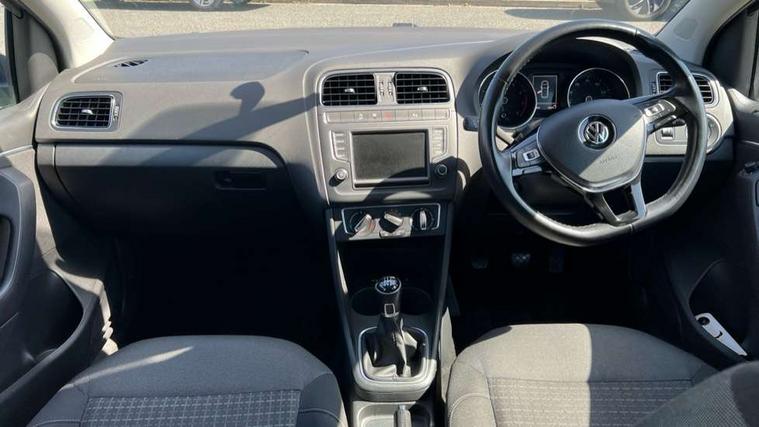 Bluetooth Telephone preparation, Driver alert system, Multi function display, Multifunction computer, PAS - speed related, Service interval indicator, Warning buzzer and light for front seatbelts unfastened, 6 speakers, Composition media system with radio, glovebox mounted CD, colour touch screen, SD card, aux-in, USB, multimedia interface, DAB Digital radio, Black grille with chrome surround, Body colour bumpers, Body colour door handles, Body colour door mirrors, Body coloured side sills, Chrome trimmed front air intake surrounds, Electric front windows, Electric operated/heated door mirrors, Front fog lights with static cornering function, Front wash/wipe with interval delay, Heat insulated tinted glass 65% light absorbing from B pillar back, Heated rear window with auto timer, Rear electric windows, Rear windscreen washer and wiper with interval delay, 12V power socket in centre console, 2 bag hooks in luggage compartment, 2 cupholders, 3 rear head restraints, 3 spoke steering wheel, 4 grab handles, 60/40 split folding rear seat, Centre console storage, Chrome interior door handles, Driver and passenger sunvisors, Driver seat height adjust, Dust/pollen filter, Front door pockets, Front passenger seat height adjust, Front seat backrest storage nets, Front/rear reading lights, Glovebox, Height/reach adjustable steering column, Illuminated vanity mirror, Interior light with delay, Isofix Preparation 2 Rear child seats, Luggage compartment cover, removable, Luggage compartment lighting, Matt chrome gear lever gaiter surround, Multifunction leather steering wheel with leather gear knob/handbrake grip, Storage compartment in front doors, Storage compartment in rear doors, Sunglasses holder, Variable boot floor, Cruise and Park Pack - Polo, 3 point height adj front seatbelts + pretensioners, 3x3 point rear seatbelts, ABS, Automatic post collision braking, Driver/front passenger airbag, Driver/Passenger whiplash optimised head restraints, ESC - Electronic Stability Control + traction control, ESP with EDL + ASR, Hill hold control, Hydraulic Brake Assist (HBA), Tyre pressure monitoring system, Alarm with remote central locking and interior protection, Electronic engine immobiliser, Air vents in Matt chrome, Matt chrome interior trim, 15" steel spare wheel,