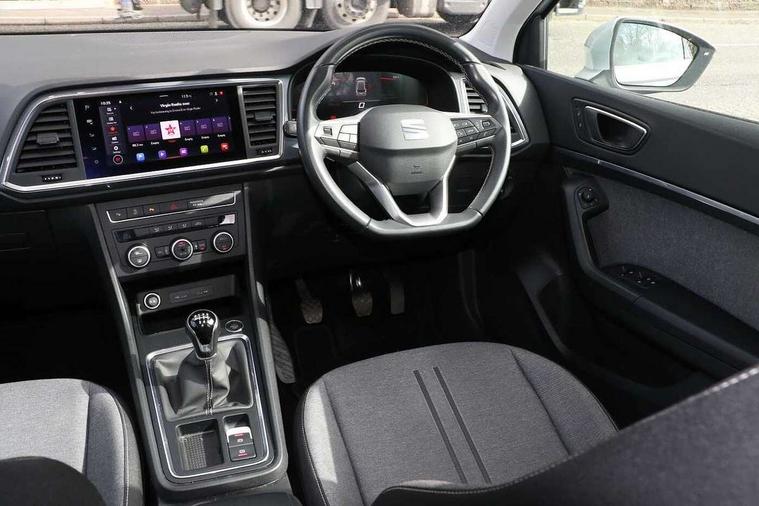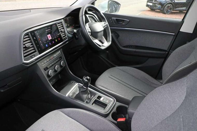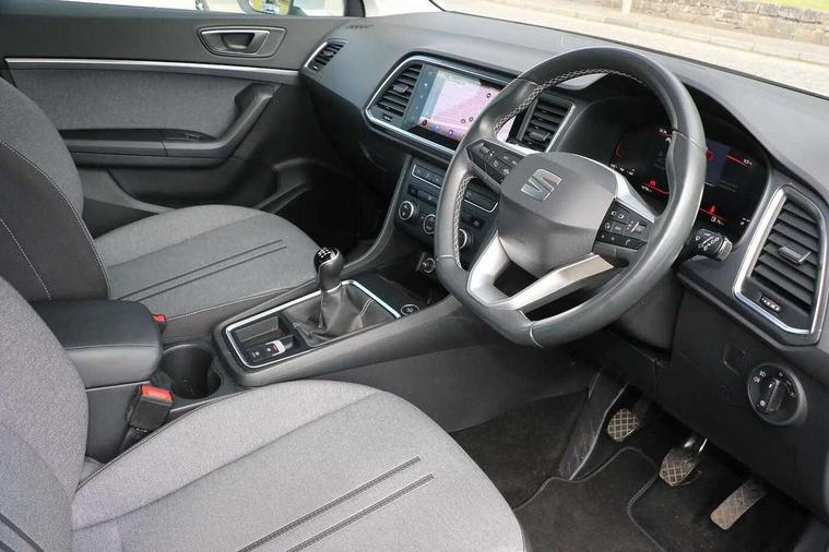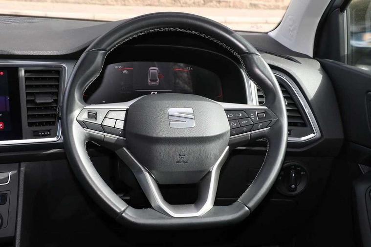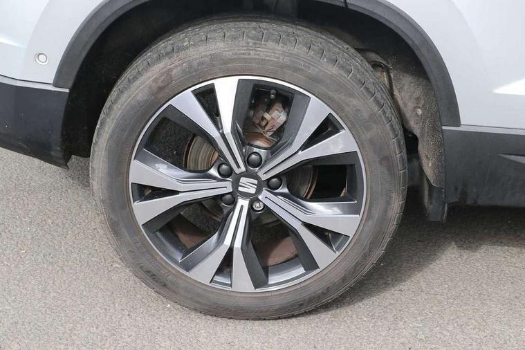 8" Digital cockpit, Colour multi-function on board computer display, Cruise control system with speed limiter, E-call, Outside temperature gauge, PAS, SEAT drive profile with driving experience button - Normal, Sport, Eco and Individual mode, steering and throttle response, Self parking functionality (includes front and rear parking sensors), Start/stop system, Tailgate, Trip computer, Wireless full link smartphone integration, Wireless phone charger, Steering wheel mounted audio/phone controls, Black wheel arch surrounds, Body colour bumpers, Chrome front grille frame, Chrome roof rails, Chrome side window trim, Daytime running lights, Door mirrors with welcome light silhouette, Dynamic headlight range control with self adjusting whilst driving, Electric adjustable/heated/folding door mirrors, Front and rear electric windows, Full LED headlamps with lens and LED front fog lamps with cornering function, LED rear tail lights with dynamic indicators, Rear fog lights, Rear side wing doors, Rear wash/wipe, Simulated exhaust pipes, Variable front intermittent wipers, 12V socket in front, 3 seat bench in 2nd row, 60/40 split folding rear seat, Cloth upholstery with front comfort seats, Drawer under right front seat, Dual zone climate control, Front and rear head restraints, Front centre armrest, Front seat back storage pockets, Height adjustable driver and passenger seat with lumbar adjustment, ISOFIX points in outer rear seats with top tether anchorage points, Leather steering wheel and gear knob, Rear armrest and easy back seat release mechanism from boot, Single front passenger seat, Interior lighting pack - Ateca, Navigation system pack with DAB - Ateca, 3x3 point rear seatbelts, ABS, Traction control system (TCS), Electronic stability control (ESC) and Electronic differential lock system (XDS), Airbags - Driver and front passenger airbag with deactivation, front side, two curtain and driver's knee airbags, Electric parking brake with auto hold function, Front and rear seatbelt reminder, Front assist with autonomous emergency braking, Hill hold control, Manual rear child locks, Single tone horn, Tiredness recognition system, Traction control, Tyre pressure monitoring system, Alarm, Keyless entry, Locking wheel bolts, Remote central locking, Chrome interior detailing, 18" Performance machined alloy wheels 36/2 in nuclear grey,