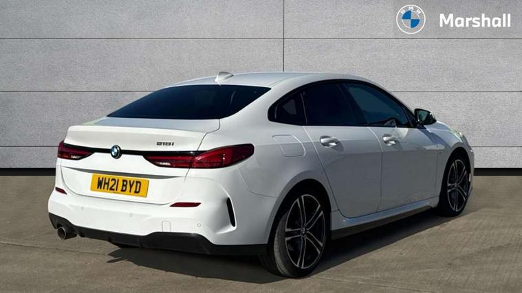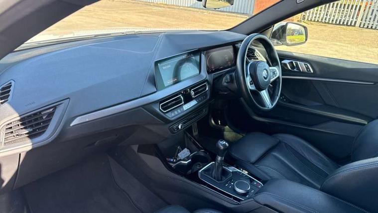 Active guard plus, Attentiveness assist, Auto start-stop, Bluetooth hands free facility with USB audio interface + WiFi interface for wireless connection of mobile terminal devices + audio streaming, BMW Intelligent Personal Assistant, BMW Live Cockpit Professional with 10.25" high resolution instrument and control display, BMW Online services, BMW operating system with 7.0 mid interface, BMW Teleservices, Check Control warning system for monitoring of lights and door/luggage compartment open warning, Cruise control with braking function, iDrive controller with touch function and 7 short cut favourite buttons on centre console, Integrated navigation data with map data via USB +features such as 3D landmarks and micro city models, Integrated owners handbook, Intelligent voice assistant, Lane departure warning system, M Sports steering, On board computer - average speed+fuel consumption, service interval, clock/date, odometer/trip meter, outside temperature display and ice warning, Optimum shift indicator, Personal Profile, Pull away assistant, Speed limiting function, 6 speed manual transmission, Aluminium lightweight construction, Balancer shaft, Double VANOS, Drive performance control with ECO PRO comfort + sport mode, Electronic differential lock, High precision injection, M Sport suspension with stiffer spring/damper set-up and vehicle lowered by 10mm + twin tube gasfilled shock absorbers and Anti roll bars, Performance Control, Petrol Particulate Filter, VALVETRONIC engine management, 2x USB Type C ports (for charging and data transfer), 4G LTE Connectivity with hard wied 4G network sim card, DAB digital radio, MP3 players and RDS double tuner, Stereo 6 speaker system with 2 mid range speakers in the front and rear door trims + 2 central bass speakers underneath the front seats, Automatically dimming rear view mirror, Body colour door handles, Body colour mirror caps, Chrome 'M' logo side designation, Chrome exhaust single tailpipe, round, Direction indicator side lights integrated exterior mirrors, Electric windows - front and rear, with open/close fingertip control and trap release, Exterior mirrors - electrically folding with anti-dazzle, Fading support, Follow me home headlights, Front and rear bumper system with replaceable deformation elements, Front door sill finishers in black plastic with M designation in metallic look, Heated, electrically adjustable exterior mirror aspheric on driver side, convex on passenger side, High gloss black B pillar finish, High gloss shadow line exterior trim, High level third brake light, LED daytime running lights, LED front fog lights, Lightweight engineering, Model designation on right side of tailgate, Preparation for high beam assistant, Rain sensor with automatic headlight activation, Rear fog lights, Reversing light in rear light cluster, Welcome lighting, 12V power socket in centre console, 2 cupholders in front centre console, 3 rear seat head restraints, 3 spoke M sports design leather steering wheel finished in nappa leather with specific M badge, Anthracite finished floor mats with contrasting surround, Anthracite headlining, Automatic two zone climate control air conditioning, Child seat ISOFIX attachment for two outer rear seats and front passenger seat with anchorage points, Conditioned based service, Driver and front passenger seat heating, Front and rear door pockets including bottle trays, Front and rear side armrests integrated into door trim, Front armrest foldable with integrated storage compartment, Front centre interior light over interior mirror and rear centre automatic interior light when door is opened/ignition switched off or via remote key, Front head restraints, Front sports seats with electric side bolster adjustment, Gearshift lever with M designation, Glove compartment, Glovebox with light, Luggage compartment lighting, Manually adjustment steering wheel column, Multi-function controls for steering wheel, Sun visors with vanity mirrors and insert tab, Through loading system with 40/20/40 split folding rear seat, Two lashing eyes, Additional interior lighting pack - 2 Series Gran Coupe, Connected pack professional - 2 Series Gran Coupe, Extended storage pack - 2 Series Gran Coupe, M Sport exterior styling aerodynamics pack - 2 Series Gran Coupe, 2 tone horn, Airbag - Front driver and passenger, front and rear head, front side, curtain head protection, manual deactivation of front passenger airbag possible, Anti lock braking system (ABS) with cornering brake control, BMW emergency call, Brake drying, Braking readiness, City braking function, Crash sensor activating of airbags, Unlocking doors, hazard warning lights, interior light, safety battery terminal, Dynamic stability control + (DSC+), Dynamic Traction Control - DTC, Electrically operated hand brake, Rear brake discs, Rear child proof door locks, Seat belt security check for driver and front passenger, Seatbelt warning, Side impact protection, Three point seat belts on all seats including front belt stopper, pyrotechnic belt tensioners and belt force limiters, Trailer stability control, Tyre pressure monitoring system, Ventilated front disc brakes, Warning triangle and first aid kit, Central locking switch for all doors, fuel filler cap and luggage compartment, Deadlocking function system to all doors, Drive away locking system on all doors and luggage compartment, Locking wheel bolts, Start/Stop button (illuminated) in centre console with keyless engine start and Auto Start-Stop deactivation button, Thatcham Cat.1 alarm and immobiliser, Two remote control key with integrated key - open/close doors/fuel flap/tailgate +1 button for unlock compartment with M design high gloss black inlay, Contrast stitching on instrument panel, 18" Burnished M double spoke bi-colour alloy wheels finished in orbit grey - style 819M, Reduced rolling resistance tyres,