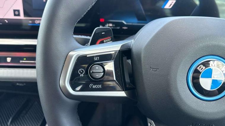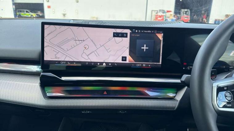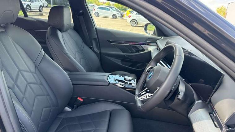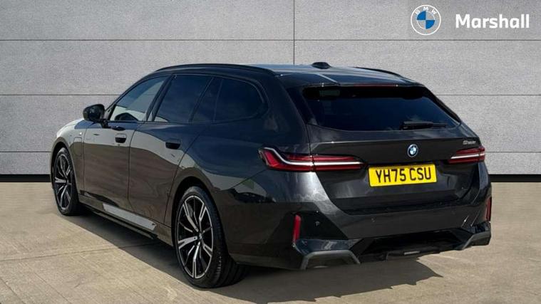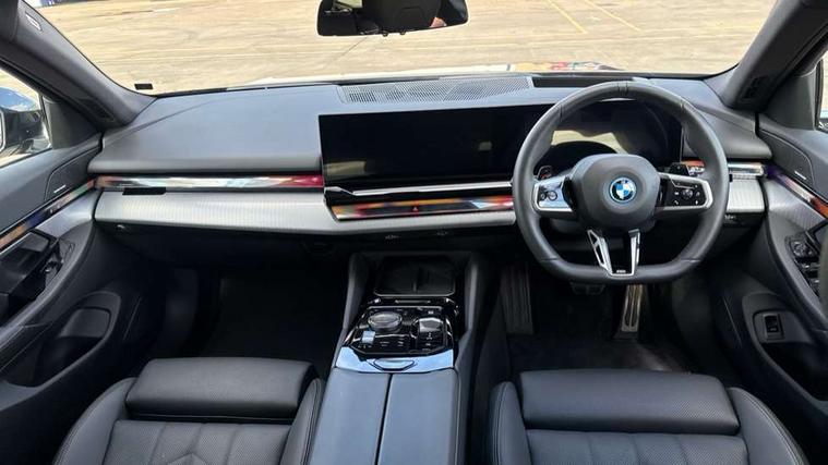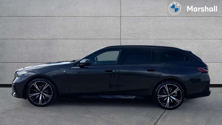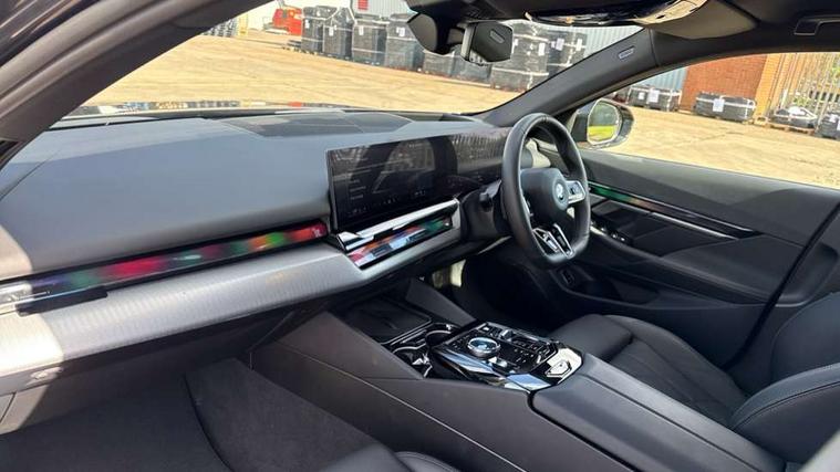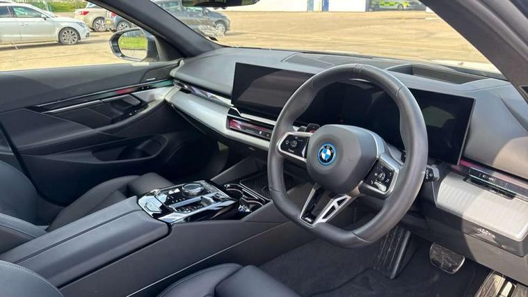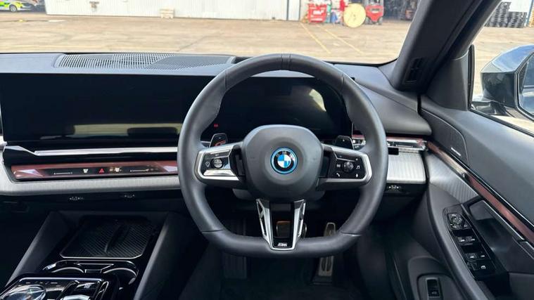 Automatic tailgate operation, BMW ConnectedDrive online services, BMW Iconic sounds electric, BMW legal emergency call, BMW Teleservices, Brake pad wear indicator, Cruise control with brake assist, Driving Assistant Plus Preparation, Front collision warning with brake intervention, Lane departure warning with active return, Left turn warning with brake function, Multifunctional instrument panel, Oil sensor for level and grade, On board computer inc. average speed, fuel consumption, liquid crystal Info display, journey computer, outside temperature display, personal profile, On-board diagnosis - OBD, PAS, Personal e-SIM, Powered by Operating System 7.0, Run flat indicator, Service interval indicator, Speed limit Info with manual speed limit assist, Stop/start button, 8 speed automatic steptronic transmission with gearshift paddles, AC charging cable professional (mode 3) for public charging, DAB tuner, Acoustic glazing, Adaptive LED Headlights, Automatic cornering lights, Automatic windscreen wipers and automatic headlight, BMW selective beam, Body colour door handles, Body coloured bumpers, Dynamic brake lights with LED technology, Electric adjustable door mirrors, Electric front and rear windows with fingertip open/close + anti-trap facility and comfort closing function, Follow me home headlight function, Headlight elements in blue, Heated windscreen washer jets, LED daytime running lights, LED third brake light, Light colour close to that of ordinary daylight, Optimum, homogeneous illumination of the road, Rear side wing doors, Rear wiper, 2 zone automatic air conditioning, 3 seat bench in 2nd row, 3 spoke leather M steering wheel in BMW M specific design with M badge, Armrest - front and rear integrated door trim, centre console includes storage compartment, rear centre includes 2 cupholders, Child seat ISOFIX attachment with rear outer seats includes top tether, Electric adjustable front sports seats, Electric adjustable steering column, Electrically adjustable lumbar support for driver and front passenger, Heated driver and front passenger seats, High-gloss black door switch cluster, power window switch and tailgate button on first and second row seat, M Anthracite headlining, M Sport pedal covers in stainless steel, Rear headrests, Single front passenger seat, Through loading system with 40/20/40 rear seat backrest split, Velour floormats, Wireless charging tray, Ambient lighting pack - 5 Series/I5, Connected package professional - 5 Series/I5, Driving assistance pack - 5 Series/I5, Expanded exterior mirror package - 5 series/I5, M high gloss shadow line pack - 5 Series/ I5, M Sport exterior styling pack - 5 Series/I5, 3 rear three point seatbelts, Active protection, Airbag deployment is controlled with respect to the intensity and scope, Anti-lock braking system (ABS), Brake assist, Brake energy regeneration, Cornering brake control (CBC), Crash sensor activating central locking release, hazard warning lights, fuel cut off and interior lighting, Driver and front passenger airbags, Driver central airbag, Driver/front passenger side airbags, DSC - Dynamic Stability Control, Dynamic brake control, Dynamic Traction Control - DTC, Electromechanical parking brake with automatic drive away release and auto hold function, Electronic brake force distribution, Engine drag torque control, Front and rear brake discs with interior ventilation, Front and rear curtain airbags, Front head restraints with anti-whiplash, Head airbags for first and second row seats, Hill start assist, Locking of doors after driving off, M Sport brake in blue high gloss painted brake callipers with monochrome logo on front calliper, Mechanical child proof lock on rear doors, PC iBrake PostCrash approach control warning with light braking function, Side impact protection, Trailer stability control, Two tone horn, Tyre pressure monitoring system, Warning triangle and first aid kit, Alarm system, Locking wheel bolts including wheel bolt adapter, Tyre repair kit,