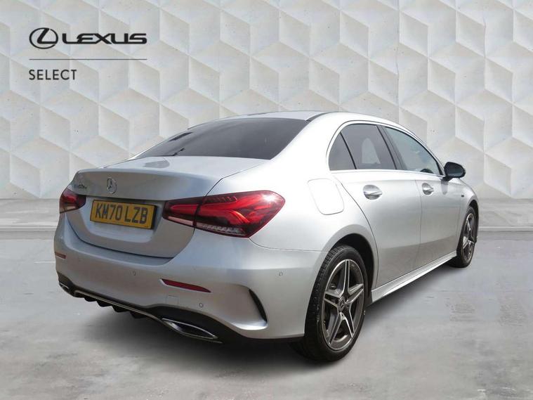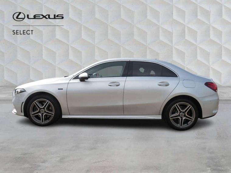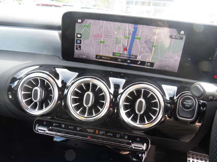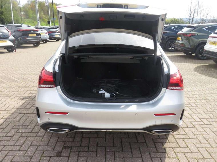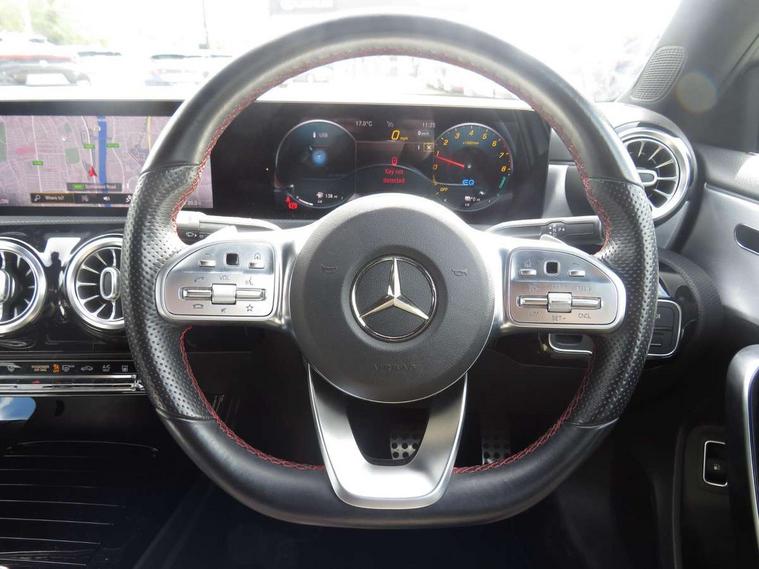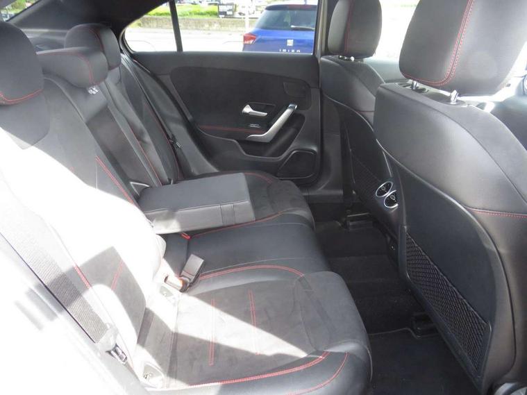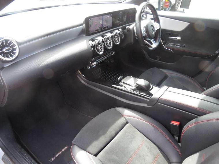 10.25" Digital instrument cluster display screen, 10.25" media display, 180 degree rear view camera with parking guidelines, Acoustic ambient protection, Active lane keep assist, Active park assist with parktronic system including front and rear parking sensors, Attention assist, Brake pad wear indicator warning light, Car wash mode, Cruise control + speed limiter, Direct steering, Dual bluetooth interfaces, DYNAMIC SELECT with a choice of driving modes (ECO, Comfort, Sport and Individual), ECO start/stop function, Fluid level warning indicator for fuel, oil, coolant and washer fluid, Hard-disk navigation, Hey Mercedes Voice activation, Lamp failure indicator, MBUX augmented reality for navigation, Mercedes me connect including emergency call system, accident recovery, breakdown and maintenance management, Outside temperature gauge, Owners manual in English, Pre-installation for private car sharing, Pre-installation for Vehicle Monitoring, Pre-installation for Vehicle Setup, Preinstallation for Mercedes Benz link, Service indicator (ASSYST), Smartphone integration with Apple CarPlay and Android auto, Speed sensitive power steering, Trip computer, Wireless charging, 7.4 kW monophase on board charger, Comfort suspension, Mode 3 charging cable 11 kW, Rear axle multi-link, 10 speakers, 2 USB ports (type C) in rear stowage compartment and one in front of center console, DAB Digital radio, MBUX multimedia system with DAB digital radio and touchpad including satellite navigation, Mercedes-Benz advanced sound system - 225W, 4 Electric Front and Rear windows, Adaptive brake lights, AMG bodystyling - Front apron with splitter in chrome, rear apron with chrome trim and chrome visible trim elements in tailpipe, Black weather strip, Body colour bumpers, Body colour door handles, Body colour side skirt, Body coloured door mirrors, Chrome beltline trim, Diamond radiator grille with chrome pins and silver louvre + chrome insert, Electric adjustable and heated door mirrors with integrated LED side indicators, EQ badging, Exhaust system - Twin visible tailpipes in polished stainless steel, Headlamp assist automatic headlamp activation, Heated glass rear windscreen + timer control, Illuminated front door sill panels with Mercedes-Benz lettering, LED high performance headlamps with integrated LED daytime running lights, LED tail lamp, LED third brake light, Privacy glass, Radio aerial, Rain sensing windscreen wipers with two sensitivity settings, Rear fog lights, Window line trim strip in chrome, 3 Spoke flat bottom leather multi function steering wheel with perforated leather in grip area, 40:20:40 split folding rear seats, Artico man-made leather/Microfibre Dinamica upholstery with red contrast stitching, Auto Mercedes-Benz child seat recognition sensor, Black air vents with surround in silver chrome, Black roof lining, Brushed stainless steel sports pedals with rubber studs, Charging socket, Controller on centre console with chrome surround, Floor mats with stitched edging and AMG lettering, Front centre armrest with storage compartment, Front seat backs luggage nets, Front seat cushion length adjustment, Front sports seats with adjustable head restraints, Galvanished gear shift paddles on steering wheel, Heated front seats, Height/reach adjustable steering column, Interior lighting - 64 colour Ambient lighting, Interior mirror with reading lamps in black and frameless, Manual height adjustable front seats, Pre-entry climate control, Rear armrest with 2 cupholders, Rear head restraints, Seat occupancy sensor for front passenger seat, Stowage compartment in centre console with retractable cover, Sunvisors with illuminated vanity mirrors, Touchpad on center console, Twin front cupholders, Two zone thermotronic luxury automatic climate control, Light and sight pack - A Class, Mirror package - A Class, Seat comfort pack - A Class, 3 rear 3 point seatbelts, ABS with Brake Assist, Active bonnet, Active brake assist includes forward collision warning system with autonomous braking, Adaptive brake assist with hold function and hill start assist, Childproof locks manually operated for rear doors and electrically operated for rear power windows, Crash responsive emergency lighting, Driver and passenger head and side airbags, Drivers knee airbag, Dual stage driver/passenger airbags, Electronic parking brake, ESP curve dynamic assist, ESP with ASR, Front and rear seatbelt reminder, Front brake callipers with Mercedes Benz lettering, ISOFIX and top tether child seat fixing points in two outer rear seats, Perforated front brake discs, Radar based regeneration, Tyre pressure monitoring system, Warning triangle and first aid kit, Window airbags, Alarm system/interior protection/immobiliser, Keyless entry lock/unlock, Keyless Go, Remote central locking and crash sensor with emergency opening function, Urban guard vehicle protection system with immobiliser and interior protection, Black seatbelts, Light aluminium with longitudinal grain interior trim, 18" AMG 5 twin spoke light alloy wheels in titanium grey with highsheen finish, Summer tyres, Tirefit sealant kit,