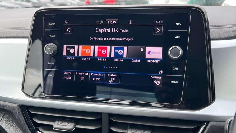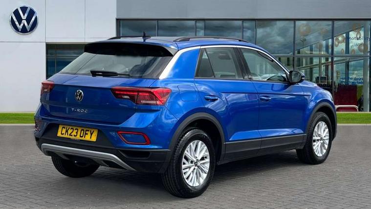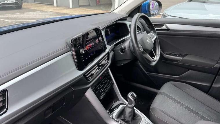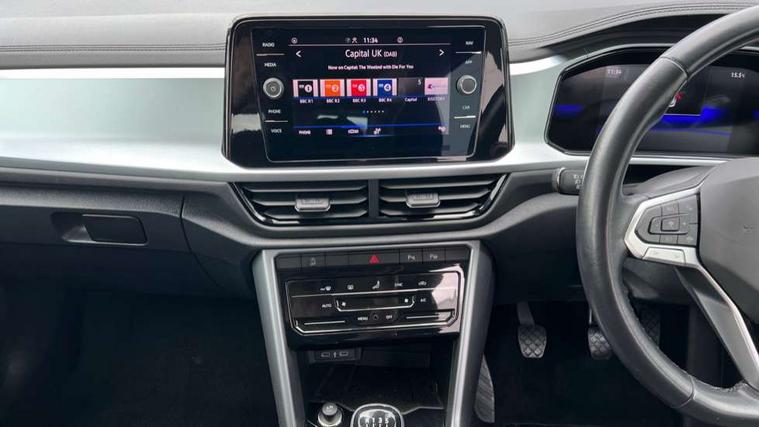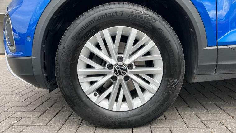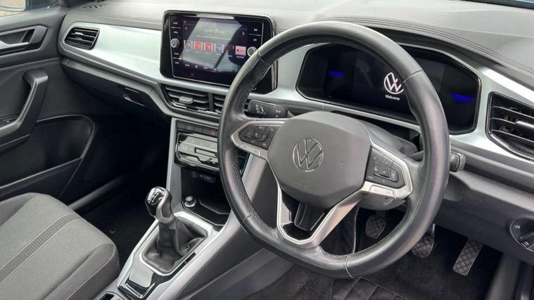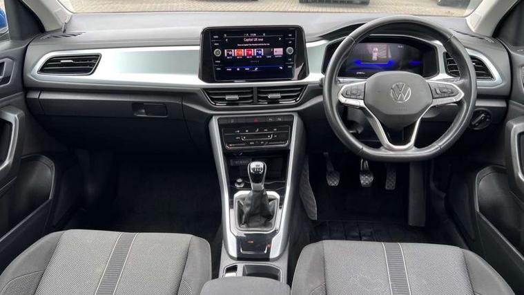 Bluetooth mobile phone interface, Driver alert system with fatigue detection, Driver tips and journey analysis, Emergency call service, Lane keeping system Lane Assist, Modified key software - reduce switch off time for key status change to Long no motion, Online services, Park assist including front and rear parking sensors, Power assisted speed sensitive steering, Service interval indicator, Tailgate/trunk lid release from outside, Think blue trainer driver tips and journey analysis, Warning sound and light for front seatbelts unfastened, Wireless app connect, Battery regeneration during braking, Front shock absorption, Rear shock absorption chassis with increased ride height, Start/stop function with battery regeneration, DAB Digital radio, Diversity antenna for FM reception, Front and rear 6 speakers, Music playback - MP3, WMA and AAC files, Premium USB cable in choice of either Apple or Android smartphone compatibility, SD card slot, Simultaneous pairing of 2 compatible mobile devices, Title and cover art display, We Connect and We Connect Plus functionality, 3rd brake light, Auto dimming interior rear view mirror, Automatic hazard lights activation under emergency braking, Automatic headlight control with LED separate daytime running lights with coming/leaving home function, Black roof rails, Body coloured bumpers and radiator grille with chrome trim and front fog lamps with chrome bezel, Body coloured exterior mirror housings and door handles, Extended roof spoiler, Exterior mirrors aspherical on driver side, convex on front passenger side, External USB type C socket and charging sockets, Front windscreen wiper with intermittent wipe and 4 position delay, Heated rear window, LED Headlights, LED rear combination lamps, LED rear number plate lights, LED tail lamp rear comination lamps, Power windows with comfort operation and circuit breaker, Rain sensor, Rear exhaust tailpipe, Rear fog light on one side and reversing lights on both sides, Rear side wing doors, Rear wash/wipe with intermittent wipe setting, Remote electrically foldable door mirrors, puddle lights and reverse activated passenger's door mirror, 12V power socket in centre console, 3 rear head restraints, 3 seat bench in 2nd row, 4 load lashing points in luggage compartment, Air care climatronic air conditoning system with active combination filter and 2-zone temperature control, Ambient lighting with mirror logo projection, Cloth upholstery, Door and side trim panel in cloth, Drawer under drivers seat, Driver/front passenger seat height adjustment, Front centre armrest, Front comfort sports seats, Front cupholders x 2, Front reading light, Instrument lighting, white adjustable panel illumination, Interior light delay, Isofix child seat preparation, Leather gearshift handle, Load-through provision with cup holder when folded down ('Unsplit rear seat bench, split folding backrest, with centre armrest), Luggage compartment lighting, Lumbar support for driver's and front passengers seat, Non-folding front passenger seat backrest, Single front passenger seat, Storage compartment in left and right luggage area, Storage compartment in rear doors, Storage compartments in driver and front passenger doors, Sunvisors with illuminated vanity mirrors, Variable boot floor, height adjustable and removable, Driver assistance pack without proactive passenger protection - T-Roc, 3 point height adj front seatbelts + pretensioners, 3 point seatbelts in outer rear with ECE label, ABS, Child locks on rear doors, Driver and front passenger airbag with front passenger airbag deactivation, Driver and front passenger safety-optimised head restraints, Drivers seatbelt reminder, Electronic parking brake, Electronic Stability Control (ESC) inc EDL (Electronic Differential Lock) and ASR (Traction Control), Front and rear passengers curtain airbag system including front side airbags, Front assist with city emergency braking and pedestrian monitoring, Front disc brakes, Front seat side impact airbags, Hill start assist, Predictive pedestrian protection, Rear disc brakes, Single tone horn, Tyre pressure loss indicator, Volkswagen roadside assistance, Alarm with interior protection, Anti-theft alarm system with interior monitoring, backup horn, and towing protection, Remote central locking with SAFELOCK, radio remote control with 2 remote control folding keys, Pewter matt decorative inserts for intrument panel, centre console and door panels at the front, Trims for alloy wheels,