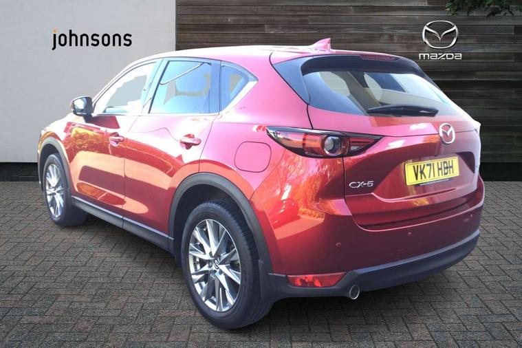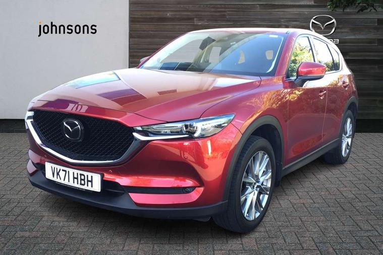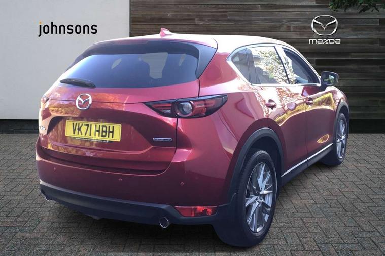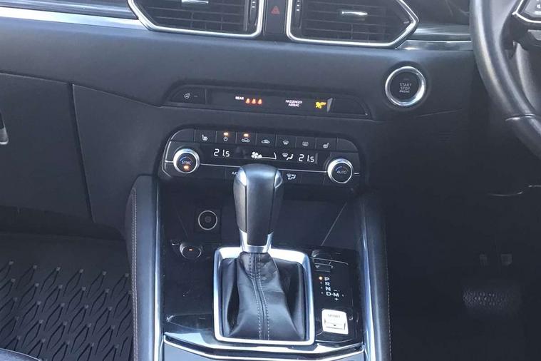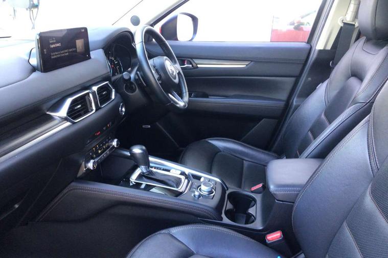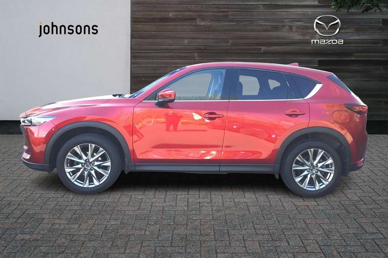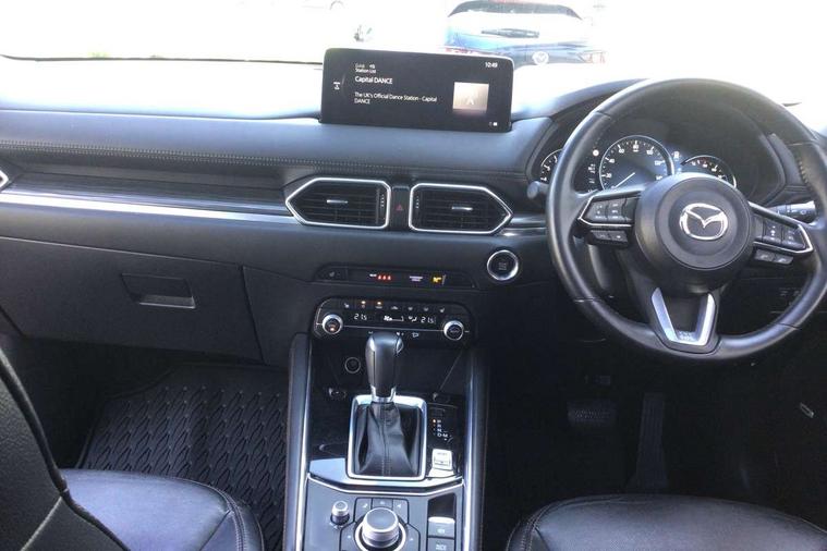 10.25" display with Mazda Connect infotainment, 7" colour TFT display, Apple car play/Android Auto, Blind spot monitoring with rear cross traffic alert, Bluetooth connectivity with voice control, Collision prevention assist, Colour head up display, Connected services, Electric power steering, Emergency stop signalling system, Engine start/stop button, Forward collision warning, Front and rear parking sensors, Integrated navigation system, Intelligent speed assist, Lane departure warning system, Lane keep assist, Power tailgate, Radar cruise control with Stop and Go, Reversing camera, Service indicator, Traffic sign recognition, Trip computer, i-stop, 2 USB sockets in rear, 2x USB sockets in front, AM/FM radio, Bluetooth audio streaming, Bose premium sound system with 10 speakers, DAB Digital radio, Multimedia Commander including separate volume dial, Steering wheel mounted audio controls, Adaptive front lighting system, Auto dimming rear view mirror, Body colour door mirrors, Body colour roof spoiler, Body coloured front bumper with black lower mouldings, Body coloured rear bumper with black lower mouldings, Coming/leaving home lighting function, Door mirror integrated indicators, Dual exhaust pipes, Dusk sensitive headlamps, Electric adjustable/heated/folding door mirrors, Electric front/rear windows/one touch facility, High beam assist, Intermittent rear wash/wipe, LED daytime running lights, LED front fog lights, LED Headlights, LED third brake light, Power tilt/slide sunroof, Privacy glass, Rain sensing front wipers, Scuff plates, Shark fin roof aerial, Signature LED rear combination lights, Windscreen wiper de-icer, 2 cupholders, 3 grab handles with rear coat hook, 40:20:40 Karakuri fold-flat seat system, 6 way electric adjustable passenger seat, 8 way electric driver seat with lumbar support + memory, Driver/passenger front seatback pockets, Driver/passenger sunvisors + illuminated vanity mirrors (drivers with ticket holder), Dual zone climate control, Front and rear door pockets, Front centre armrest, Front centre console storage box, Heated front seats, Heated steering wheel, Height adjustable head restraints, Humidity sensor, Illuminated glovebox, Interior dome light with integral spotlight, Interior incandescent lighting, ISOFIX child seat anchorage points attached on outer rear seats, Karakuri tonneau cover, Leather steering wheel/gearknob/handbrake grip, Leather upholstery, LED interior illumination, Light roof lining, Luggage compartment lighting, Rear air vents, Rear centre armrest with 2 cupholders, Rear headrests, Rear power outlet, Rear seat recline, Sunglasses holder, Tilt/height adjustable steering wheel, 3 point front seatbelts with pre-tensioners, 3 rear 3 point seatbelts, ABS, Advanced Smart City Brake Support - SCBS, DSTC-Dynamic Stability and Traction Control, Dual front airbags, Electronic brake force distribution, Electronic parking brake with auto hold, Front and rear curtain airbags, Front passenger airbag deactivation, Front side airbags, G-Vectoring control, Hill hold assist, Seatbelt reminder front and rear, Smart brake support with forward obstruction warning, Tyre pressure monitoring system, Automatic door locking when moving off, Deadlock, Immobiliser, Power door locks, Remote central locking, Smart keyless entry, Thatcham Cat.1 alarm, Upper dashboard and door trim in wood grain metal, 19" Silver alloy wheels, Tyre repair kit,