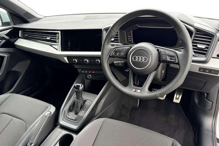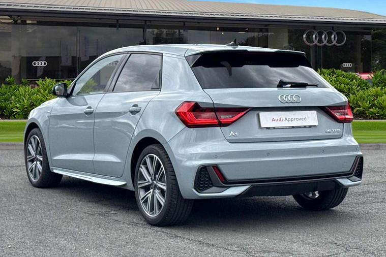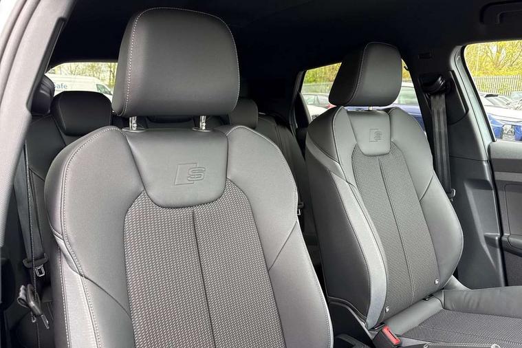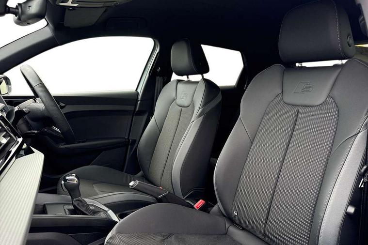 10.25" Digital instrument cluster display classis style instrument dials + speed, odometer, time, outside temperature, telephone menu + fuel level warning, Advanced driver attention and drowsiness monitor, Audi connect emergency call and service, Audi drive select, Audi remote connect and control, Audi smartphone interface, Bluetooth interface, Camera based traffic sign recognition, Cruise control, Driver's information system, Electromechanical power steering, Lane departure warning system, Rear parking sensor, Service interval indicator, Speed limiter, Start stop system with recuperation, Voice control system, Washer fluid level indicator, Sports suspension, 2 x USB type C connection points, 6 loudspeakers, DAB Digital radio, MMI radio plus with 10.1" colour MMI display screen and MMI touch, Auto dimming rear view mirror, Body coloured door mirrors, Door sill trims with aluminium inlays and S line logo in front, Electric front and rear windows, Electrically adjustable, heated, folding door mirrors with integrated LED side indicator, Front side air inlets in grained matt black and C frame in anthracite black, Headlight cleaning system, Heat insulating glass windscreen and side windows, Heated rear windscreen, High level LED brake light, LED daytime running lights, LED headlights with range control LED rear lights + dynamic rear indicators, Light and rain sensors, Privacy glass, Radiator grille and rear diffuser in matt anthracite black, Radiator protective grille frame in matt aluminium silver, Rear fog lights, Rear side wing doors, Rear wiper, S line badges on front wings, Side front spoiler lips in grained matt black, 12V socket in centre console with two cup holders, 3 rear seats with headrests, 3 seat bench in 2nd row, 3 spoke leather multi-function plus steering wheel features S badging and grips in perforated leather with contrast stitching, 40:60 Split folding rear seat or fully collapsed, Black cloth headlining, Front and rear velour black floor mats with contrast stitching in fine silver, Front head restraints, Front passenger seat, Height and reach adjustable steering wheel, Interior lighting includes roof module, front and rear reading lights and right luggage compartment lighting, ISOFIX child seat mounting for front passenger and outer rear seats including top tether attachment point of outer rear seats, Leather gear knob with aluminium trim, Leather handbrake grip, Manual air conditioning, Manual height adjustable for driver and front passenger seat, Manually adjustable lumbar support in front seats, Stainless steel pedals, Ambient lighting package - A1, Luggage compartment pack - A1, S line exterior styling pack - A1 Sportback, 3x3 point rear seatbelts, Audi pre-sense front with pedestrain and cyclist recognition, Brake assist function, Driver and front passenger airbag with front side and head airbags, Electronic Stability Control including ABS, EBD, ASR and EDL, Front passenger airbag deactivation switch, Hill hold assist, Manual rear child locks, Seatbelt height adjustment for front seats, Seatbelt monitoring, Tyre pressure loss indicator, Warning triangle and first aid kit, Anti theft alarm, Anti theft wheel bolts, Immobiliser, Remote control key with safelock, Aluminium trim for control switches, air vents and digital instrument cluster, Black dashboard, Silver grey inlays polygon structure in diamond paint finish, Structured grey accent surfaces insert of air vents, interior door handle recesses and centre console in quartz paint finish,
