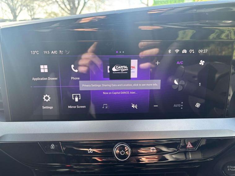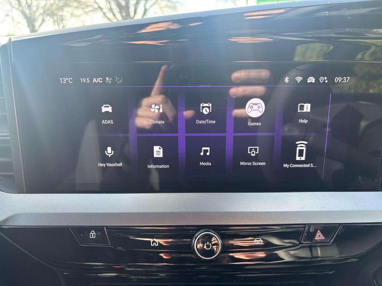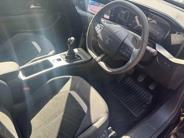 10" digital instrument cluster, Active drive assist, Adaptive cruise control, Digital instrumentation with digital speedometer, rev counter, fuel and water temperature gauge, Driver attention alert, Driver drowsiness alert system, Driver information display with multi function trip computer, audio info, digital clock and outside air temperature with ice warning function, Front and rear parking distance sensors, Lane keep assist system (LAS) with Lane departure warning system (LDWS), Lights on audible warning, Panoramic rear view camera, Power assisted speed sensitive steering, RDS with traffic programme, Side blind spot alert and flank guard, Speech recognition, Speed sign recognition, Start/stop system, Vauxhall connect with e-Call, WiFi connectivity, Wireless phone projection with Apple CarPlay and Android Auto, Sports chassis, 2 rear USB connection, 6 speakers, AM/FM stereo radio with 36 station presets, DAB Digital radio, Front USB connection, Mobile phone portal - bluetooth connect, vehicle microphone, handsfree calls, SMS read out and reply, phone book access, Multimedia pure panel navigation system with 10" colour touchscreen and 15W wireless charger, Steering wheel mounted controls, Adaptive brake lights, Automatic headlamp levelling, Automatic high beam assist, Automatic lighting control with tunnel detection, Black DLO, Black door mirror housings, Black grained plastic door and wheel arch claddings, Black grained plastic front and rear bumper inserts, Black Griffin logo and vizor frame, Black lettering and emblems, Black upper window moulding, Body colour door handles, Body colour front and rear bumpers, Body colour skid plates, Dark tinted rear side windows, Electrically adjustable and heated door mirrors, Electrically foldable door mirrors, Electrically operated front and rear windows with safety auto reverse and one touch up/down facility, Electrochromatic frameless auto dimming rear view mirror, Hazard warning lights, Heated rear window+rear wash/wipe, Integrated black tailgate spoiler, IntelliLux matrix headlights with advanced forward lightning and anti glare beam, LED 3rd brake light, LED daytime running lights, LED side repeat indicators, LED tail lights, Rain sensitive windscreen wipers, Rear side wing doors, Reversing light, Shark fin antenna, Solar heat absorbing windscreen and windows, Windscreen and side window demist vents, 12V Accessory socket, 3 seat bench in 2nd row, 4 speed fan with illuminated controls, 4 way electrical driver lumbar adjustment, 6 way adjustable front passenger seat including height adjustment, 60/40 split folding rear seat, Air recirculation system, Ambient lighting, Black headliner, Cabin particulate filter - removes dust, airborne particles and pollen, Chrome effect interior door handles, Door pockets with two litre capacity, Driver and passenger heated seats, Driver and passenger sun visors with vanity mirror, Driver seat massage function, Electronic climate control (ECC), Four adjustable facia vents, Four load restraint lashing eyes, Front centre armrest with storage, Front driver and co-driver side articulated grab handles, Front head restraints, Front map reading lights, Front seat back storage pockets, Fully carpeted load area, Heated steering wheel, Interior courtesy light, Interior tailgate handle, Luggage compartment cover, Luggage compartment lighting, Moveable boot floor, Reach + rake adjustable steering column, Rear Reading Lamps, ReNewKnit fabric/leather upholstery, Single front passenger seat, Three height adjustable rear seat head restraints, Twin gas assisted tailgate struts, Vegan leather steering wheel, 2x Isofix child seat fitting on outer rear seats, 3x3 point rear seat belts, Anti-lock braking system (ABS), Child proof locks on rear doors, Cornering brake control, Deactivation switch for front passenger front and side impact airbags, Drag torque control, Driver and front passenger airbags, front seat side impact airbags, full size curtain airbags, Electronic brake force distribution, Electronic Stability Programme (ESP), Emergency brake assist, Enhanced automatic emergency braking with pedestrian and bicycle detection, Forward brake assist, Forward collision alert at all speed, Hill start assist, Inertia reel lap and diagonal seatbelts for all seats, Manual parking brake, Seatbelt unfastened audible warning and warning light, Straight line stability control, Traction control, Tyre pressure monitoring system, Electronically protected audio equipment, Engine deadlock immobiliser, Freewheeling door locks, Key left in ignition audible warning, Keyless entry and start, Locking wheel nuts, Remote control central locking, Remote control ultrasonic security alarm system, Visible vehicle identification number, Black facia with silver trim insert, Light grey trim inserts on front doors, Vegan door inserts, 18" Black diamond cut alloy wheels,