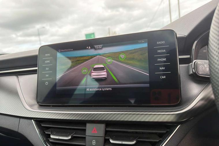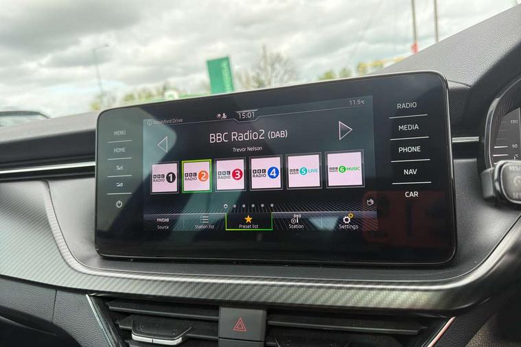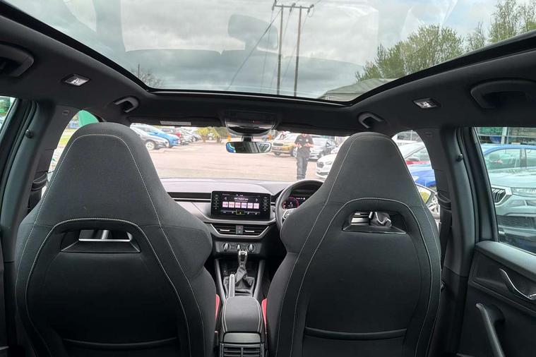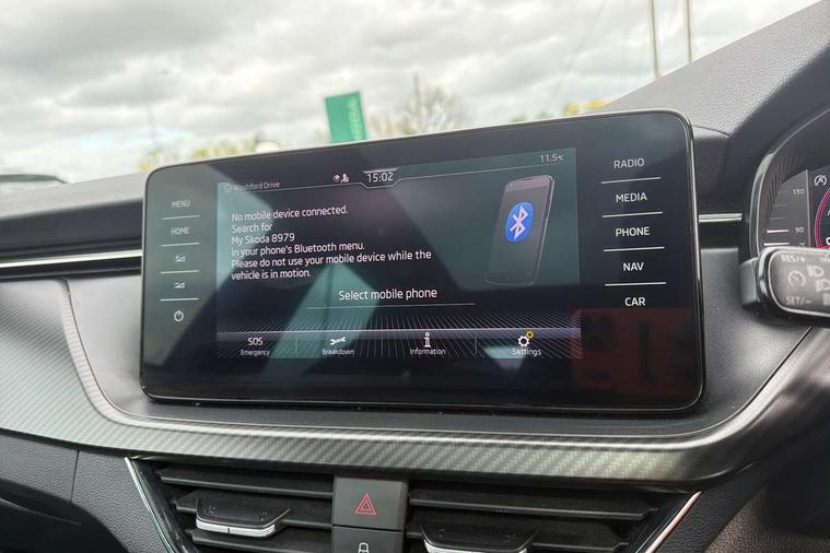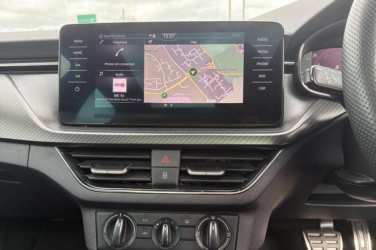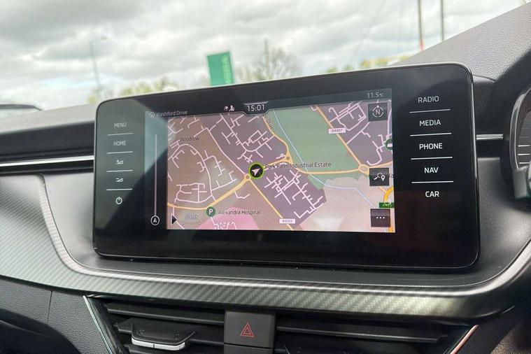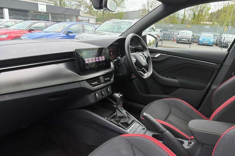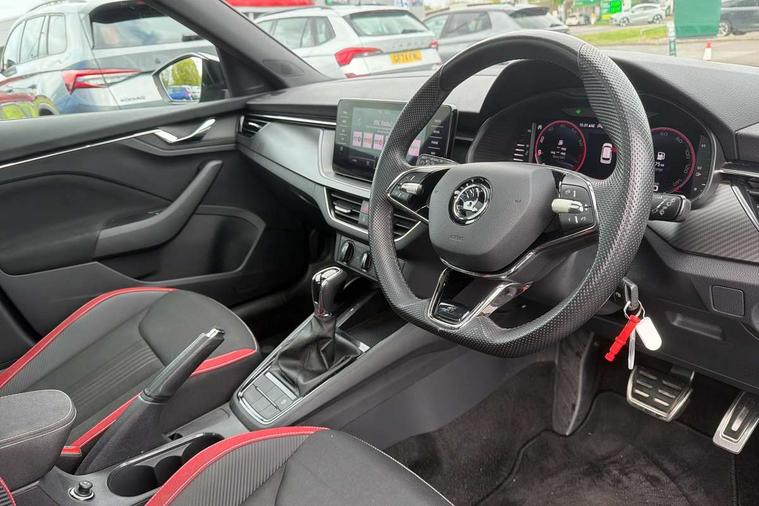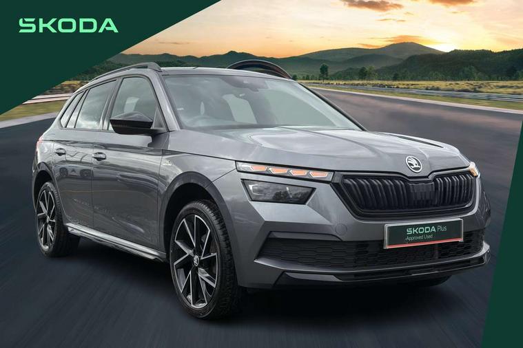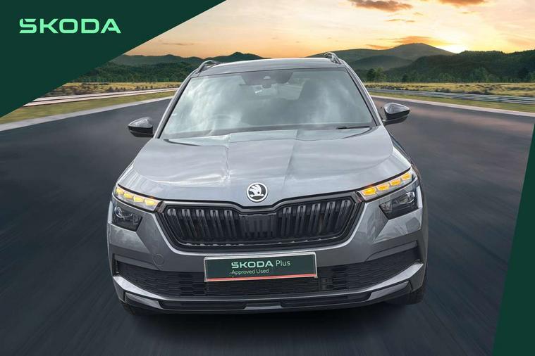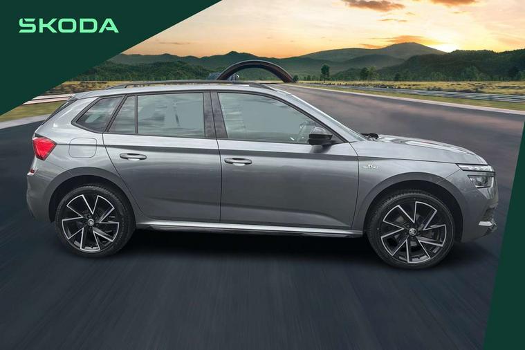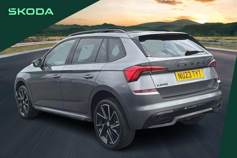 Amundsen satellite navigation with 9.2" glass colour touchscreen display, web radio, voice control and traffic sign recognition, Bluetooth system, E-call, Front assist system, Gesture control, PAS, Service indicator, Speed limiter, Wireless SmartLink for apple car play, android auto and mirrorlink, 8 Speakers, Auxiliary input socket, DAB Digital radio, Black door mirrors, Black radiator grille, Black rear diffuser, Body colour bumpers, Body colour door handles, Body colour roof spoiler, Boot lettering in black, Chrome grille surround, Dimming rear view mirror with black surround, Electrically adjustable and heated door mirrors, Fixed panoramic sunroof with black roof rails, Front and rear electric windows, Front sport bumper, Full LED headlights with adaptive front light system and front cornering fog lights, Headlight range control, Heated rear window, High functionality rear led lights with dynamic indicators, KAMIQ Door sills, LED daytime running lights, LED third brake light, Light sensors, Monte carlo plaque, Privacy glass, Rain sensor, Rear fog lights, Rear side wing doors, Rear wiper, 12V Accessory socket in centre console, 3 seat bench in 2nd row, Aluminium pedals, Black ceiling for black/beige interior, Black roof lining, Chrome inner door handles, Cloth upholstery, Front head restraints, Glove compartment with illumination, Ice scraper, Isofix child seat fittings on outer rear seats, ISOFIX on front passenger seat, Leather gear lever, Manual lumbar support for front seats, Rake/reach adjustable steering wheel, Reading lights, Single front passenger seat, Sports seats, Sun visors with illumination on front passenger, Textile floor mats, Third rear headrest, Top tether for front passenger seat, Umbrella in driver's door, 3x3 point rear seatbelts, Airbags - driver and front passenger, ESP, Front passenger airbag deactivation switch, Front side airbags with curtain airbags, Hill hold control, Manual parking brake, Manual rear child locks, One tone horn, Rear disc brakes, Seatbelt reminder for driver an co-driver, Traction control, Tyre pressure monitor, Anti-theft alarm system with interior monitoring, backup horn, towing protection and remote central locking with SAFE system, Anti-theft wheel bolts, Electronic engine immobilizer, Chrome air vent surrounds, 18" Vega alloy wheels in black,