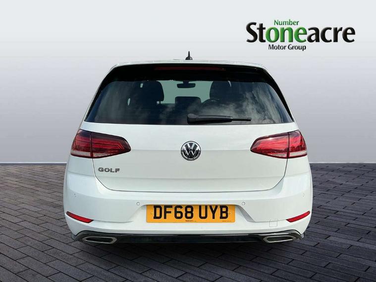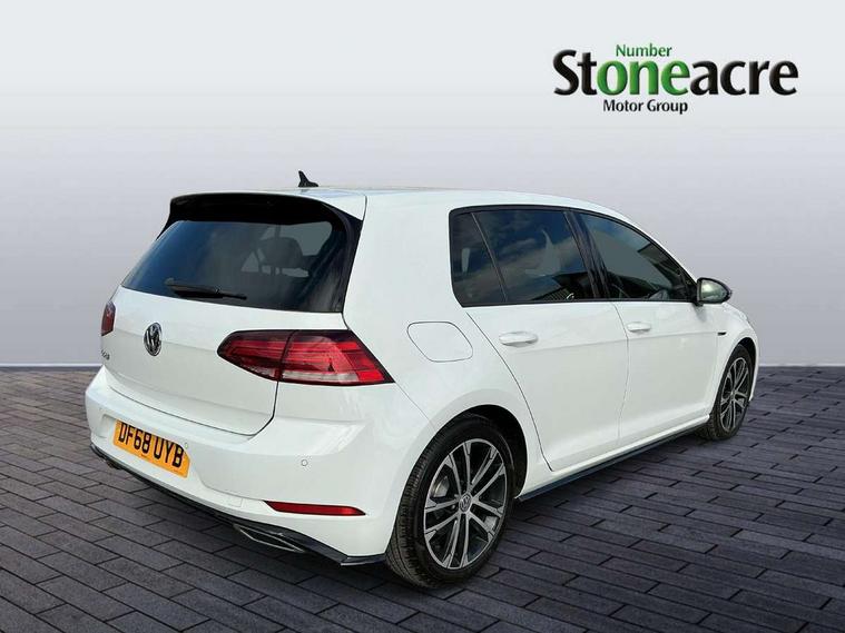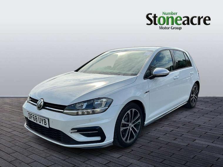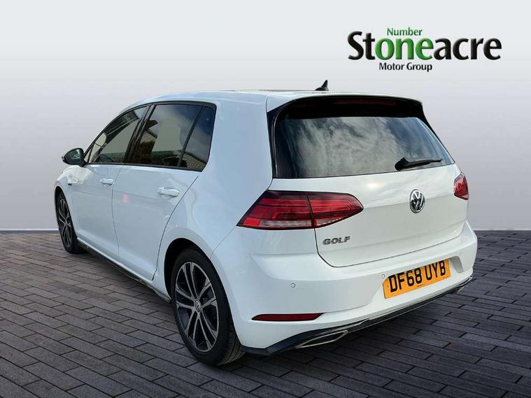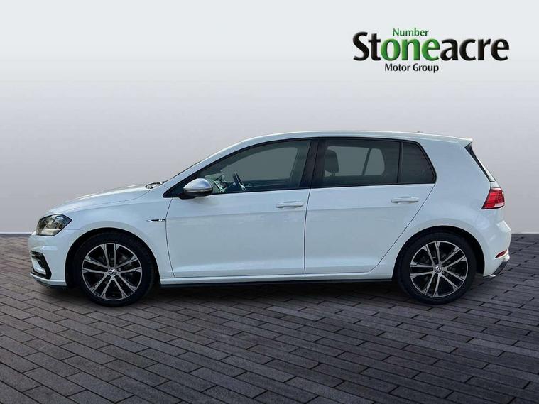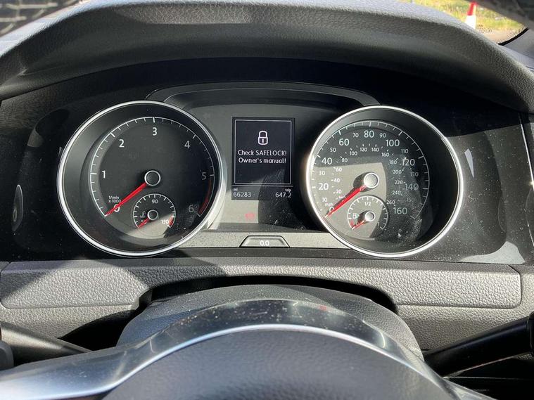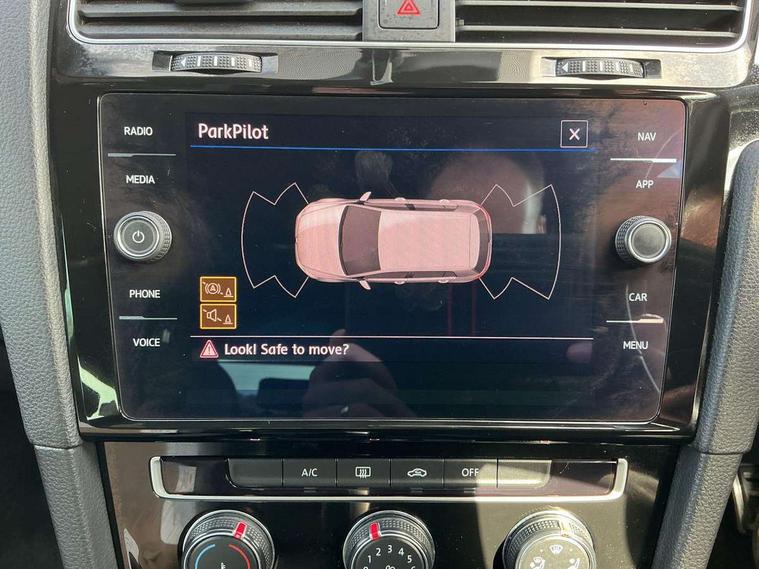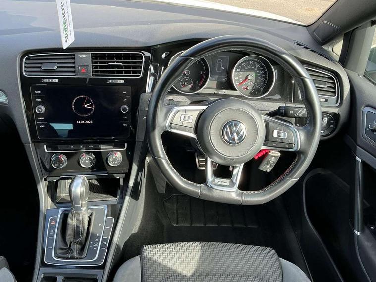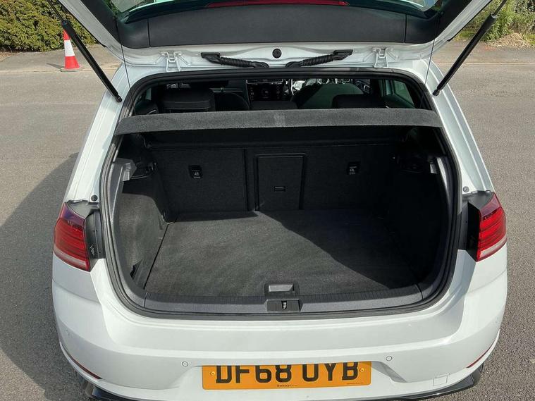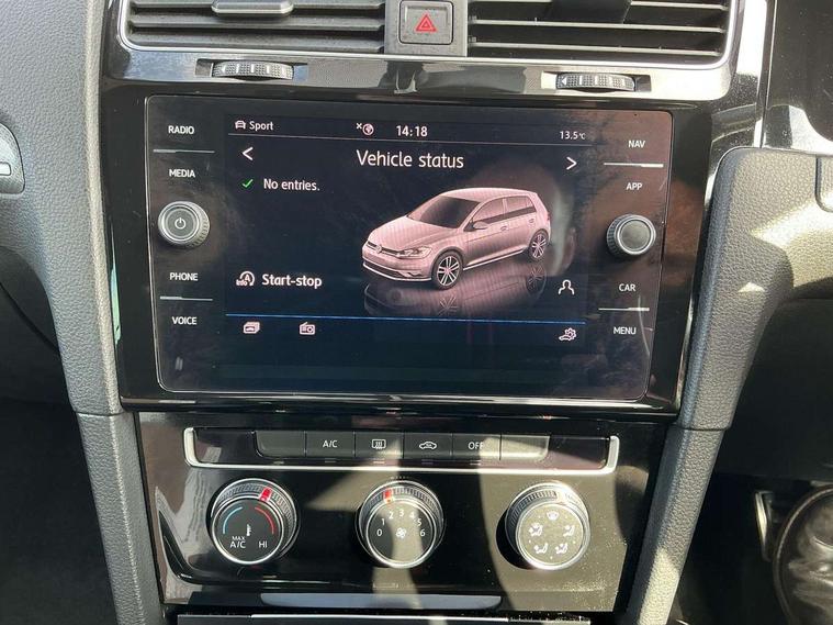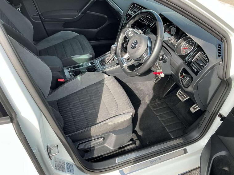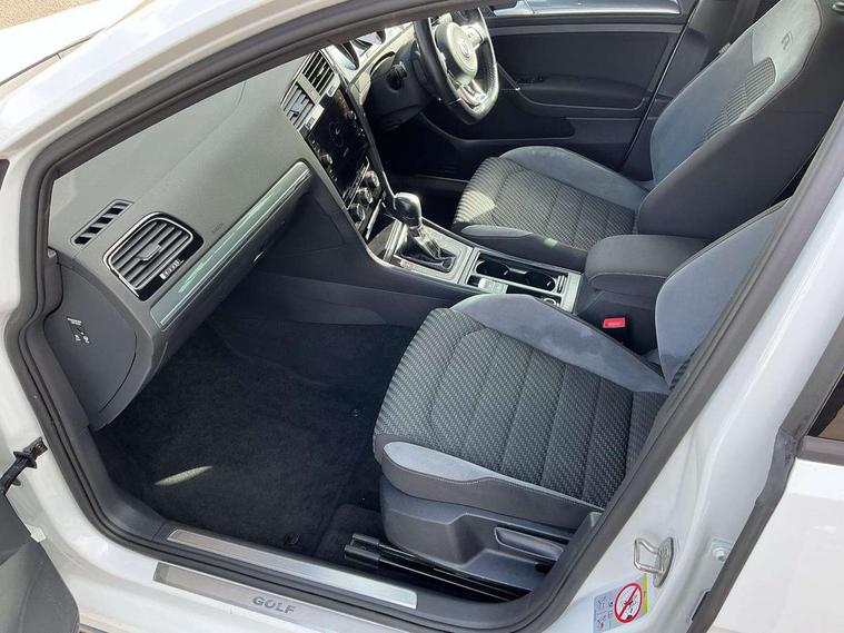 'Lights On' Reminder warning buzzer, ACC - Adaptive cruise control with front assist, forward collision warning, distance monitoring, city emergency brake and speed limiter, Bluetooth telephone and audio connection for compatible devices, Brake pad wear indicator warning light, Driver alert system, Driver profile selection, Driving Mode Selection with four preset modes - Eco, normal, sport or individual modes, Front assist, radar sensor controlled distance monitor, city emergency braking + predictive pedestrian protection, Front assistant collision mitigation, Instrument cluster in white, Misfuelling protection device, Multifunction computer with visual gear change recommendation for fuel consumption, Power assisted speed sensitive electro-mechanical steering, Speed limit display, Speedo, rev counter, electronic odometer, trip, service interval display, exterior temperature and fuel gauge, Stop/start system, Ultrasonic front and rear optical and audible parking sensors, Warning buzzer and light for front seatbelts unfastened, Battery regeneration during braking, Diesel particulate filter, Lowered sports suspension, XDS electronic differential lock, Composition media system, DAB Digital radio receiver, MDI multi device interface, MP3/WMA compatability, Multi device interface (MDI) with USB connection, Premium USB cable in choice of either Apple or Android smartphone compatibility, SD card slot, SMS Functionality, Title and cover art display, 4 X 20W output, USB connection and socket, USB and SD card connectivity, Automatic dimming rear view mirror/rain sensor, Black front air intake and radiator grille with chrome insert, Black sports rear diffuser, Body colour bumpers, Body colour door handles, Body colour door mirrors with integrated indicators, Chrome grille surround, Chrome trimmed front air intake surrounds, Electric front windows, Electric rear windows, Electrically adjustable and heated door mirrors, Glavanised body, Heated rear windscreen, High level 3rd brake light incorporating LED Technology, Left and right chrome effect trapezoid dummy exhaust tailpipe surrounds, Range adjustable headlights via infotainment system with LED daytime running lights, Rear fog lamp, Rear number plate lights incorporating LED technology, Rear tinted glass 65% light absorbing from B pillar backwards, Rear window aerial, Rear window wash/wipe with intermittent wipe, Reflectors in all doors, Remote electrically foldable door mirrors, door mirror puddle lights and reverse activated kerb-view adjustment on passengers door mirror, Stainless steel door sill protection, Windscreen wipers/ intermittent wipe + 4 position delay, 12V socket in luggage compartment, 3 rear headrests, 4 load lashing points in luggage compartment, 60/40 split folding rear seat backrest, Bag hook in luggage compartment x 2, Black roof lining, Cooled glovebox, Dust/pollen filter, Front + rear carpet mats, Front centre armrest with storage compartment and two rear air vents, Front footwell lights, Front seat back storage pockets, Grab handles front x 2, rear x 2 with integrated coat hooks, Height and reach adjustable steering wheel, Illuminated vanity mirrors, Instrument lighting white adjustable panel illumination, Interior light delay, Isofix preparation for 2 rear child seats, LED front and rear reading lights, Load through provision with rear centre armrest and cupholders x2, Luggage compartment light, Multifunction leather steering wheel with leather trimmed gear knob including paddle shift, Overhead storage box, R Line badge, Stainless steel pedals, Storage box in luggage compartment, Storage compartment in roof console with cover, Storage compartments in front doors, Storage compartments in rear doors, Stowable luggage compartment cover, Sun visors, Three spoke multi-function leather trimmed steering wheel and gearknob, Variable boot floor, height adjustable and removable, Ambient lighting pack - Golf, Convenience Pack - Golf, Light and Sight pack - Golf, Mirror pack - Golf, R Line Styling pack - Golf, 3 rear three point seatbelts, Airbags - Driver's and front passenger's, curtain airbag, Driver's knee, front side impact and passenger's airbag deactivation switch, Anti-lock Braking System (ABS) with Hydraulic Brake Assist (HBA), Automatic post collision braking system, Child locks on rear doors, Driver/Passenger optimised head restraints, Electronic parking brake with auto hold, Electronic stability control (ESC) including Electronic differential lock (EDL) and ASR (Traction control) with deactivation via infotainment system, Pre crash preventive occupant protection, Three point height adjustable front seatbelts with tensioners, Tyre pressure loss indicator, Alarm with interior protection and deactivation via infotainment system, Electronic engine immobiliser, Remote central locking with 2 remote folding keys, Chrome plated air vent surround, Chrome plated electric mirror adjustment light switch surround, Dark Diamond decorative inserts in dash and door panels, Piano black centre console with aluminium inlay, Steel space saver spare wheel,