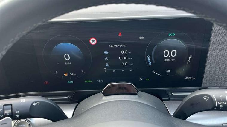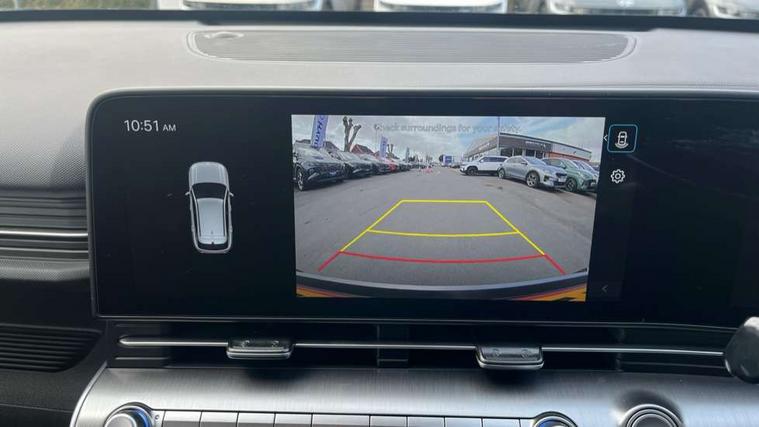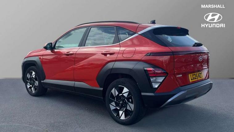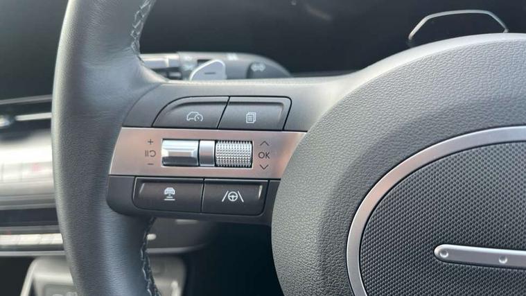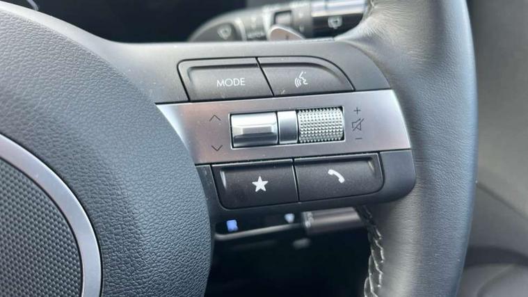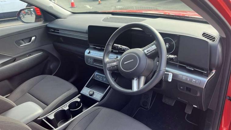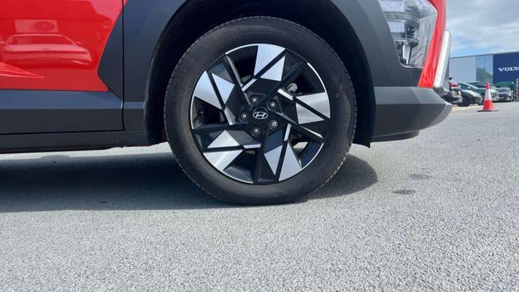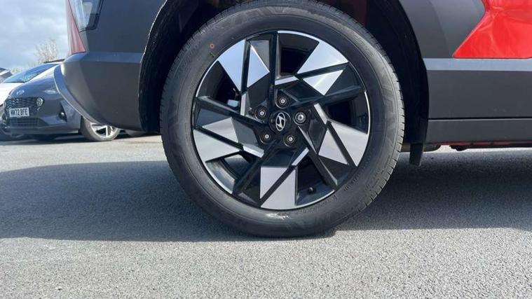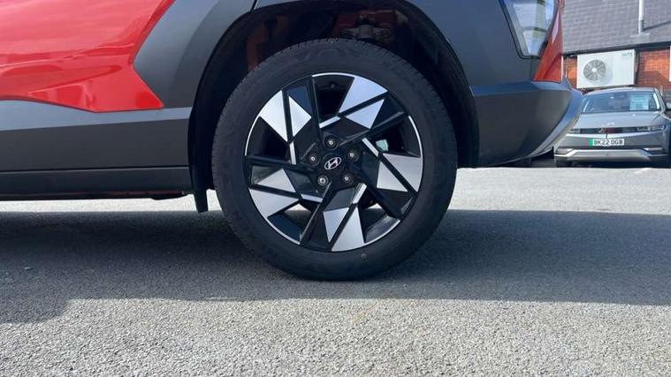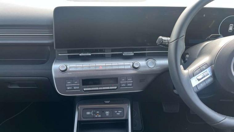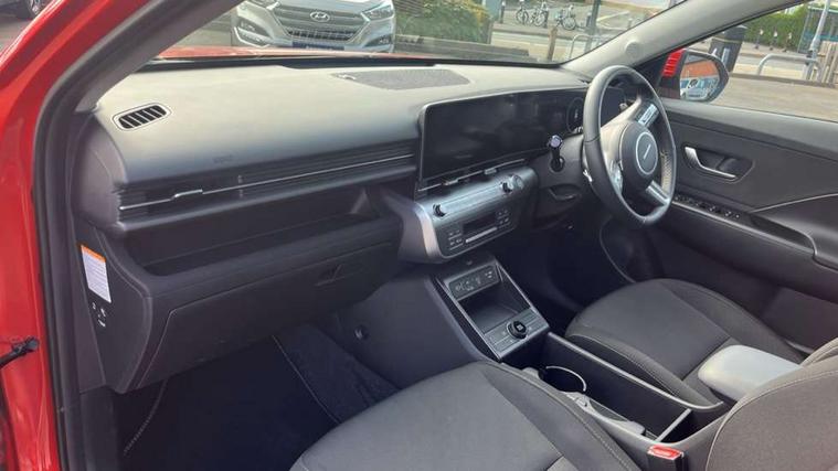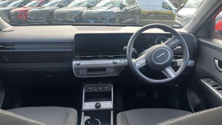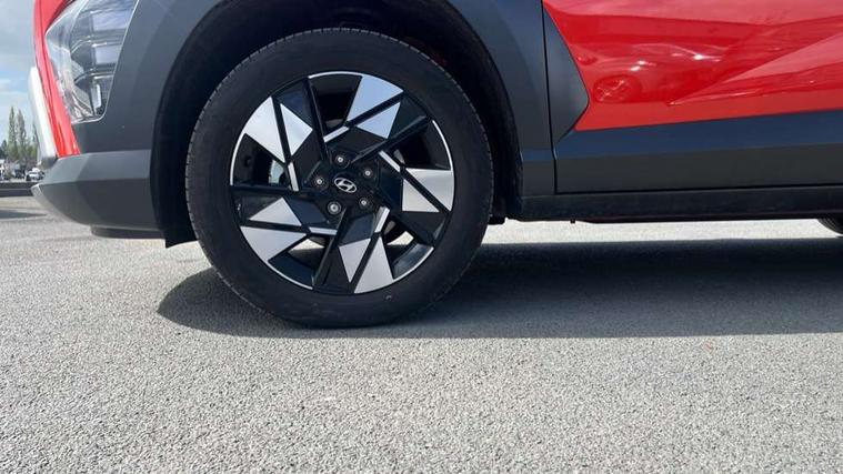 12.25" digital instrument cluster, 12.3" touchscreen centre console display satellite navigation with bluelink, live services and mapcare, Bluetooth connectivity with voice recognition, Driver status monitor (DSM), Driver supervision instrument cluster with 12.3" LCD display, eCall emergency call system, Feature on demand - Enabled, Forward collision avoidance assist (FCA 1.5) - Car, pededstrian, cycle and junction turning, Front parking sensor, HDA - Highway Drive Assist Level 1.5, Intelligent speed limit assist, Lane follow assist, Lane keep assist, Leading vehicle departure alert (LVDA), Parking system with rear camera and guidance system, PAS, Rear parking sensor, Rear view camera with dynamic guidelines, Roadside assistance, Smart cruise control with stop and go functionality, Wireless Smartphone Integration includes Apple CarPlay and Android auto, 2 front USB C and 2 rear USB C charging points, DAB Digital radio, Speakers - Front, rear and tweeters, Steering wheel audio, phone and cruise controls, Auto dimming rear view mirror, Automatic headlights with dusk sensor, Automatic windscreen wipers with rain sensor, Black painted wheel arch inserts, Body colour exterior door handles, Body coloured door mirrors, Door mirror LED indicator lights, Electric front windows with anti-trap mechanism and one touch control, Electric rear windows, Electrically adjustable and heated door mirrors, Full LED MFR headlights, LED daytime running lights, LED taillights, LED upper and lower rear lights, Power folding door mirrors, Rear roof spoiler with integrated LED brake light, Rear side wing doors, Rear skid plate - silver, Rear wiper, Roof rails, Tinted glass in front and rear doors, Windscreen auto defog function, 12V power outlet in front console, 2 zone climate control, 3 seat bench in 2nd row, Adjustable head restraints, Cloth upholstery, Driver and passenger front seat pockets, Driver's seat lumbar support, Driver/passenger manual seat height adjustment, Driver/passenger sunvisors and illuminated vanity mirrors, Floor mats, Height/reach adjustable steering column, Leather steering wheel, LED centre interior light, LED front interior light, Luggage compartment LED lighting, Luggage shelf, Metal paint effect interior door handles, Rear centre armrest with cupholders, Shift by wire SBW, Single front passenger seat, Vertical adjustment rear head restraints, Trailer wiring package - Kona, Airbag - front, front side, curtain and centre front airbag, Anti-lock brake system (ABS), Childproof rear door locks, Downhill brake control, Electric parking brake, Electronic stability control, Fixed 3 point for second row centre passenger seatbelt, Hill start assist control (HAC), Rear seat alert, Tyre pressure monitoring system, Alarm/immobiliser, Rear occupant alert, Remote central locking, Smart key with keyless entry and start/stop button, Five year annual vehicle health checks, 18" Alloy wheels, Temporary mobility kit (TMK),