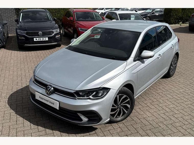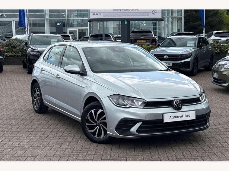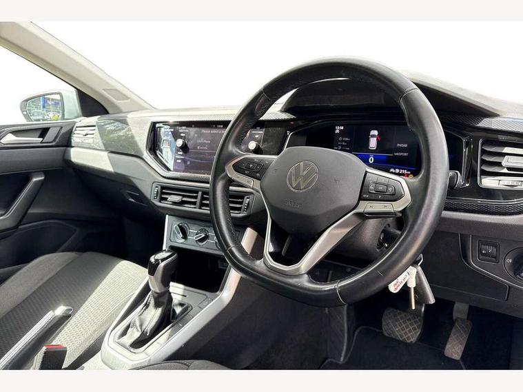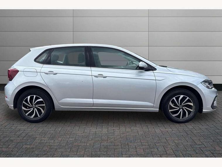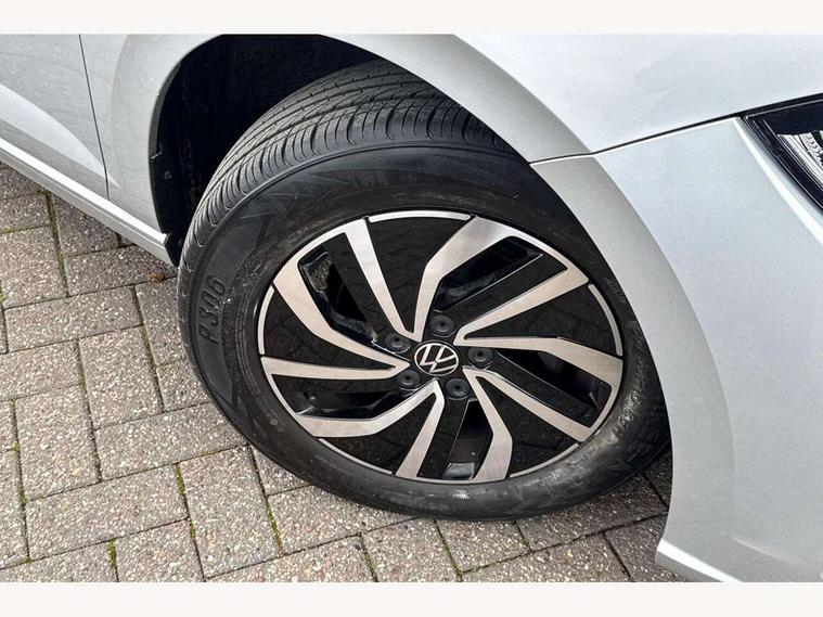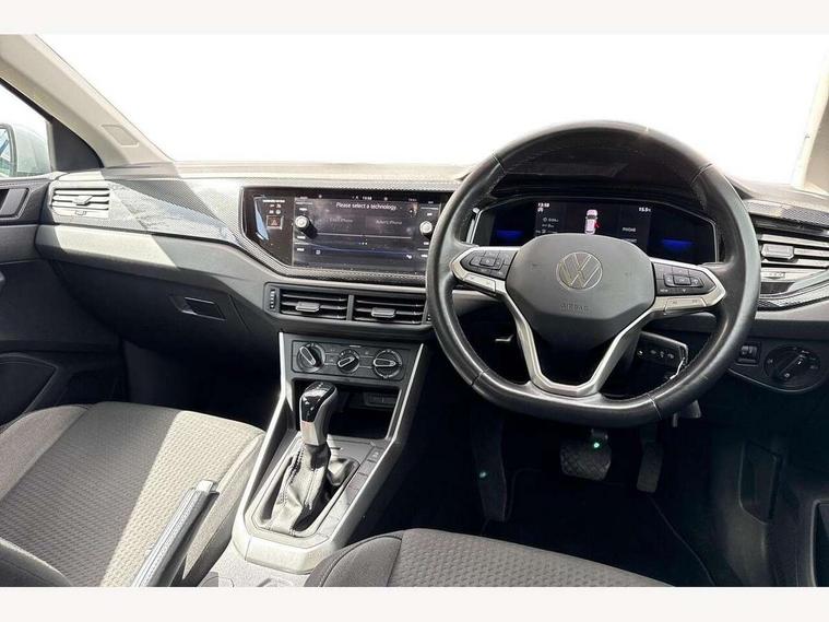 Adaptive cruise control with follow-to-stop and speed limiter, Bluetooth mobile phone interface, Driver alert system, Emergency call service, Front assist system, Power assisted speed sensitive steering, Preparation for We connect and We connect plus, Speedo and rev counter, electronic odometer, trip, service interval display and fuel gauge, Standard rear axle, Travel Assist - Lane keeping system and traffic jam assist, Travel assist including emergency assist, Trip computer, Warning signal and warning light for front and rear seatbelts not fastened, Washer fluid level indicator, Wireless app connect, Front wheel drive, Rear shock absorpion, Start-stop system with battery regeneration (recuperation - energy recovery during braking), DAB Digital radio, Diversity antenna for FM reception, Automatic dimming interior rear view mirror, Body colour bumpers, Body colour door handles, Body colour door mirrors, Electric front windows, Heat insulating darkened glass in side and rear windows, Heat insulating glass windscreen, Power folding adjustable/heated exterior mirrors and front passenger exterior mirror lowering function, Rain sensor, Rear electric windows, Rear fog light, Rear windscreen washer and wiper with interval delay, Third brake light, 12V power socket in centre console, 2 front and 2 rear reading lights, 2 USB-C ports in the front, 2 USB-C charging sockets on the center console in the rear, 3 rear head restraints, 60/40 split folding rear seat and rear seat bench not split, Ceramique headliner, Chrome plated radiator grille inserts, air vent surrounds and light switch surrounds, Door and side trim panel, Driver and front passenger seat height adjustment, Driver/passenger sunvisors with illuminated vanity mirrors, Front centre armrest, Front seat backrest storage pockets, Front standard seats, Handbrake lever handle in leather, Hartley/Thomas cloth upholstery, Isofix child seat preparation easy-fit (for two outer rear seats, and front passenger seat) compatible with I-size, Leather trimmed gear knob, Luggage compartment cover, Luggage compartment floor, Luggage compartment lighting, Standard pedal cluster, Three spoke leather wrapped multifunction steering wheel with shifting paddles, Light and vision pack - Polo, 3 point height adj front seatbelts + pretensioners, 3x3 point rear seatbelts, ABS, Driver and front passenger airbag with front passenger airbag deactivation, Drivers and front passengers safety optimised head restraints, ESC (Electronic stability control) + EDL (Electronic Differntial lock) and ASR (Traction control), Extended and predictive pedestrian/ cyclist protection, Front curtain and side airbags with center airbag, Front disc brakes, Hill hold control, Rear drum brakes, Single tone horn, Tyre pressure loss indicator, Alarm with interior protection, Anti-theft alarm system with interior monitoring, backup horn, and towing protection, Anti-theft wheel bolts, Electronic engine immobiliser, Lava stone black gloss/matt decorative inserts in dash and front door panels, Low rolling resistance tyres,