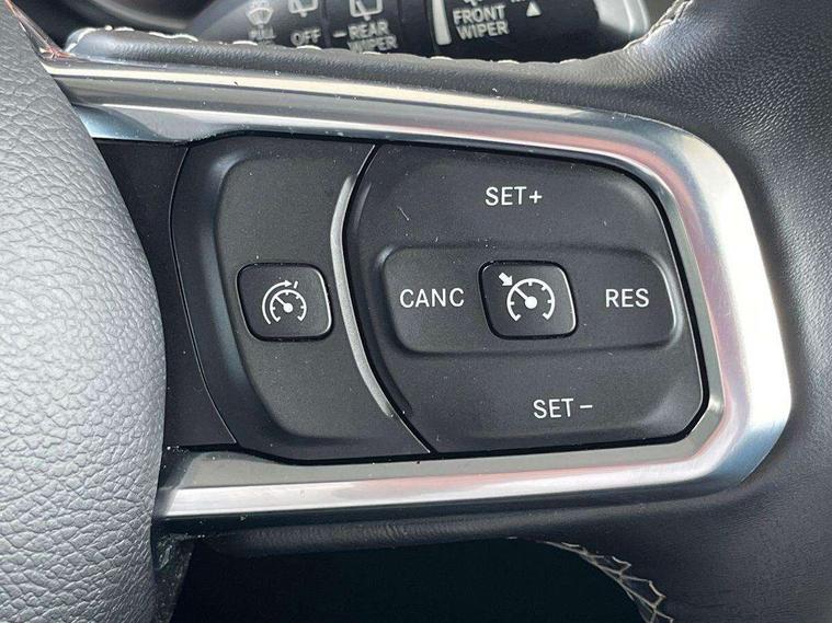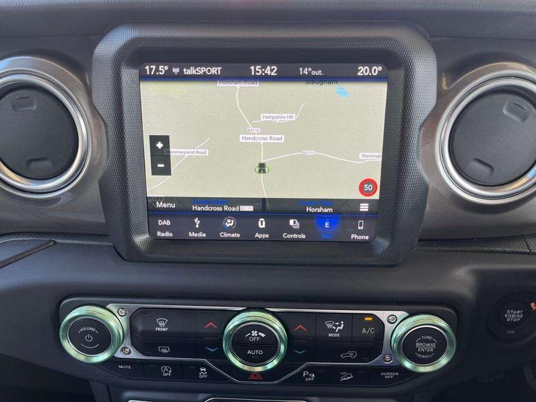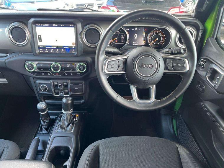 Active speed limiting device, Apple car play/Android Auto, Emergency response assistance system, Exterior temperature gauge, Instrument cluster with 7" colour TFT Display, Parksense rear park assist system, Parkview rear backup camera, Power Steering, Trip computer, Uconnect 8.4" with navigation with DAB+ Radio, Uconnect live - Europe, Vehicle information centre, Alpine premium audio system with subwoofer + 9 speakers, Steering wheel mounted audio controls, USB port, Auto dimming rear view mirror, Automatic headlights, Black door mirrors, Body colour fender flares, Body colour front grille, Daytime running lamp system, Deep tint sunscreen glass, Headlamp levelling, Headlamp off time delay, LED fog lights, LED tail lamp, Power adjustable heated door mirrors, Power front windows with one touch, Premium LED headlamps, Tow hooks, Tubular side steps, Windshield wipers with intermittent and variable, 12V auxiliary power outlet in centre console, 12V auxiliary power outlet in rear, 2 way manual adjustable drivers lumbar support, 4 way manually adjustable passenger seat with height, reach, tilt, backrest and headrest, 6 way manually adjustable drivers seat, 60/40 split folding rear seat, Cargo compartment floor mat, Centre console storage, Climate control, Cloth upholstery with bucket seats + jeep logo, Front centre armrest, Front headrests, Illuminated front cupholders, Isofix child seat preparation, Leather wrapped steering wheel with shift knob, LED ambient lighting, Lockable glovebox, Rear compartment storage system, Rear headrests, Rear luggage cover, Reclining front seats, Storage nets, Storage trays, Sunvisors with illuminated vanity mirrors, Tilt adjustable steering column, 3x3 point rear seatbelts, ABS, Driver / front passenger multi stage airbags, Electronic stability control, Front side airbags, Hill descent control, Hill start assist, Traction control, Tyre pressure monitoring warning lamp, Keyless entry, Keyless go with 'push to start' button, Locking fuel filler cap, Locking wheel nuts, Premium security alarm, 18" Polished alloy wheels with grey spokes, Full size spare wheel, Vinyl spare wheel Cover,