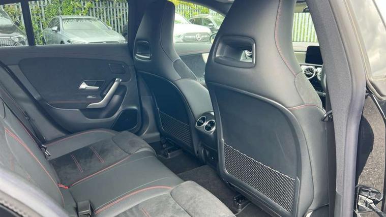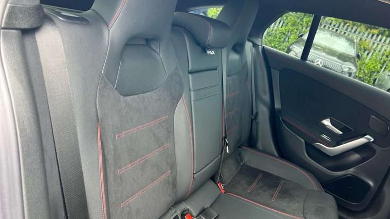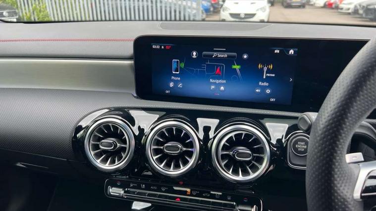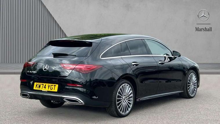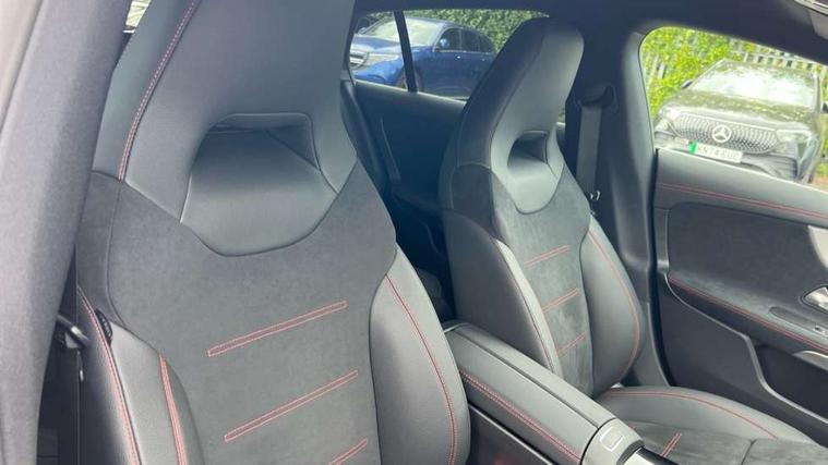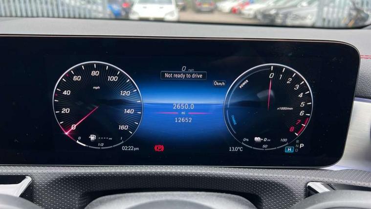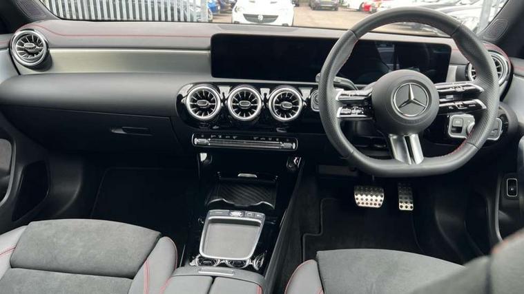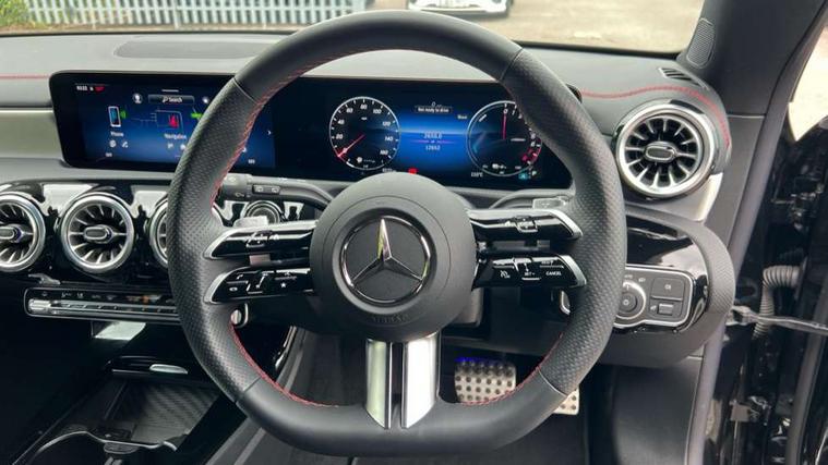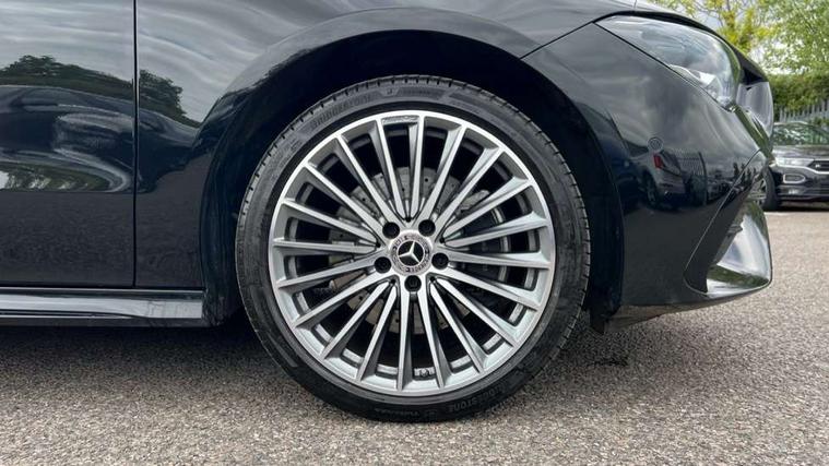 10.25 inch Instrument display with digital cockpit, 10.25 inch touchscreen central media display, Acoustic ambient protection, Active lane keeping assist, Attention assist - Monitors steering behaviour and long journey fatigue, Blind spot assist, Bluetooth connection, Car wash mode, Cruise control with limiter, Direct steer system, DYNAMIC SELECT with a choice of driving modes (ECO, Comfort, Sport and Individual), ECO start/stop function, Fingerprint sensor, Fluid level warning indicator for fuel, oil, coolant and washer fluid, Hard-disk navigation, Hey Mercedes Voice activation, Lamp failure indicator, MBUX augmented reality for navigation, Mercedes me connect including emergency call system, accident recovery, breakdown and maintenance management, Mercedes me remote and charging services plus, Outside temperature gauge, Owners manual in English, Pre-installation of private car share, Radio aerial integrated into front and rear windshields, Service indicator (ASSYST), Smartphone integration with Apple CarPlay and Android auto, Speed limit assist, Tailgate, Trip computer in multifunction display with current consumption indicator, Wireless charging in the front centre console, Charging system - AC charging system rated at 11kW, Charging system - DC charging system rated at 22kW, Comfort suspension, Mode 3 charging cable for wallbox and public charging stations with 5m upto 11kW, Rear axle torsion beam, DAB digital radio tuner, MBUX multimedia system, Mercedes Benz advanced sound system (225 W) with 10 speakers, 1 central speaker, speakers on doors, a tweeter on door, one sub woofer + boost amplifier, Pre installation for Mercedes Benz Link, Adaptive brake lights, AMG body styling with AMG front apron and rear apron and visible exhaust tailpipe in chrome trim elements, Body colour door handles, Electric windows, Electrically adjustable and heated door mirrors with integrated LED indicators, Exhaust system with 2 Visible tailpipe trim elements and rear apron with trim in chrome, Hand free access, Headlamp assist automatic headlamp activation, Heated glass rear windscreen + timer control, High gloss aluminium beltline strips, High level LED third brake light, Interior mirror with black reading lamps and frameless, LED high performance headlamps with integrated LED daytime running lights and adaptive highbeam assist, LED tail lamp, Privacy glass with dark tinting on rear side windows and rear window, Radiator grille with Mercedes-Benz pattern in chrome with central Mercedes star and single louvre with chrome inserts, Rain sensing windscreen wipers with two sensitivity settings, Rear fog lamp, Rear side wing doors, Rear wiper, Variable front intermittent wipers, Window line trim strip in high gloss aluminium, 3 seat bench in 2nd row, 3 twin spoke flattened multifunction steering wheel in nappa leather - horizontal twin spoke in high gloss black, vertical twin spoke in silver chrome, 40:20:40 split folding rear seat backrests, Air condition air vents with surround in silver chrome, Air conditioning - Two zone thermotronic luxury automatic climate control with display, Automatic child seat recognition sensor, Black roof lining, Brushed stainless steel sports pedals with rubber studs, Charging socket, Electrically adjustable front memory seats including 4 way lumbar support, Floor mats with stitched AMG lettering, Fluorescent jacket, Front centre armrest with stowage, Galvanished gear shift paddles in silver chrome, Heated front seats, Illuminated front door sills with Mercedes Benz lettering and changeable cover, Interior lighting - 64 colour Ambient lighting, Luggage net on driver/front passenger seat backrest, Manually height and reach adjustable steering column, Pre-entry climate control, Rear armrest with two integral cup holders for drinks, Rear head restraints, Single front passenger seat, Sport seats with fixed head restraints, Stowage compartment in centre console with retractable cover, Sunvisors with illuminated vanity mirrors, Twin front cupholders, Two outer rear seat isofix and top tether child seat fixing points, Keyless go comfort pack - CLA with easy pack tailgate, Light and sight pack - CLA, Mirror pack - CLA, Parking pack with reversing camera - CLA, Seat comfort pack - CLA, USB package plus - CLA, Active bonnet pedestrain safety measure which detects an impact and raises bonnet by 65mm, Active brake assist includes forward collision warning system with autonomous braking, Adaptive brake assist with hold function and hill start assist, Anti lock braking system (ABS) with brake assist, Black seat belts, Bonnet with power domes, Brake calipers with Mercedes-Benz lettering, Brake pad wear warning indicator, Childproof locks manually operated for rear doors and electrically operated for rear power windows, Crash responsive emergency lighting, Driver and front passenger head and sidebags, Driver and front passenger windowbags, Drivers knee airbag, Dual stage driver and front passenger airbags, Electric parking brake, Electronic stability programme with acceleration skid control, ESP curve dynamic assist, Exit warning, Front and rear seatbelt reminder, Front passenger seat occupancy sensor, Perforated front brake discs, Radar-based recuperation, Sports braking system, Three point rear seat belts, Tyre pressure monitoring system, Warning triangle and first aid kit, Alarm system with immobiliser and interior protection -Thatcham category 1, Guard 360 deg vehicle protection - tow away protection with visual, acoustic warning, interior monitoring, preinstallation for parking damage, Remote central locking and crash sensor with emergency opening function, Light aluminium with longitudinal grain interior trim, 19" AMG multi spoke light alloy wheels painted in titanium grey with high sheen finish, Summer tyres, Tirefit tyre sealant kit,
