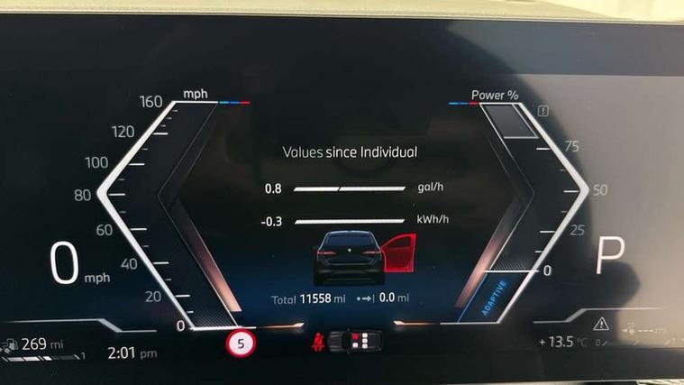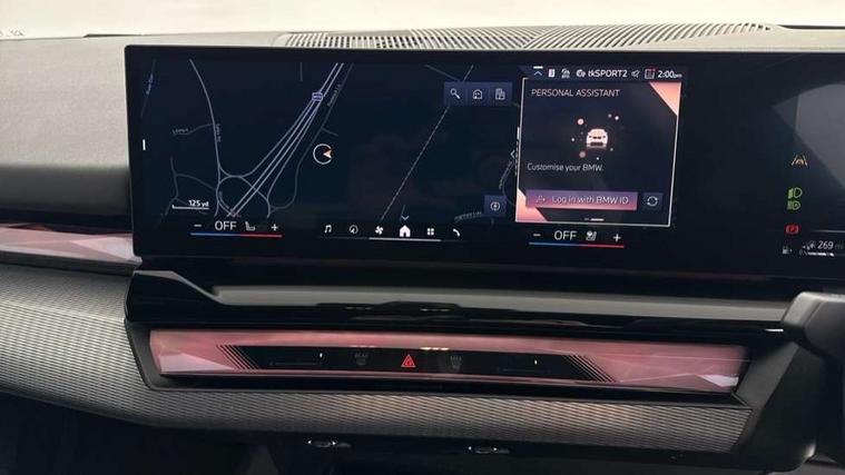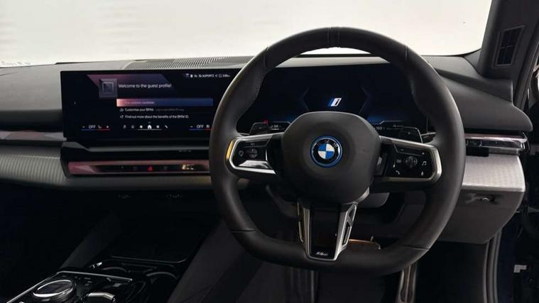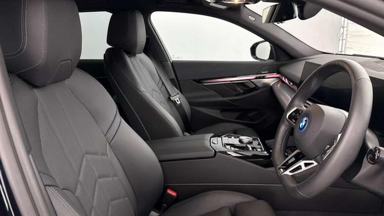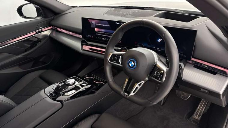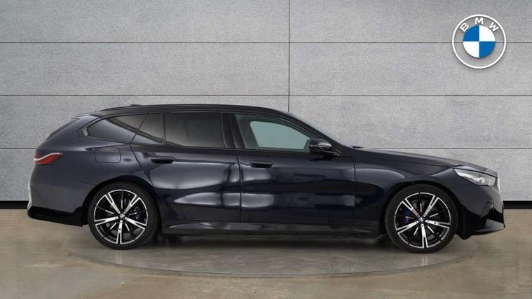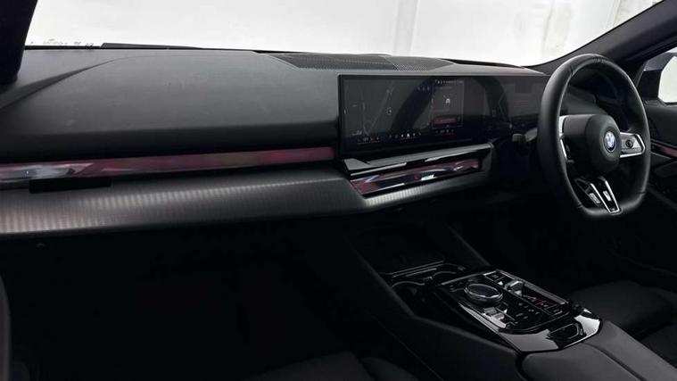Automatic tailgate operation, BMW ConnectedDrive online services, BMW Iconic sounds electric, BMW legal emergency call, BMW Teleservices, Brake pad wear indicator, Cruise control with brake assist, Driving Assistant Plus Preparation, Front collision warning with brake intervention, Lane departure warning with active return, Left turn warning with brake function, Multifunctional instrument panel, Oil sensor for level and grade, On board computer inc. average speed, fuel consumption, liquid crystal Info display, journey computer, outside temperature display, personal profile, On-board diagnosis - OBD, PAS, Personal e-SIM, Powered by Operating System 7.0, Run flat indicator, Service interval indicator, Speed limit Info with manual speed limit assist, Stop/start button, 8 speed automatic steptronic transmission with gearshift paddles, AC charging cable professional (mode 3) for public charging, DAB tuner, Acoustic glazing, Adaptive LED Headlights, Automatic cornering lights, Automatic windscreen wipers and automatic headlight, BMW selective beam, Body colour door handles, Body coloured bumpers, Dynamic brake lights with LED technology, Electric adjustable door mirrors, Electric front and rear windows with fingertip open/close + anti-trap facility and comfort closing function, Follow me home headlight function, Headlight elements in blue, Heated windscreen washer jets, LED daytime running lights, LED third brake light, Light colour close to that of ordinary daylight, Optimum, homogeneous illumination of the road, Rear side wing doors, Rear wiper, 2 zone automatic air conditioning, 3 seat bench in 2nd row, 3 spoke leather M steering wheel in BMW M specific design with M badge, Armrest - front and rear integrated door trim, centre console includes storage compartment, rear centre includes 2 cupholders, Child seat ISOFIX attachment with rear outer seats includes top tether, Electric adjustable front sports seats, Electric adjustable steering column, Electrically adjustable lumbar support for driver and front passenger, Heated driver and front passenger seats, High-gloss black door switch cluster, power window switch and tailgate button on first and second row seat, M Anthracite headlining, M Sport pedal covers in stainless steel, Rear headrests, Single front passenger seat, Through loading system with 40/20/40 rear seat backrest split, Velour floormats, Wireless charging tray, Ambient lighting pack - 5 Series/I5, Connected package professional - 5 Series/I5, Driving assistance pack - 5 Series/I5, Expanded exterior mirror package - 5 series/I5, M high gloss shadow line pack - 5 Series/ I5, M Sport exterior styling pack - 5 Series/I5, 3 rear three point seatbelts, Active protection, Airbag deployment is controlled with respect to the intensity and scope, Anti-lock braking system (ABS), Brake assist, Brake energy regeneration, Cornering brake control (CBC), Crash sensor activating central locking release, hazard warning lights, fuel cut off and interior lighting, Driver and front passenger airbags, Driver central airbag, Driver/front passenger side airbags, DSC - Dynamic Stability Control, Dynamic brake control, Dynamic Traction Control - DTC, Electromechanical parking brake with automatic drive away release and auto hold function, Electronic brake force distribution, Engine drag torque control, Front and rear brake discs with interior ventilation, Front and rear curtain airbags, Front head restraints with anti-whiplash, Head airbags for first and second row seats, Hill start assist, Locking of doors after driving off, M Sport brake in blue high gloss painted brake callipers with monochrome logo on front calliper, Mechanical child proof lock on rear doors, PC iBrake PostCrash approach control warning with light braking function, Side impact protection, Trailer stability control, Two tone horn, Tyre pressure monitoring system, Warning triangle and first aid kit, Alarm system, Locking wheel bolts including wheel bolt adapter, Tyre repair kit,