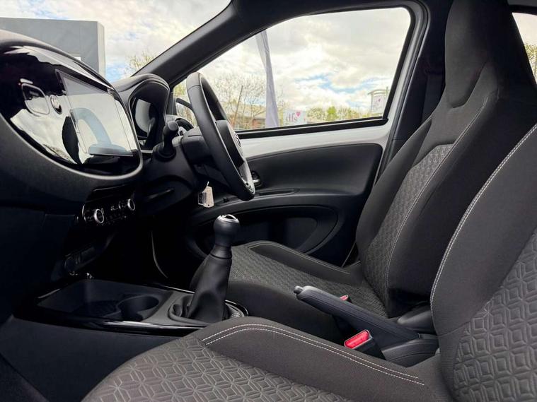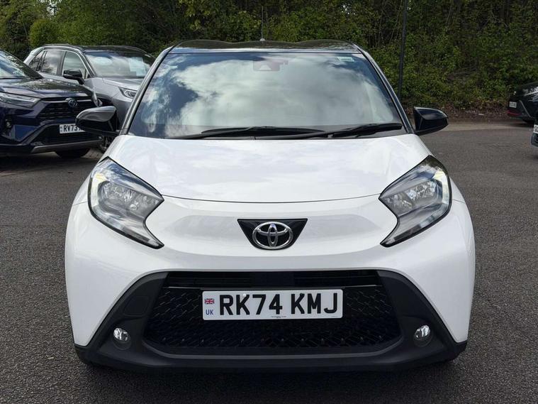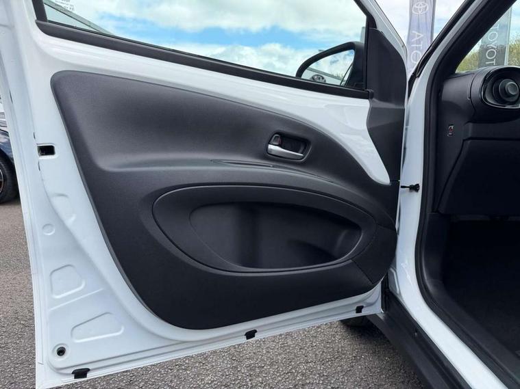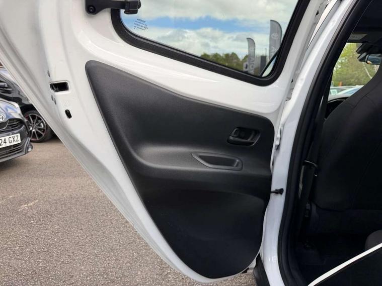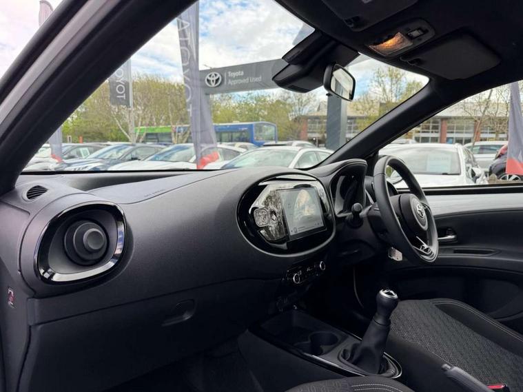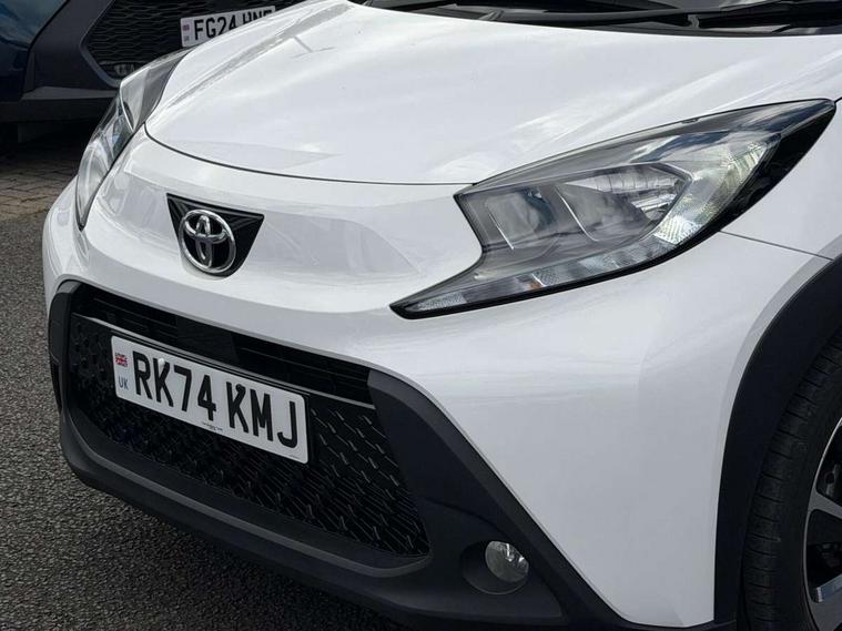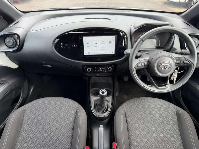 4.2" TFT colour screen, Adjustable speed limiter, Analogue speedometer, Bluetooth connectivity, Digital tachograph, Driver attention alert system, eCall emergency call system, Electric power steering, Intersection turn assist, Key reminder warning, Noise reduction kit, Pre collision system with emergency steering assist, Reversing camera with static guide lines, Smart phone integration with Apple car play/Android Auto, Speed limit display, Start and stop, Vehicle Stability Control (VSC), 4 speakers, 9" HD multimedia display touch screen with Toyota smart connect, DAB digital audio broadcast, USB connector, Auto headlights, Auto wipers, Automatic headlights cut-off, Bicycle towing hook, Black contrast roof, Black side protection mouldings, Black wheel arch mouldings, Body colour door handles, Body coloured front bumper, Boot door scuff plate, Eclipse black rear bumper, Electric heated door mirrors, Follow me home headlights, Front fog lights, Front power windows, Gloss black door mirrors, Gloss black upper front grille, Headlight cut-off reminder, LED daytime running lights, LED front light guide, LED High mounted stop lamp, Manual day/night rear view mirror, Manual headlight levelling, Pagoda roof, Power adjustable door mirrors, Power back door, Privacy glass, Projector halogen headlights, Rain sensor, Rear combination lights LED bulb type, Rear side wing doors, Rear windscreen defogger, Rear windscreen wiper, Short antenna, Variable intermittent windscreen wipers, 12v power outlet - front, 2 seat bench in 2nd row, 3 spoke leather steering wheel, 50/50 split folding rear seat, Adhesive roof headlining, Adjustable speed limiter switch on steering wheel, Audio and telephone switches on steering wheel, Auto air conditioning, Black insert on steering wheel, Black roof lining, Boot light, Centre room light, Chrome interior door handles, Chrome surround on air conditioning buttons, Clean air filter, Console box storage in body color, Fabric upholstery, Floor mats, Front and rear cup holders, Front head rest deco art, Front head restraints, Height adjustable driver seat, Intelligent adaptive cruise control switch on steering wheel, ISOFIX child restraint system on rear seats, Lane departure alert switch on steering wheel, Leather gearshift knob, Manual tilt steering wheel, Manually reclining and sliding driver seat, Manually reclining and sliding front passenger seat, Multimedia switches on steering wheel, Pollen filter, Rear door pockets, Rear head restraints, Satin silver insert on gear shift knob, Single compartment glovebox with lights, Single front passenger seat, Soft tonneau cover, Sun visors with mirror on driver and passenger side, Voice recognition switch on steering wheel, Toyota safety sense pack - Aygo X, Anti lock braking system + Electronic brake force distribution, Child safety door lock, Emergency brake light signal (EBS), Hill start assist control (HAC), Passenger airbag on/off switch, Seat belt reminder for front and rear seats, Supplement restraints system (SRS) - 6 airbags, Traction control, Tyre pressure warning system, Immobiliser, Remote power door locks, Black wheel centre caps, Tyre repair kit,
