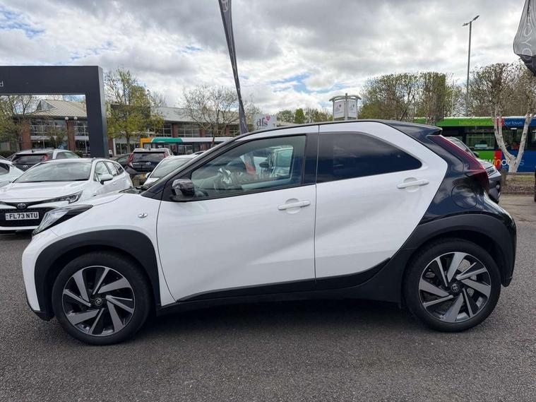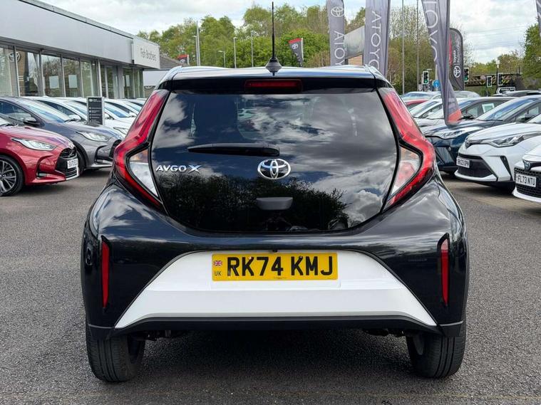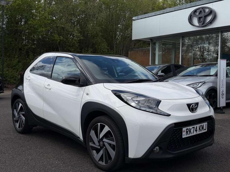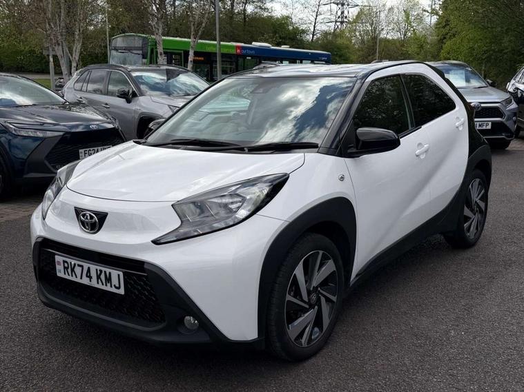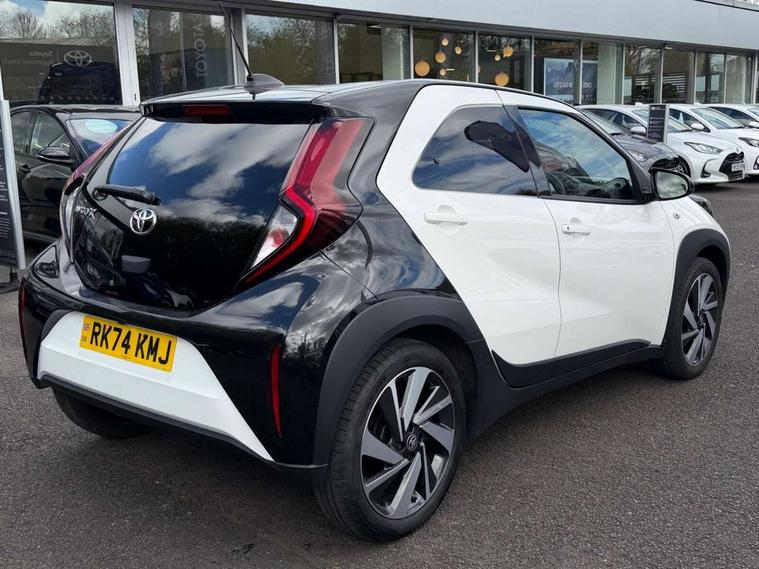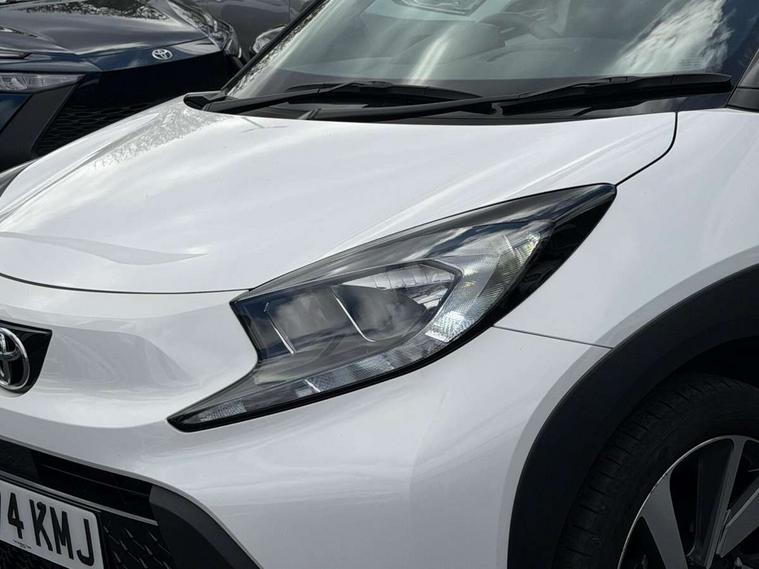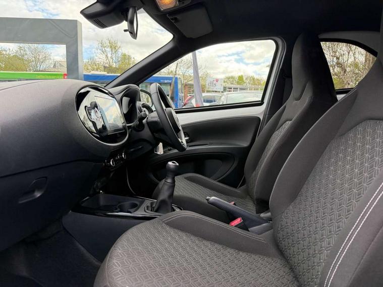 4.2" TFT colour screen, Adjustable speed limiter, Analogue speedometer, Bluetooth connectivity, Digital tachograph, Driver attention alert system, eCall emergency call system, Electric power steering, Intersection turn assist, Key reminder warning, Noise reduction kit, Pre collision system with emergency steering assist, Reversing camera with static guide lines, Smart phone integration with Apple car play/Android Auto, Speed limit display, Start and stop, Vehicle Stability Control (VSC), 4 speakers, 9" HD multimedia display touch screen with Toyota smart connect, DAB digital audio broadcast, USB connector, Auto headlights, Auto wipers, Automatic headlights cut-off, Bicycle towing hook, Black contrast roof, Black side protection mouldings, Black wheel arch mouldings, Body colour door handles, Body coloured front bumper, Boot door scuff plate, Eclipse black rear bumper, Electric heated door mirrors, Follow me home headlights, Front fog lights, Front power windows, Gloss black door mirrors, Gloss black upper front grille, Headlight cut-off reminder, LED daytime running lights, LED front light guide, LED High mounted stop lamp, Manual day/night rear view mirror, Manual headlight levelling, Pagoda roof, Power adjustable door mirrors, Power back door, Privacy glass, Projector halogen headlights, Rain sensor, Rear combination lights LED bulb type, Rear side wing doors, Rear windscreen defogger, Rear windscreen wiper, Short antenna, Variable intermittent windscreen wipers, 12v power outlet - front, 2 seat bench in 2nd row, 3 spoke leather steering wheel, 50/50 split folding rear seat, Adhesive roof headlining, Adjustable speed limiter switch on steering wheel, Audio and telephone switches on steering wheel, Auto air conditioning, Black insert on steering wheel, Black roof lining, Boot light, Centre room light, Chrome interior door handles, Chrome surround on air conditioning buttons, Clean air filter, Console box storage in body color, Fabric upholstery, Floor mats, Front and rear cup holders, Front head rest deco art, Front head restraints, Height adjustable driver seat, Intelligent adaptive cruise control switch on steering wheel, ISOFIX child restraint system on rear seats, Lane departure alert switch on steering wheel, Leather gearshift knob, Manual tilt steering wheel, Manually reclining and sliding driver seat, Manually reclining and sliding front passenger seat, Multimedia switches on steering wheel, Pollen filter, Rear door pockets, Rear head restraints, Satin silver insert on gear shift knob, Single compartment glovebox with lights, Single front passenger seat, Soft tonneau cover, Sun visors with mirror on driver and passenger side, Voice recognition switch on steering wheel, Toyota safety sense pack - Aygo X, Anti lock braking system + Electronic brake force distribution, Child safety door lock, Emergency brake light signal (EBS), Hill start assist control (HAC), Passenger airbag on/off switch, Seat belt reminder for front and rear seats, Supplement restraints system (SRS) - 6 airbags, Traction control, Tyre pressure warning system, Immobiliser, Remote power door locks, Black wheel centre caps, Tyre repair kit,