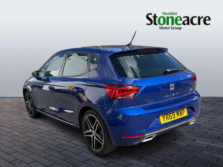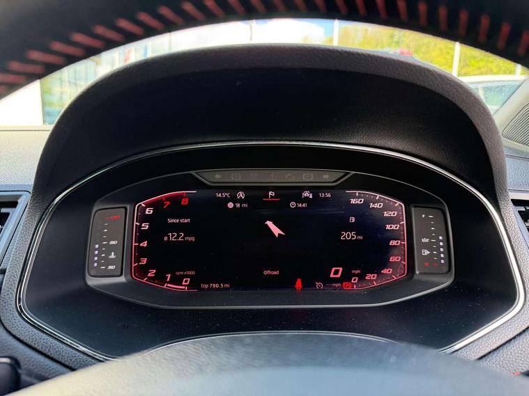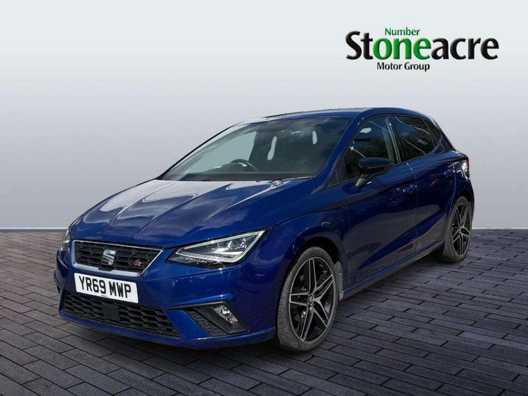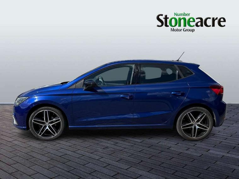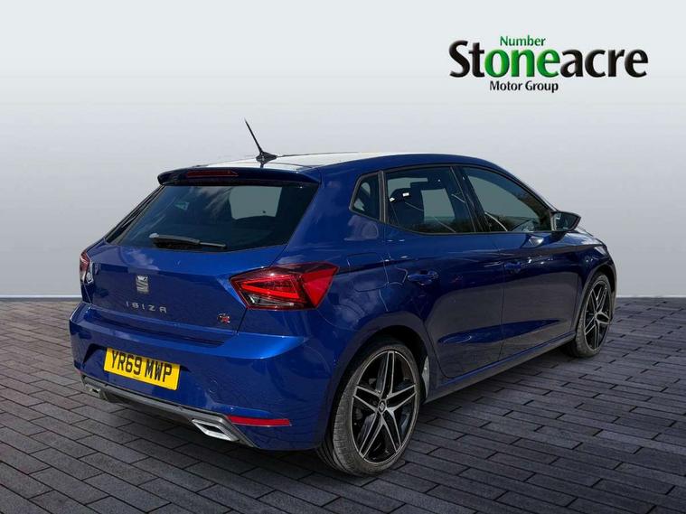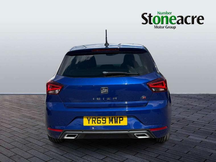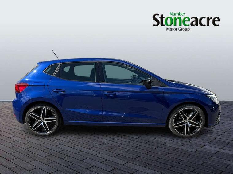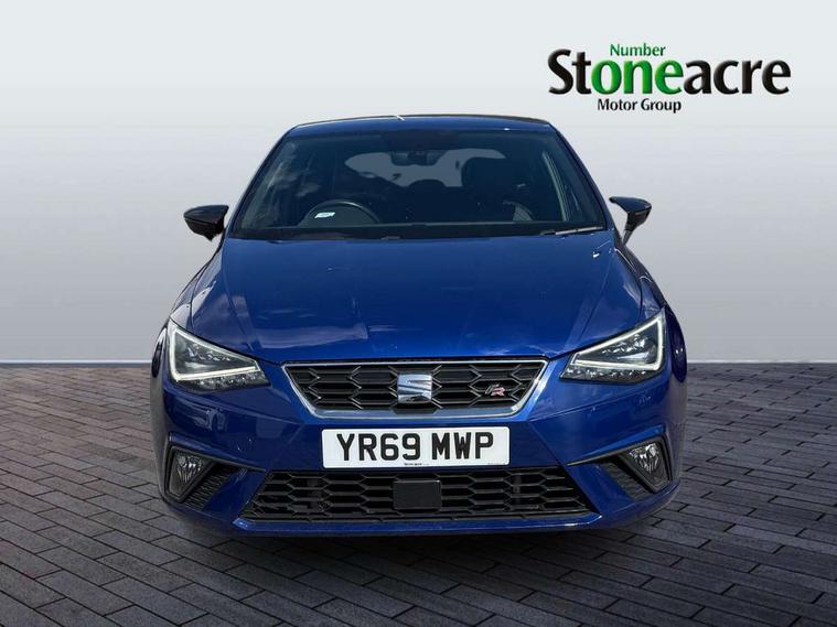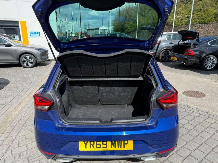 'Lights On' Reminder warning buzzer, Bluetooth Handsfree Phone Connection, Cruise control, Digital clock, Digital cockpit, Full Link Smartphone Integration with Mirror Link, Apple Car Play, Google Android Auto, Low fuel warning light, Outside temperature gauge, Power Steering, Satellite navigation system with 3D mapping, 8" touch screen, voice control and additional USB port, SEAT Drive profile, SEAT logo boot release, Trip computer, Sports suspension, 6 speakers, Auxiliary input socket, CD player, Digital Audio Broadcast (DAB) Tuner, Radio/MP3 player, SD card slot, SEAT USB media cable, Steering wheel mounted controls, USB port, Anti theft roof antenna, Auto dimming rear view mirror, Automatic headlights, Automatic rain sensing wipers, Body colour bumpers, Body colour door handles, Brilliant black door mirrors, Chrome front grille frame, Chrome grille, Coming/leaving home lighting function, Cornering front fog lights, Dark tinted rear windows, Electric folding door mirrors, Electric front windows, Electric headlight adjustment, Electrically adjustable and heated door mirrors, Exclusive FR rear bumper, Full LED headlights, LED daytime running lights, LED tail lights, Rear fog lights, Twin exhaust pipes, 3 rear headrests, 60/40 split folding rear seat, Door and steering wheel ice metal decorative inserts, Driver's sunvisor with ticket holder/vanity mirror, Dual zone climate control, Dust/pollen filter, Flat bottomed perforated leather steering wheel with red stitching and FR logo, Front courtesy lights, Front cupholders x 2, Front reading lights, Gear shift indicator, Glovebox, Height adjustable driver's seat, Height adjustable front/rear head restraints, Height adjustable passenger seat, Height/reach adjust steering wheel, Illuminated boot, Instrument lighting with brightness control, Leather dashboard, Leather handbrake, Microsuede cloth upholstery, Multi-colour ambient interior lighting, Passenger sunvisor, Rear top tether child seat ISOFIX attachment, Sports seats, Full LED headlight pack - Ibiza, 3 point seatbelts on all 3 rear seats, ABS, Active front headrests, Child locks on rear doors, Curtain airbags, Driver/Front Passenger airbags, ESP+EBA, Front assist (AEB), Front passenger airbag deactivation, Front side airbags, Hill hold control, Multi-Collision braking, Rear disc brakes, Seatbelt warning, Tiredness recognition system, Tyre pressure monitoring system, Electronic engine immobiliser, Locking wheel bolts, Remote central locking + deadlocks, Volumetric alarm with back up horn, 18" Performance machined bi-colour alloy wheels,