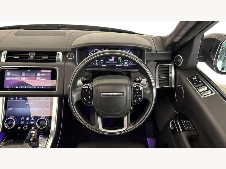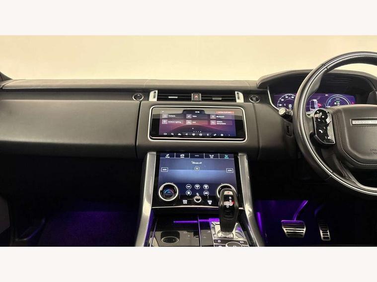 360 Parking aid, All Terrain Info Centre, Android Auto, Apple car play, Bluetooth connectivity, Clear exit monitor, Driver condition monitor, Electric power assisted steering (EPAS), Incontrol apps in vehicle touchscreen, Interactive Driver display instrument cluster, Mist sensor, Navigation pro system with 10" touch screen, app interface and media storage, Pro services and wifi hotspot, Push button start, Rear traffic monitor, Remote premium - Upgraded Incontrol remote app including remote climate control (engine dependent), remote lock + Unlock and remote beep + flash, TFT Virtual Instrument Panel, Touch pro duo system, Traffic sign recognition with adaptive speed limiter, Trip computer, 7 kW onboard charger, Adaptive dynamics, Electronic active differential with brake torque vectoring, Electronic air suspension, Gradient release control (GRC), Public charging cable, Terrain Response 2 with dynamic program, Twin speed transfer box, Bluetooth audio streaming, DAB Radio (Digital Audio Broadcasting), Incontrol protect - SOS emergency call with automatic collision detection, optimised assistance call and Incontrol remote app essential, USB/aux input socket, Acoustic front and toughened rear side glass, Acoustic laminated front windows, Adaptive brake lights, Auto dimming interior rear view mirror, Automatic headlights, Body coloured side sills and bumpers corners, Centre high mounted stop light, Electric windows with one touch open/close and anti trap, Electrical towing preparation, Engine cover, Follow me home lighting, Front and rear recovery eyes, Front fog lights, Headlight power wash, Heated rear window, Heated windscreen includes heated washer jets, Illuminated metal treadplates with brand name script, LED rear lamps, Power fold, auto-dimming, heated door mirrors with memory and approach lights, Rain sensing windscreen wipers, Rear fog lights, Rear side wing doors, Rear wash/wipe, Remote window closing, Side repeater indicators in mirror, Standard bonnet, Trailer stability assist, Twin bright tailpipes, 2 way active front head restraints, 2 way rear head restraints, 3 seat bench in 2nd row, 60/40 load through rear seats, Automatic air recirculation system, Bright metal foot pedals, Centre console with armrest, Climate control memory, Configurable Ambient interior lighting, Customer configurable single point entry, Driver's footrest, Extended leather upgrade includes door top rolls and leather instrument panel mid section, Front and rear cupholders, Front and rear premium carpet mats, Front door storage space, Front map lights, Front seat back map pockets, Front stowage pocket, Front/rear passenger grab handles, Heated steering wheel, Isofix child seat preparation, Leather steering wheel with Atlas inserts, Loadspace light, Loadspace mounting provisions, Lockable glovebox, Multifunction steering wheel, Pollen filter, Power socket, Reach/rake electric adjustable steering column + entry/exit tilt away, Rear centre armrest, Rear ISOFIX, Roller blind loadspace cover, Satin chrome gearshift paddles, Single front passenger seat, Sports pedals, Three 12V accessory power outlets, Smartphone pack - Range Rover Sport, 3 point seatbelts on all seats, Anti-lock braking system (ABS), Brake pre-fill technology, Cornering brake control (CBC), Curtain airbags, Customer configurable autolock, DSC - Dynamic Stability Control, Dual stage driver/passenger airbags, EBD - Electronic brakeforce distribution, Electric parking brake, Electronic traction control, Emergency braking includes city, urban AEB and pedestrian, Front seatbelt pretensioners, Gradient acceleration control, Height adjustable front seatbelts, High speed emergency braking, Hill descent control, Hill launch assist, Low traction launch, Passenger seat occupant detector with front airbags, Power operated child locks, Roll stability control, Seatbelt warning, TPMS (Tyre pressure monitoring system), Immobiliser, Intrusion sensor, Keyless entry, Locking wheel nuts, Perimetric and volumetric anti theft alarm, Remote locking, Tyre repair system,