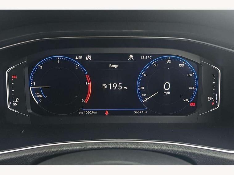 2 USB connection charging sockets, Active Info Display, 10.3" high resolution TFT dash display screen with customised information, Adaptive cruise control, App-Connect, Automatic start/stop system, Bluetooth telephone and audio connection for compatible devices, Car information display, Car-Net Security and Service, Discover navigation, 8" touch screen navigation/infotainment system with Car-Net, European map, CD/radio, 2D/3D map and speed limiter, Driver alert system with audible and visual fatigue detection system, Front assist, radar sensor controlled distance monitor, city emergency braking + predictive pedestrian protection, Lane assist, Multifunction computer with visual gear change recommendation for fuel consumption, Power assisted speed sensitive steering, Service interval indicator, Think blue trainer driver tips and journey analysis, Voice activation, Warning sound and light for doors and tailgate open, Warning sound and light for front seatbelts unfastened, Battery regeneration during braking, Misfuel prevention device for diesel engine, Bluetooth - Simultaneous pairing of 2 compatible mobile devices, DAB Digital radio, Dynamic navigation based on TMC+, Multi device interface (MDI) with USB connection, Music playback - MP3, WMA and AAC files, Premium USB cable in choice of either Apple or Android smartphone compatibility, SD card slot, SMS functionality - read, compose and send SMS messages using touch-screen display, Three route options - Fast, Short, Eco, Title and cover art display, Auto dimming interior rear view mirror, Automatic hazard lights activation under emergency braking, Black grained lower door protectors, Black grained wheel arches, Body colour bumpers with silver metallic underbody fascia, Body colour door handles, Chrome effect left and right trapezoid exhaust tailpipe fascia surround, Chrome trim on upper and lower radiator grille, Door mirror integrated indicators, Dusk sensor, Electrically foldable, adjustable and heated door mirrors with puddle lights and reverse activated kerb-view adjustment on passenger's door mirror, Front and rear electric windows, Front fog lights with static cornering function, Front windscreen wiper with intermittent wipe and 4 position delay, Fully galvanised body, Heated rear window, High level 3rd brake light, LED darkened rear light clusters, LED dipped and main beam headlights with automatic range adjustment including signature LED daytime running lights, LED rear number plate lights, Manual coming/automatic leaving home lighting function, Rain sensor, Rear tinted glass from B-pillar backwards approx 65% tinted, Rear windscreen washer and wiper with interval delay, 12V socket in centre console storage area, 2 LED front and rear reading lights, 3 rear head restraints, 4 load lashing points in luggage compartment, Ambient lighting in front footwell and light strips below trim in front doors, Climate control - 2 zone electronic air conditioning with automatic air recirculation and allergy filter, Drawer under drivers seat, Front centre armrest with storage compartment, longitudinal and height adjustable and two rear air vents, Front cupholders x 2, Front footwell illumination, Front seat back storage pockets, Glovebox, Height adjustable front seats, Height/reach adjust steering wheel, Illuminated vanity mirrors, Instrument lighting, white adjustable panel illumination, Interior light delay, Isofix easy fit child seat preparation for 2 outer rear seats, Load through provision with single cup holder when folded down, Luggage compartment cover, removable, Luggage compartment lighting, Split folding rear seat backrests with centre armrest, Storage compartment in left and right luggage area, Storage compartment in rear doors, Storage compartments in driver and front passenger doors, 3 rear three point seatbelts, ABS, Driver and front passenger safety-optimised head restraints, Electronic parking brake with auto hold, ESC with EDL, ASR, EDTC and trailer stabilisation function, Front and rear curtain airbags, driver and front passenger airbags with passenger deactivation switch and front side impact airbags, Rigid safety cell with front and rear crumple zones, Three point height adjust front seatbelts + pretensioners, Tyre pressure loss indicator, Ventilated front and rear disc brakes, Volkswagen roadside assistance, Alarm with remote central locking and interior protection, Electronic engine immobiliser, Remote central locking with 2 remote folding keys,