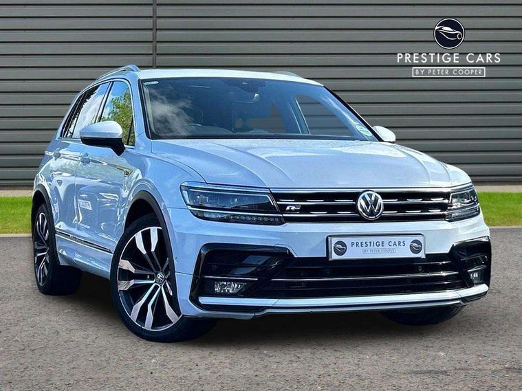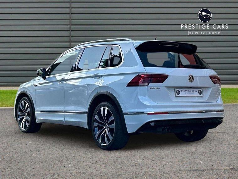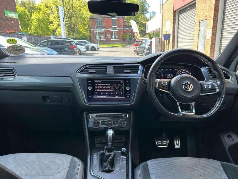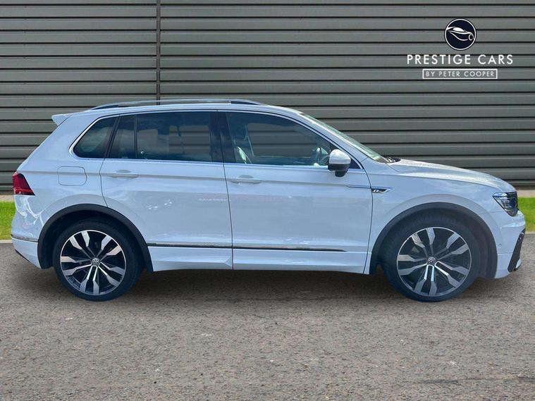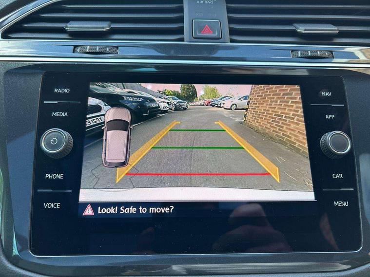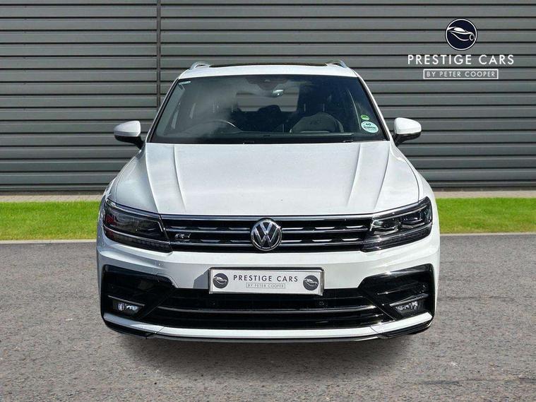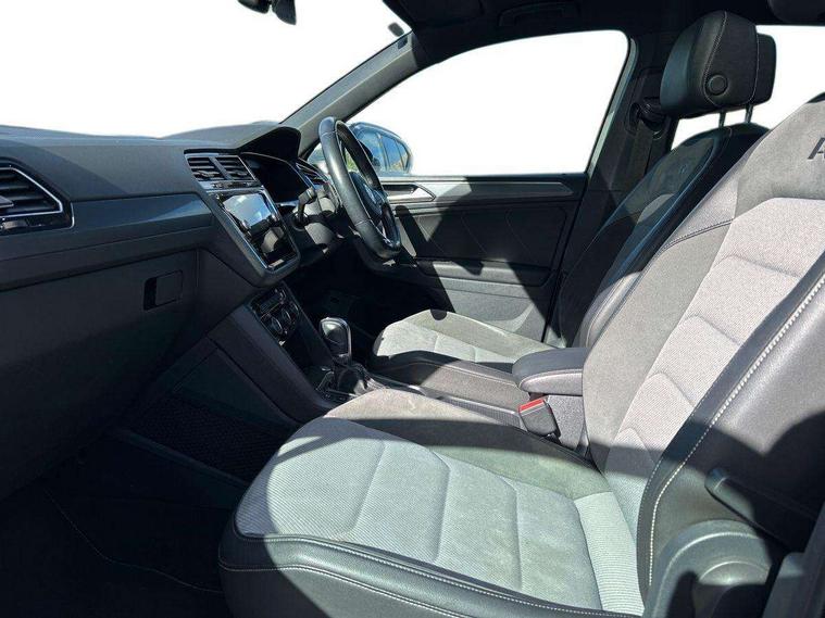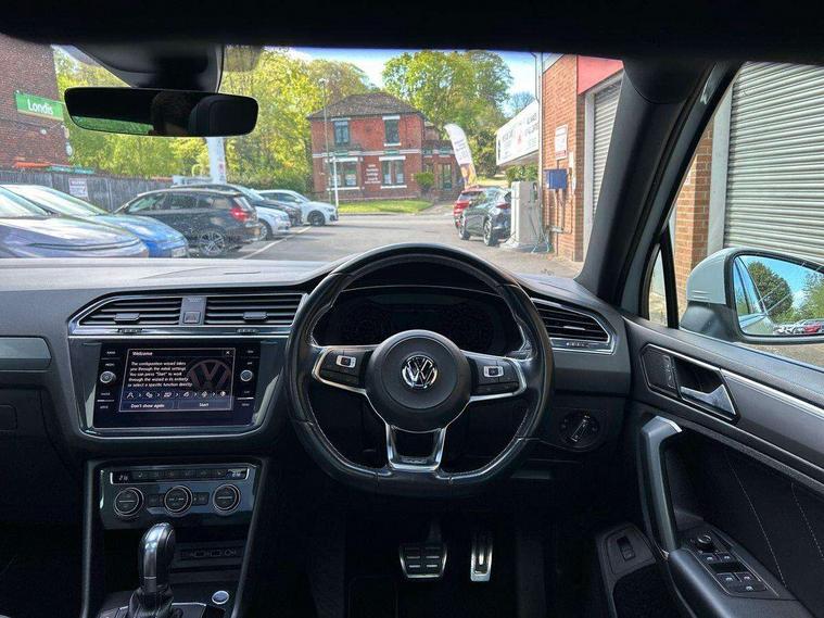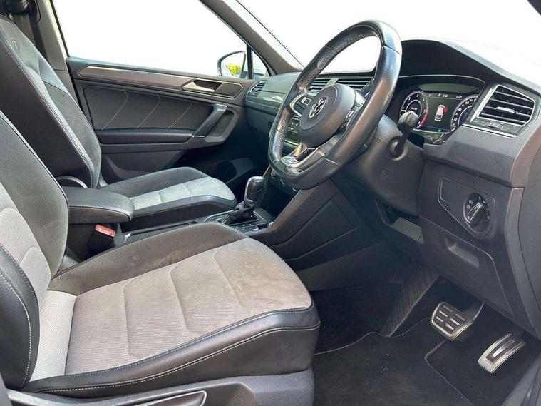 App-Connect, Active information display, Adaptive cruise control, Bluetooth phone integration system, Distance control assist, Driver profile selection, Fatigue detection system, Instrument cluster, Lane assist, Low washer fluid warning light, Outside temperature display, Progressive power assisted steering, Service interval indicator, Speed limiter, Warning lights, Diesel particulate filter, XDS electronic differential lock, 2x USB sockets in front, Aux-in socket, DAB Digital radio, MP3 compatible single CD player, SD card slot, Auto dimming interior mirror, Automatic activation of hazard warning lights, Body colour door handles, Body colour door mirrors, Body colour rear spoiler, Body colour side skirt, Body coloured bumpers, Chrome side window surrounds, Chrome trimmed radiator grille, Coming/leaving home lighting function, Dusk sensor + auto driving lights, Elec heated + adjust door mirrors, Electric folding door mirrors, Electric panoramic sunroof with sunblind, Front and rear electric windows, Heated rear window, LED headlights with dynamic light assist daytime running lights and cornering front fog lights, LED rear lights, Piano black rear diffuser, R Line body kit, Rain sensor windscreen wipers, Rear windscreen washer and wiper with interval delay, Silver roof rails, Silver under body guard, Tinted windows (B pillar backwards), Windscreen wipers/ intermittent wipe + 4 position delay, 12V Accessory socket in centre console, 3 rear headrests, 3 zone climate control, 4 load lashing points, 40:20:40 split folding rear seats, Bag hook in luggage compartment, Black headlining, Driver + front passenger lumbar support, Foldable passenger seatback, Front + rear carpet mats, Front centre armrest with 12v socket, Front centre armrest with storage + rear 2 air vents + cupholders, Front seatback folding tables, Height/reach adjust steering wheel, Illuminated driver/passenger vanity mirrors, Illuminated scuff plates, Interior light with delay, Isofix Preparation 2 Rear child seats, Leather gear knob, Leather multifunction steering wheel with paddle shift, Load through provision with 2 cupholders when folded, Lockable cooled glovebox, Luggage compartment lighting, Luggage compartment side storage, Map pockets on front seats, Passenger seat height adjuster, Rear cupholders, Removable luggage cover, Sliding/reclining rear seats, Stainless steel pedals, Storage compartment in driver's door, Storage compartment in passenger's door, Storage compartment in rear doors, Storage tray on dashboard, Sunglasses storage, Variable boot floor, Ambient lighting pack - Tiguan, 3 rear 3 point seatbelts, ABS+EBD+Brake assist, Active bonnet, Active pedestrian safety system, Curtain airbags, Driver/Front Passenger airbags, Driver/Passenger whiplash optimised head restraints, Drivers knee airbag, DTC - Drag torque control, Electronic parking brake with auto hold, ESP with EDL + ASR, First aid kit, Front assist including city emergency braking, Front side airbags, Head airbag system, Height adjustable front 3 point seatbelts + pretensioners, Hill hold control, Passenger airbag deactivate switch, Passenger knee airbag, Pre crash system, Rear side airbags, Seatbelt warning lamp and buzzer, Two tone horn, Warning triangle, Alarm with interior protection, Electronic engine immobiliser, Remote central locking with 2 remote folding keys, Aluminium decorative inserts, Chrome door trim inserts, 20" Suzuka alloy wheels + anti theft wheel bolts, Steel space saver spare wheel,
