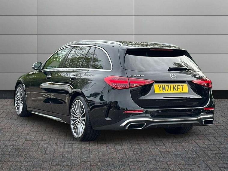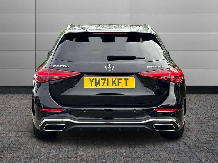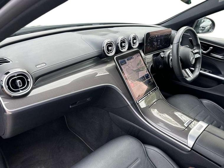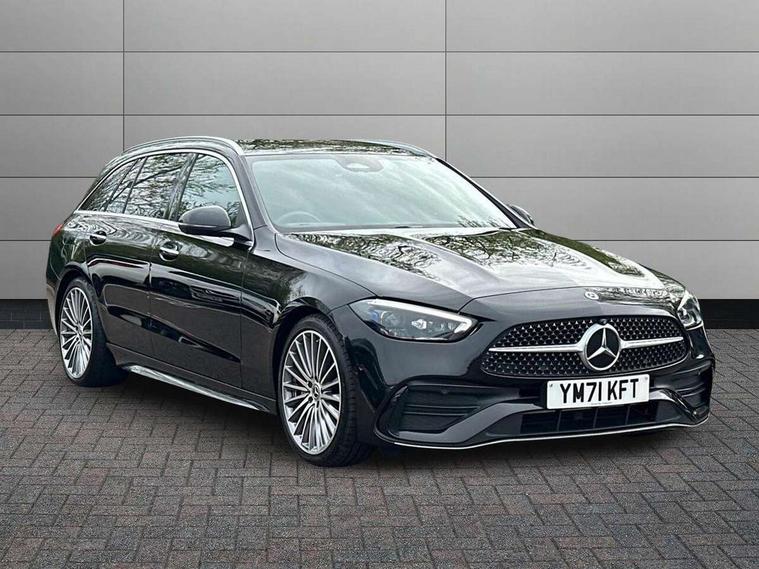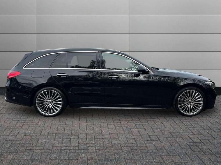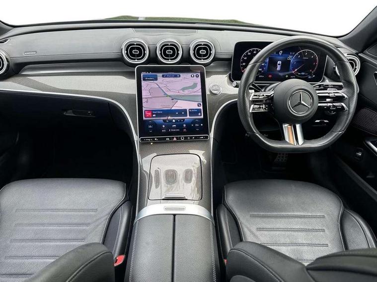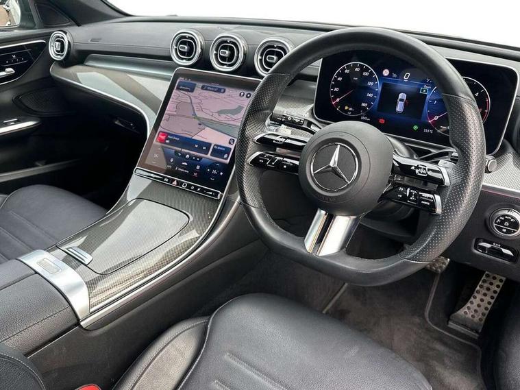 11.9" high resolution multimedia colour display, 12.3" digital instrument cluster display, Active blind spot assist, Active brake assist plus, Active lane keeping assist, Attention assist, Cruise control with speedtronic variable speed limiter, DYNAMIC SELECT with a choice of driving modes (ECO, Comfort, Sport, Sport+ and Individual), E-call, Easy pack automatic powered tailgate, Extended MBUX functions, Finger print sensor, Fluorescent jacket for driver, MBUX augmented reality for navigation, MBUX navigation premium, MBUX voice control activated by keywords "Hey Mercedes", Mercedes connect me, Mercedes me remote services, Outside temperature gauge, Pre-installation for digital key transfer, Remote boot release, Service indicator (ASSYST), Smartphone integration, Sports direct steer speed sensitive steering, Status display for rear seat belts in instrument cluster, Wireless charging system for mobile devices, 66l fuel tank with increased capacity, 9G TRONIC 9 speed automatic transmission, Diesel particulate filter, Sports suspension with selective damping system and lowered by 15 mm, DAB Digital radio, MBUX multimedia system, Steering wheel mounted audio controls, Adaptive brake lights, Adaptive high beam assist plus, AMG body styling front apron, rear apron and side skirts, AMG front bumper with sporty air intakes and chrome elements, AMG rear bumper with high gloss chrome elements, AMG side skirts in vehicle colour, B-pillar trim in glossy black, Body coloured bumpers, Body coloured door mirrors, Chrome beltline trim, Chrome roof rails, Daytime running lights, Digital light LED headlamps, Electric windows with one touch opening/closing and obstruction sensors, Electrically adjustable and heated door mirrors, Green tinted glass, LED Indicators, LED tail lights, LED third brake light, Powerdomes on bonnet, Privacy glass, Radiator diamond grille with integrated Mercedes Benz star and louvre silver with chrome pins, Radio aerial integrated into rear window, Rain sensor with automatic windscreen wiper activation, Rear side wing doors, Rear wiper, Two visible exhaust pipes integrated into rear bumper, 3 spoke flattened bottom AMG multifunction steering wheel in black nappa leather with chrome inserts and perforated leather in grip area, AMG sports seats, Auto Mercedes-Benz child seat recognition sensor, Black air vents with silver chrome elements, Black floor mats with AMG lettering, Black roof liner, Door trim elements high gloss black with silver chrome surroundings and switches, Double cupholder in centre console, Electrically height/reach adjustable steering column, Folding rear seat backrest, Front and rear head restraints, Front centre armrest with storage compartment, Gearshift paddles on steering wheel, Heated front seats, Illuminated door sills with Mercedes Benz lettering, Illuminated glove compartment stowage, Interior lighting - 64 colour Ambient lighting, Leather upholstery, Load compartment cover, Overhead control unit in high gloss black, Rear top tether child seat ISOFIX attachment, Single front passenger seat, Sports pedals with stainless steel surfaces and rubber studs, Sunvisors with illuminated vanity mirrors, THERMATIC 2 zone automatic climate control, Interior lighting package - C Class, Memory package - C Class, Mirror pack - C Class, Parking package with 360 degree camera - C Class, Seat comfort pack - C Class, Stowage space pack - C Class, USB package - C Class, 3 rear 3 point seatbelts, Active bonnet pedestrian safety measure which detects an impact and raises bonnet, Adaptive brake system with HOLD function and brake drying in the wet, Anti-lock braking system (ABS), Black seat belts, Brake calipers with Mercedes-Benz lettering + perforated front brake discs, Child proof door locks, Drivers knee airbag, Drivers pelvis airbag, Dual stage driver/passenger airbags, Electric parking brake, Electronic Stability Programme (ESP), Front centre airbag between driver and front passenger seats, Front side airbags, Larger brake discs on front axle, Rear passenger airbag, Rear seatbelt warning indicator, Sports braking system with perforated front disc brakes, Tyre pressure monitoring system, Warning triangle and first aid kit, Window airbags, Central locking with interior switch, automatic locking and crash sensor with emergency opening function, Chrome surround electric key, Keyless Go comfort access, Urban guard vehicle protection - Thatcham Category 1 consisting of breakin, anti-theft alarm system (ATA), interior monitoring and tow away protection, Artico man-made leather dashboard with contrast stitching, Centre console trim in metal weave, 19" AMG multi spoke design alloy wheels painted in black with high sheen finish, Summer tyres, TIREFIT with tyre inflation compressor,