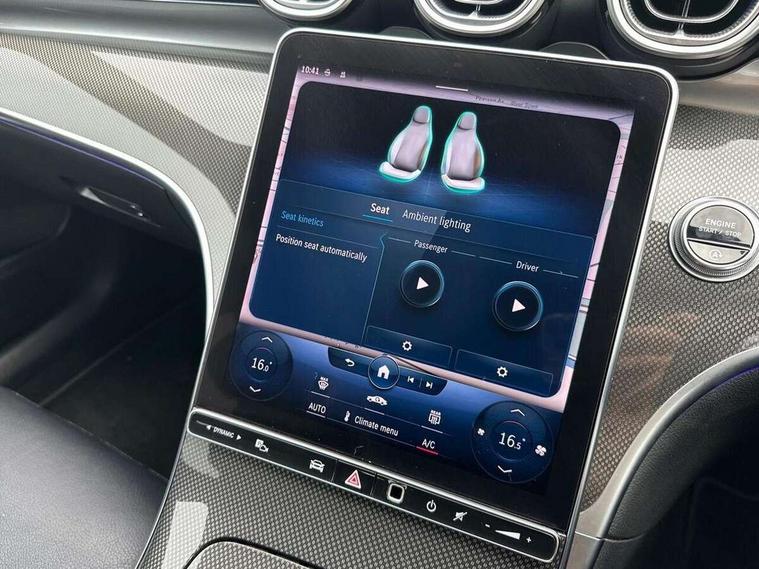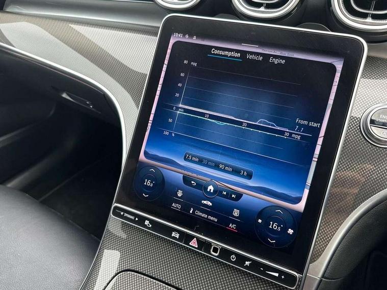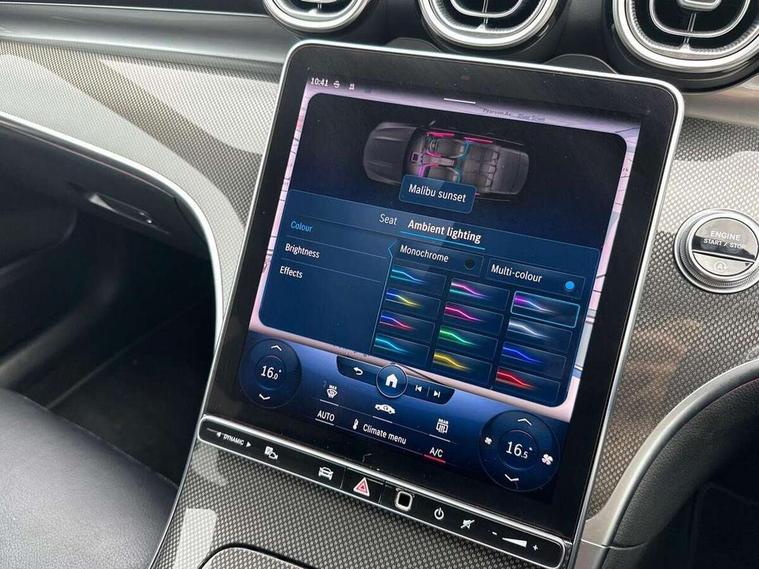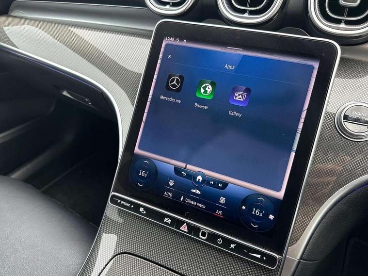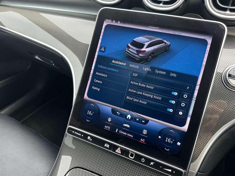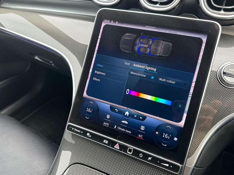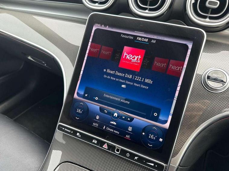11.9" high resolution multimedia colour display, 12.3" digital instrument cluster display, Active blind spot assist, Active brake assist plus, Active lane keeping assist, Attention assist, Cruise control with speedtronic variable speed limiter, DYNAMIC SELECT with a choice of driving modes (ECO, Comfort, Sport, Sport+ and Individual), E-call, Easy pack automatic powered tailgate, Extended MBUX functions, Finger print sensor, Fluorescent jacket for driver, MBUX augmented reality for navigation, MBUX navigation premium, MBUX voice control activated by keywords "Hey Mercedes", Mercedes connect me, Mercedes me remote services, Outside temperature gauge, Pre-installation for digital key transfer, Remote boot release, Service indicator (ASSYST), Smartphone integration, Sports direct steer speed sensitive steering, Status display for rear seat belts in instrument cluster, Wireless charging system for mobile devices, 66l fuel tank with increased capacity, 9G TRONIC 9 speed automatic transmission, Diesel particulate filter, Sports suspension with selective damping system and lowered by 15 mm, DAB Digital radio, MBUX multimedia system, Steering wheel mounted audio controls, Adaptive brake lights, Adaptive high beam assist plus, AMG body styling front apron, rear apron and side skirts, AMG front bumper with sporty air intakes and chrome elements, AMG rear bumper with high gloss chrome elements, AMG side skirts in vehicle colour, B-pillar trim in glossy black, Body coloured bumpers, Body coloured door mirrors, Chrome beltline trim, Chrome roof rails, Daytime running lights, Digital light LED headlamps, Electric windows with one touch opening/closing and obstruction sensors, Electrically adjustable and heated door mirrors, Green tinted glass, LED Indicators, LED tail lights, LED third brake light, Powerdomes on bonnet, Privacy glass, Radiator diamond grille with integrated Mercedes Benz star and louvre silver with chrome pins, Radio aerial integrated into rear window, Rain sensor with automatic windscreen wiper activation, Rear side wing doors, Rear wiper, Two visible exhaust pipes integrated into rear bumper, 3 spoke flattened bottom AMG multifunction steering wheel in black nappa leather with chrome inserts and perforated leather in grip area, AMG sports seats, Auto Mercedes-Benz child seat recognition sensor, Black air vents with silver chrome elements, Black floor mats with AMG lettering, Black roof liner, Door trim elements high gloss black with silver chrome surroundings and switches, Double cupholder in centre console, Electrically height/reach adjustable steering column, Folding rear seat backrest, Front and rear head restraints, Front centre armrest with storage compartment, Gearshift paddles on steering wheel, Heated front seats, Illuminated door sills with Mercedes Benz lettering, Illuminated glove compartment stowage, Interior lighting - 64 colour Ambient lighting, Leather upholstery, Load compartment cover, Overhead control unit in high gloss black, Rear top tether child seat ISOFIX attachment, Single front passenger seat, Sports pedals with stainless steel surfaces and rubber studs, Sunvisors with illuminated vanity mirrors, THERMATIC 2 zone automatic climate control, Interior lighting package - C Class, Memory package - C Class, Mirror pack - C Class, Parking package with 360 degree camera - C Class, Seat comfort pack - C Class, Stowage space pack - C Class, USB package - C Class, 3 rear 3 point seatbelts, Active bonnet pedestrian safety measure which detects an impact and raises bonnet, Adaptive brake system with HOLD function and brake drying in the wet, Anti-lock braking system (ABS), Black seat belts, Brake calipers with Mercedes-Benz lettering + perforated front brake discs, Child proof door locks, Drivers knee airbag, Drivers pelvis airbag, Dual stage driver/passenger airbags, Electric parking brake, Electronic Stability Programme (ESP), Front centre airbag between driver and front passenger seats, Front side airbags, Larger brake discs on front axle, Rear passenger airbag, Rear seatbelt warning indicator, Sports braking system with perforated front disc brakes, Tyre pressure monitoring system, Warning triangle and first aid kit, Window airbags, Central locking with interior switch, automatic locking and crash sensor with emergency opening function, Chrome surround electric key, Keyless Go comfort access, Urban guard vehicle protection - Thatcham Category 1 consisting of breakin, anti-theft alarm system (ATA), interior monitoring and tow away protection, Artico man-made leather dashboard with contrast stitching, Centre console trim in metal weave, 19" AMG multi spoke design alloy wheels painted in black with high sheen finish, Summer tyres, TIREFIT with tyre inflation compressor,