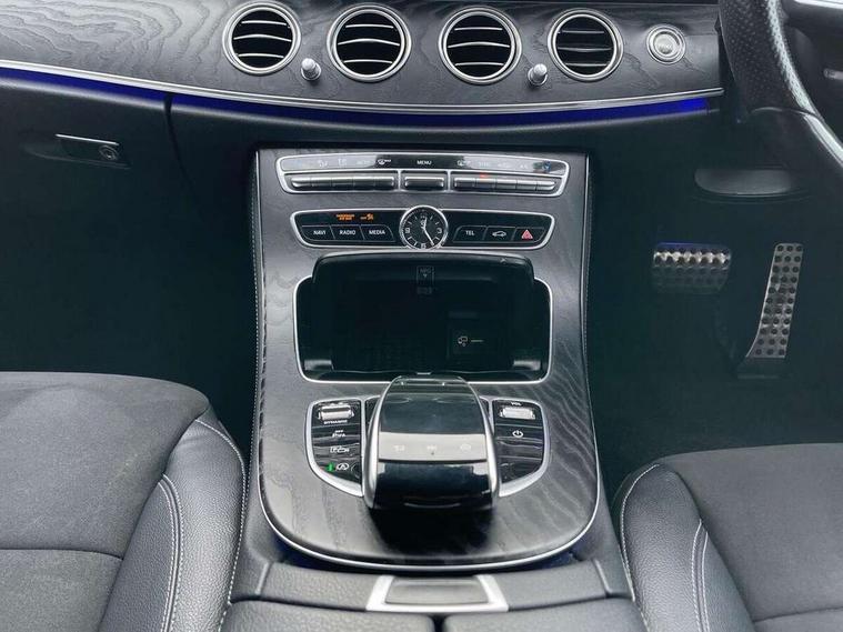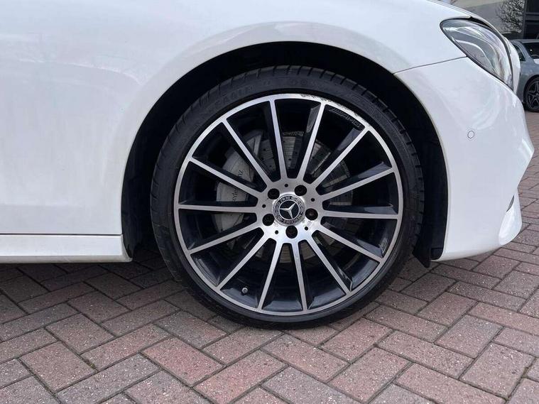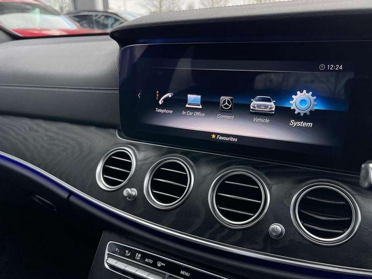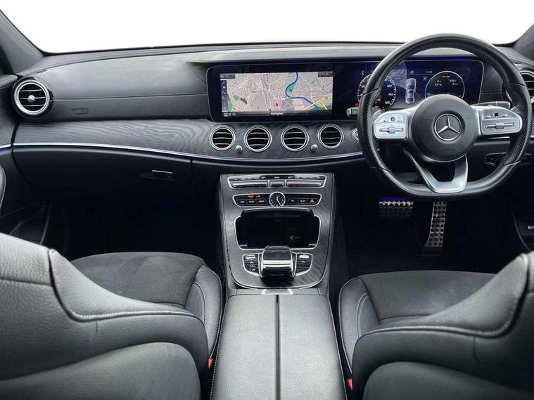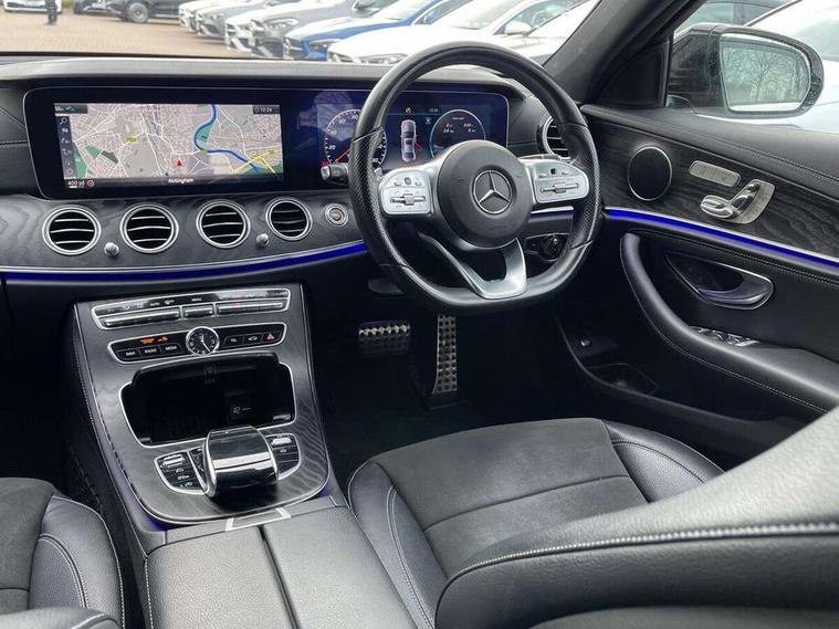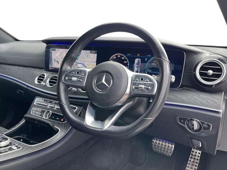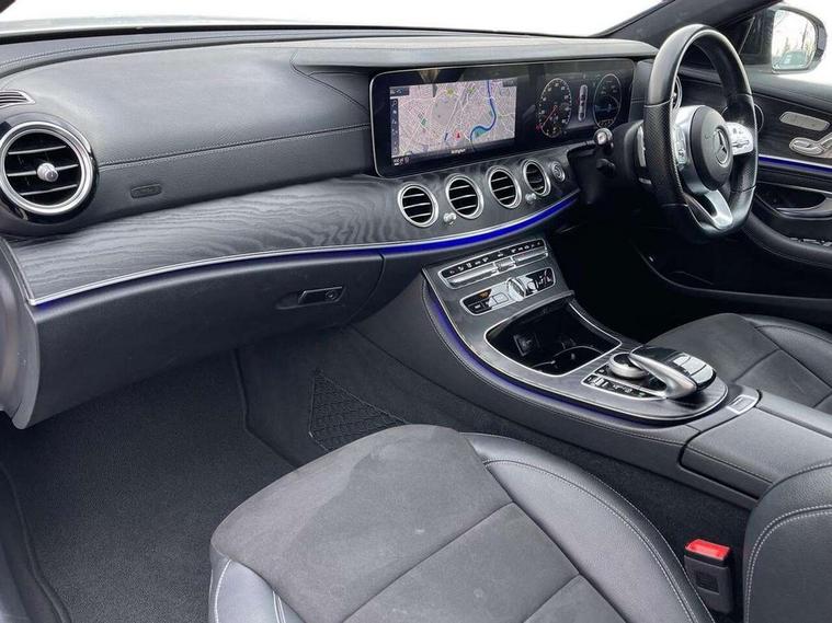 Active parking assist and 360 camera, Analogue clock, Attention assist, Blind spot assist, Boot release from drivers seat, Brake wear warning light, COMAND online system with Media Interface and HDD navigation with 12.3" colour display and cockpit display, DYNAMIC SELECT with a choice of driving modes (ECO, Comfort, Sport, Sport+ and Individual), Mercedes connect me, Multi function trip computer, Outside temperature display, Park assist pilot with front and rear park assist, Remote boot release, Service indicator (ASSYST), Speed sensitive power steering, Status display for rear seat belts in instrument cluster, Stop/start system, Touchpad with control wheel, Wireless charging, 25 litre AdBlue tank, 66 litre fuel tank, Agility control sports suspension with selective damping system and lowered by 15mm, Diesel particulate filter, Incorrect fuelling protection, 2 USB ports in centre console, 2 USB ports in the rear, Audio 20 with USB, control wheel and Media Interface with Bluetooth interface and hands-free function, DAB Digital radio, Steering wheel mounted audio controls, Adaptive brake lights, Aerial integrated in rear window, AMG bodystyling front and rear aprons and side skirts in polished aluminium, Body colour bumpers, Body colour door handles, Chrome trim on the front bumper and high gloss black trim on the rear bumper, Electric windows with one touch opening/closing and obstruction sensors, Electrically adjustable and heated door mirrors, LED High Performance headlamps including integral LED daytime running lamps, LED rear lights, MULTIBEAM Intelligent Light System with Adaptive Highbeam Assist, Polished aluminium upper window surround, Pre-installation for roof rail systems, Privacy glass (rear side windows and rear screen), Radiator grille with integral star and 2 louvres in matt iridium silver with chrome trim, Rain sensor windscreen wipers, Visible twin exhaust tailpipe in bumper, 3 spoke multifunction flat bottom AMG steering wheel with chrome inserts and touch control buttons, trimmed in black nappa leather, 40:20:40 split folding rear bench seat, Ambient lighting, AMG floormats, AMG sports pedals with brushed stainless steel surfaces and black rubber studs, Artico leather upper dash trim and beltlines with contrast stitching, Artico man-made leather/Microfibre Dinamica upholstery, Auto dual-zone climate control system, Auto Mercedes-Benz child seat recognition sensor, Black roof lining, Chrome door pins, Four way partially front electric seat adjustment, Front and rear door pockets, Front centre armrest with storage compartment, Front door sills with illuminated Mercedes lettering, Glasses compartment in overhead control panel, Head restraints for driver and front passenger (four-way adjustability) and in rear (two-way), Heated front seats, Height/reach adjust steering wheel, Interior rear light/integral reading lights, Isofix rear child seat fastenings, Lockable/illuminated air conditioned glovebox, Steering wheel multifunction with gearshift paddles, Storage compartment with 12V socket in centre console, Sunvisors with illuminated vanity mirrors, Memory pack - E Class, Mirror pack - E Class, Night pack - E Class AMG Line, Seat comfort pack - E Class, Stowage pack - E Class, 3x3 point rear seatbelts, Active bonnet, Active brake assist, Adaptive brake system with HOLD function and brake drying in the wet, Anti-lock braking system (ABS), Black seat belts, Childproof rear door locks, Driver and passenger side/thorax airbags, Driver/front passenger airbag, Drivers knee airbag, Electronic parking brake, Electronic Stability Programme, Hill hold assist, Hill start assist, Perforated front brake discs with "Mercedes-Benz" lettering, Pre-Safe anticipatory safety system, Seat occupancy sensor, Seatbelt warning, Tyre pressure monitoring system, Warning triangle and first aid kit, Window airbags, Alarm system/interior protection/immobiliser, Central locking with interior switch, automatic locking and crash sensor with emergency opening function, Chrome surround in electric key, Keyless start, Black open pore ash wood dashboard and door trim + Centre console in black open pored ash wood, Black open pore ash wood trim and centre console in black open pore ash wood, Contrast stitching, 20" AMG multi spoke light alloy wheels painted in high gloss black sheen finish - RVR, Run flat tyres,