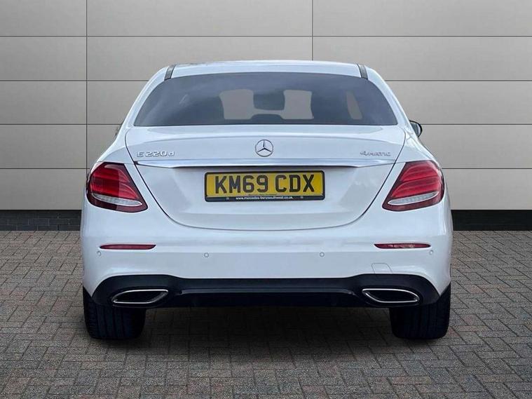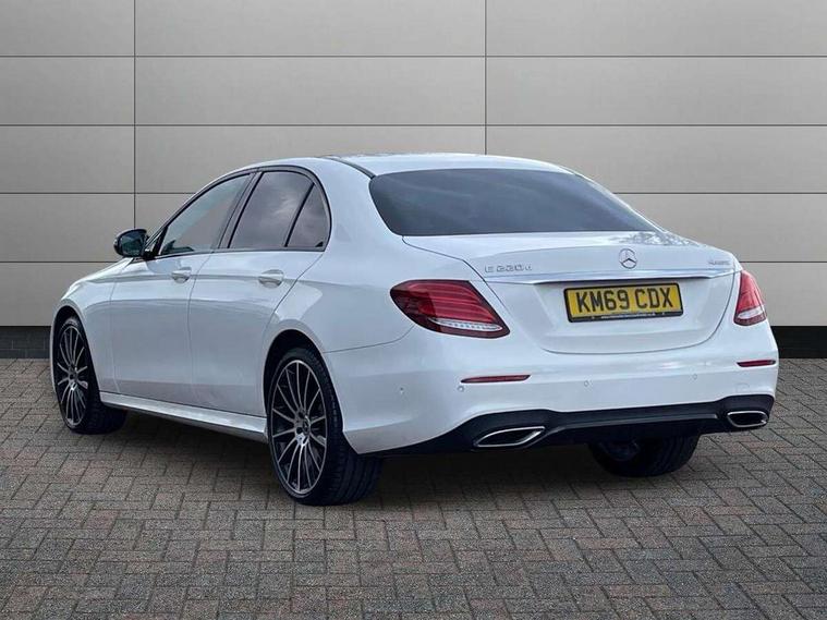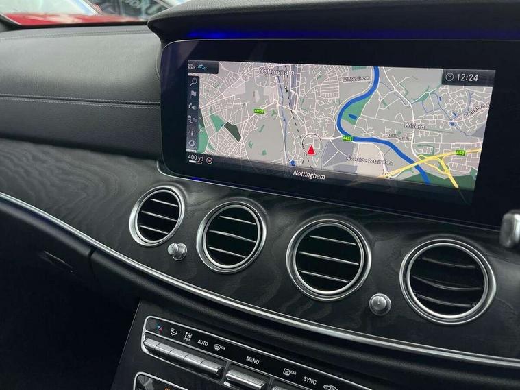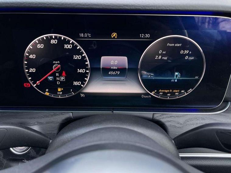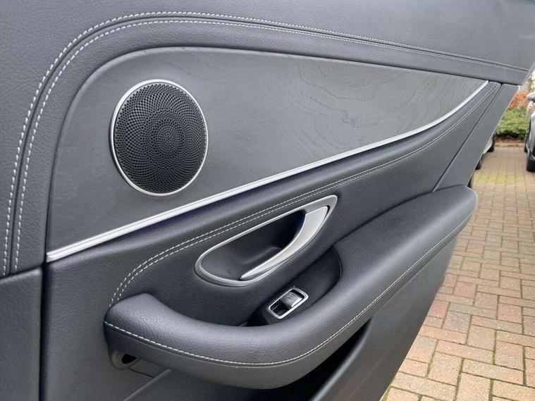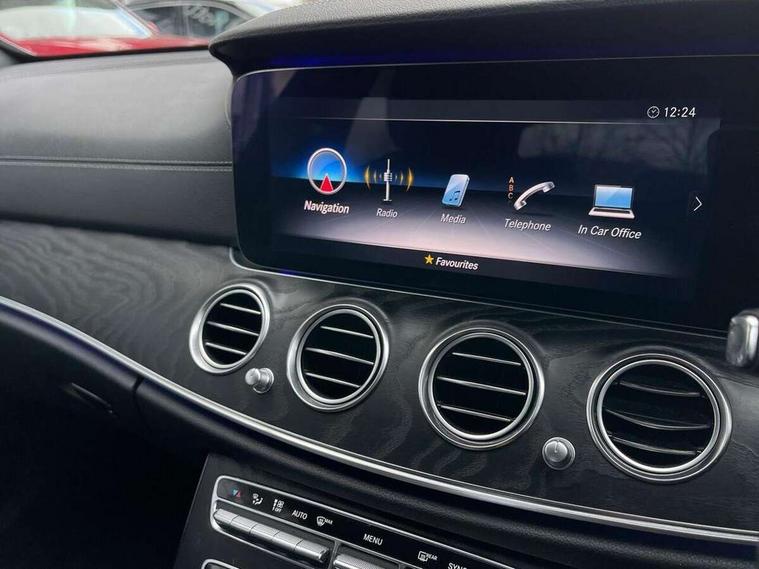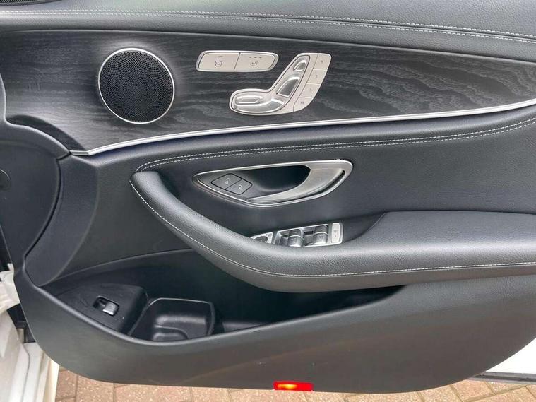 Active parking assist and 360 camera, Analogue clock, Attention assist, Blind spot assist, Boot release from drivers seat, Brake wear warning light, COMAND online system with Media Interface and HDD navigation with 12.3" colour display and cockpit display, DYNAMIC SELECT with a choice of driving modes (ECO, Comfort, Sport, Sport+ and Individual), Mercedes connect me, Multi function trip computer, Outside temperature display, Park assist pilot with front and rear park assist, Remote boot release, Service indicator (ASSYST), Speed sensitive power steering, Status display for rear seat belts in instrument cluster, Stop/start system, Touchpad with control wheel, Wireless charging, 25 litre AdBlue tank, 66 litre fuel tank, Agility control sports suspension with selective damping system and lowered by 15mm, Diesel particulate filter, Incorrect fuelling protection, 2 USB ports in centre console, 2 USB ports in the rear, Audio 20 with USB, control wheel and Media Interface with Bluetooth interface and hands-free function, DAB Digital radio, Steering wheel mounted audio controls, Adaptive brake lights, Aerial integrated in rear window, AMG bodystyling front and rear aprons and side skirts in polished aluminium, Body colour bumpers, Body colour door handles, Chrome trim on the front bumper and high gloss black trim on the rear bumper, Electric windows with one touch opening/closing and obstruction sensors, Electrically adjustable and heated door mirrors, LED High Performance headlamps including integral LED daytime running lamps, LED rear lights, MULTIBEAM Intelligent Light System with Adaptive Highbeam Assist, Polished aluminium upper window surround, Pre-installation for roof rail systems, Privacy glass (rear side windows and rear screen), Radiator grille with integral star and 2 louvres in matt iridium silver with chrome trim, Rain sensor windscreen wipers, Visible twin exhaust tailpipe in bumper, 3 spoke multifunction flat bottom AMG steering wheel with chrome inserts and touch control buttons, trimmed in black nappa leather, 40:20:40 split folding rear bench seat, Ambient lighting, AMG floormats, AMG sports pedals with brushed stainless steel surfaces and black rubber studs, Artico leather upper dash trim and beltlines with contrast stitching, Artico man-made leather/Microfibre Dinamica upholstery, Auto dual-zone climate control system, Auto Mercedes-Benz child seat recognition sensor, Black roof lining, Chrome door pins, Four way partially front electric seat adjustment, Front and rear door pockets, Front centre armrest with storage compartment, Front door sills with illuminated Mercedes lettering, Glasses compartment in overhead control panel, Head restraints for driver and front passenger (four-way adjustability) and in rear (two-way), Heated front seats, Height/reach adjust steering wheel, Interior rear light/integral reading lights, Isofix rear child seat fastenings, Lockable/illuminated air conditioned glovebox, Steering wheel multifunction with gearshift paddles, Storage compartment with 12V socket in centre console, Sunvisors with illuminated vanity mirrors, Memory pack - E Class, Mirror pack - E Class, Night pack - E Class AMG Line, Seat comfort pack - E Class, Stowage pack - E Class, 3x3 point rear seatbelts, Active bonnet, Active brake assist, Adaptive brake system with HOLD function and brake drying in the wet, Anti-lock braking system (ABS), Black seat belts, Childproof rear door locks, Driver and passenger side/thorax airbags, Driver/front passenger airbag, Drivers knee airbag, Electronic parking brake, Electronic Stability Programme, Hill hold assist, Hill start assist, Perforated front brake discs with "Mercedes-Benz" lettering, Pre-Safe anticipatory safety system, Seat occupancy sensor, Seatbelt warning, Tyre pressure monitoring system, Warning triangle and first aid kit, Window airbags, Alarm system/interior protection/immobiliser, Central locking with interior switch, automatic locking and crash sensor with emergency opening function, Chrome surround in electric key, Keyless start, Black open pore ash wood dashboard and door trim + Centre console in black open pored ash wood, Black open pore ash wood trim and centre console in black open pore ash wood, Contrast stitching, 20" AMG multi spoke light alloy wheels painted in high gloss black sheen finish - RVR, Run flat tyres,