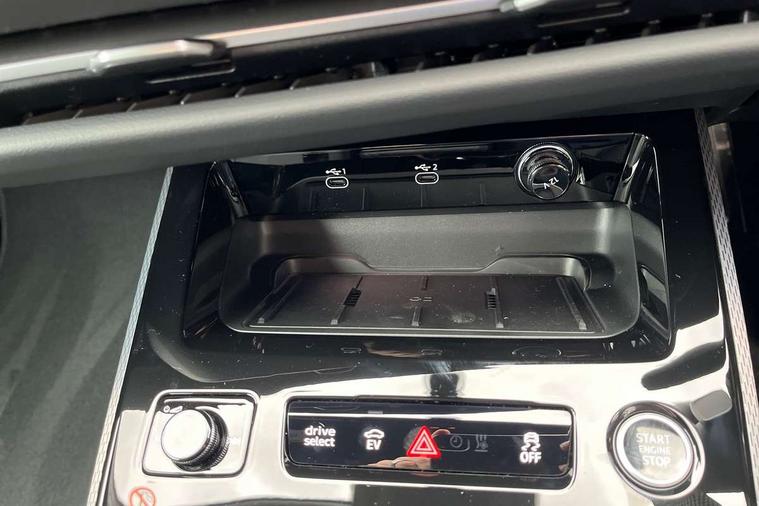 Adaptive cruise control, Attention and drowsiness detection with driver observation, Audi application store, Audi assistant, Audi connect emergency call and service, Audi drive select, Audi virtual cockpit plus with 11.9" OLED colour display, Automatic start/stop system with coasting functionality, Camera based traffic sign recognition, Convenience key, Intersection assist, Lane departure warning, MMI navigation plus with high resolution 14.5" OLED touchscreen colour display, Park assist plus, Parking system plus with 360 display, Progressive steering with servotronic, Rear view camera, Side assist and exit warning, rear cross-traffic assist and rear turn assist, Smartphone interface, Swerve assist and turn assist, Traffic sign based speed limiter, Household plug type G, Hybrid propulsion system, Industrial connector CEE 32A, 230V, long and straight for the e-tron charging system, Mode 3 type 2 AC charging cable 22kW, Sports suspension lowered by 20mm, Audi sound system impressive sound with 8 loudspeakers including centre speaker and subwoofer, 6-channel amplifier with a total output of 180 watts, DAB digital radio reception, Smartphone compartment with wireless charging, Aluminium window trims, Auto dimming rear view mirror, Body colour door handles, Body colour door mirrors, Door mirrors - electrically adjustable, heated, folding and auto dimming on both sides, Front and rear electric windows, Front door sill trims with aluminium inlays, illuminated with 'S' logo, High beam assist, LED headlights Plus incl. digital daytime running lights, turning light, all-weather light, motorway light, manouevring light and intersection light, LED rear lights pro incl. dynamic rear indicators and illuminated light strip with animated coming and leaving home function, LED third brake light, Privacy glass, Rear and side windows with heat insulating glass, Rear boot, Rear side wing doors, S Line badges on the front wings, S line bumpers, radiator grille and diffuser in phantom black and diffuser insert in matt anthracite, White rhombus logo projection light in exterior mirrors, Windscreen with acoustic glazing, 3 rear headrests, 3 seat rear bench, 3 spoke leather steering wheel with multi-function buttons with touch control, flattened on top and bottom, with S badging and contrast stitching, 3-zone automatic climate control, 40:20:40 split folding rear seat bench with centre armrest and cup holders, Auxiliary air conditioning, Comfort front centre armrest, Front and rear floor mats, Front sport seats with integrated headrest and S embossed logo, Headlining in black cloth, i-Size child seat mounting on the front passenger side and outer rear seats, i-Size and top tether on the outer rear seats, Increased charging capacity for USB ports 2X100 Watts in rear, 2X60 Watts in front, Luggage compartment lid, electrically opening and closing, Manual steering column height and depth adjustment, Single front passenger seat, Stainless steel pedals and footrest, Steering wheel grips in perforated leather and shift paddles, Ambient lighting package plus - A5, 3x3 point rear seat belts, Acoustic vehicle alerting system, Driver airbag, Electric child safety locks, First aid kit with warning triangle and vests, Front emergency brake assist, Front passenger airbag, Front passenger airbag deactivation, Front side airbags with head airbag system and front interaction airbag, Hill hold assist, Seat belt monitoring with rear seat occupant reminder, Tyre pressure loss indicator, Anti theft alarm, Anti-theft wheel bolts, Digital key, Keyless Go, Accent surfaces and control buttons in gloss black, Black dashboard with contrast stitching, Inlays in matt brushed aluminium with linear embossing, anthracite, Softwrap in leatherette with contrast stitching, Upper and lower interior elements in leatherette, Tyre repair kit,