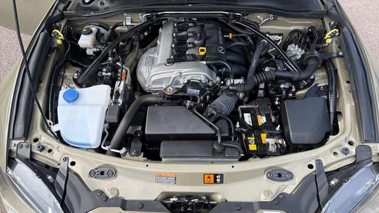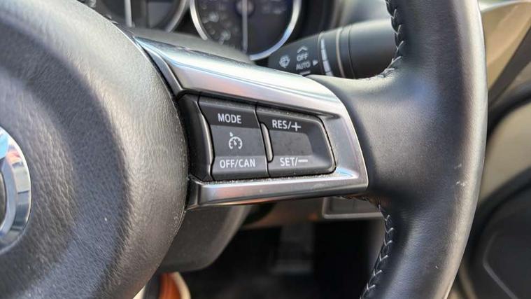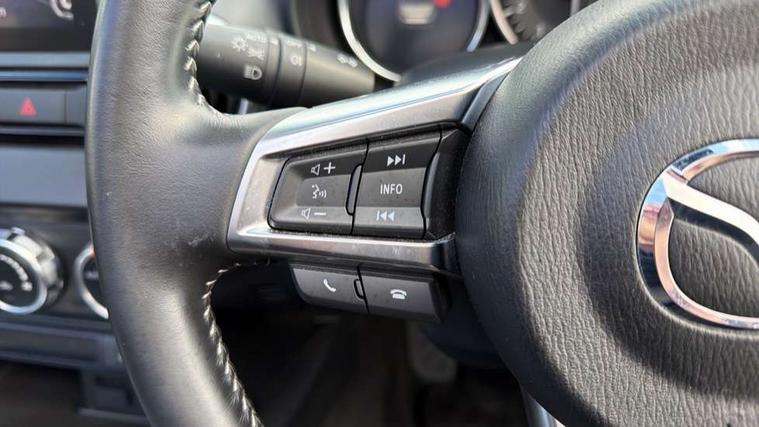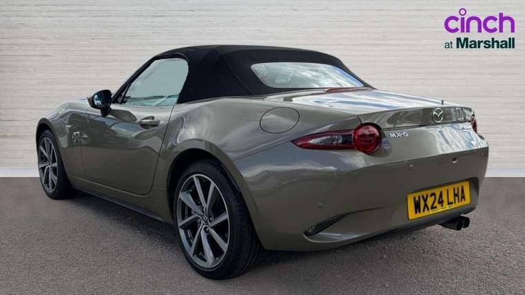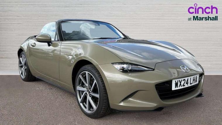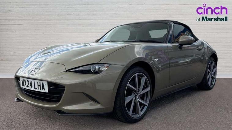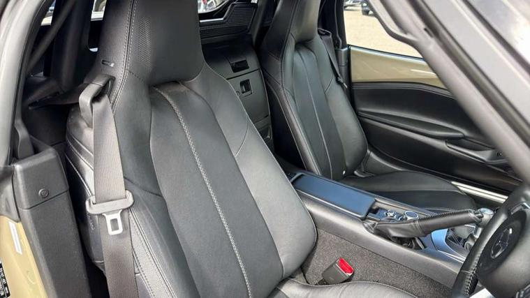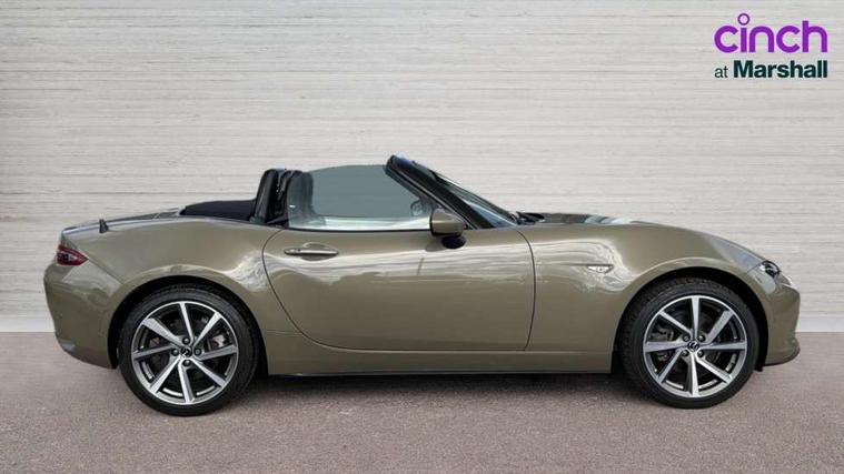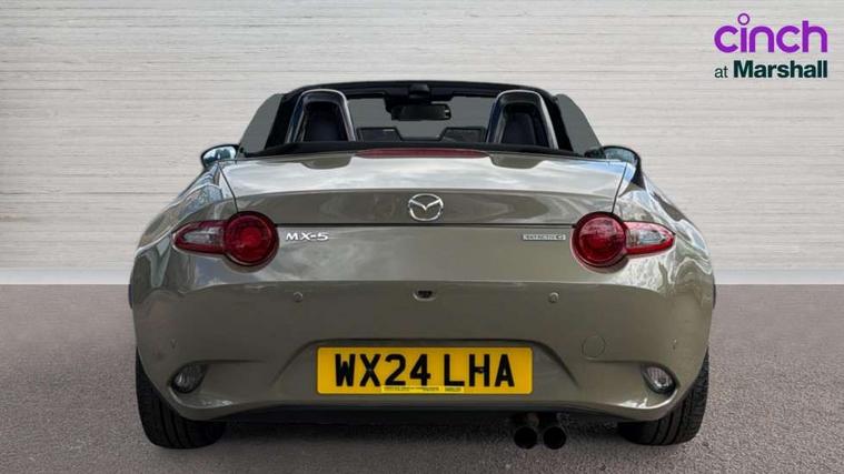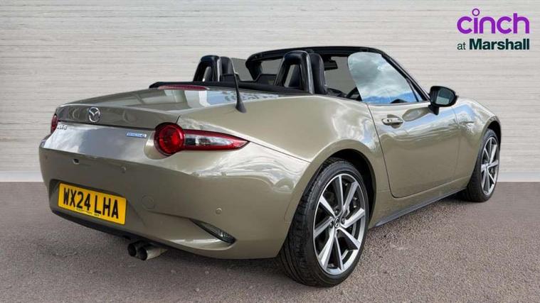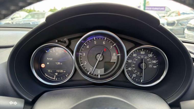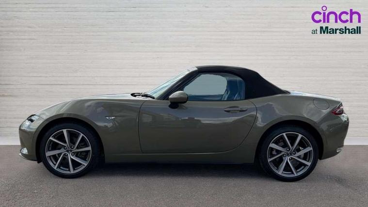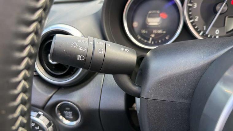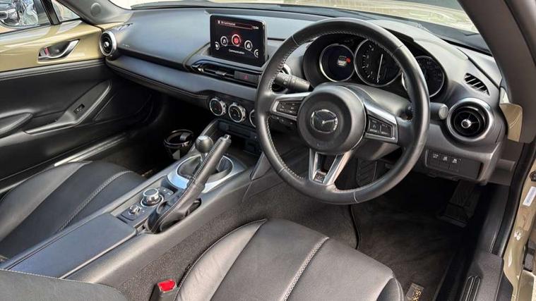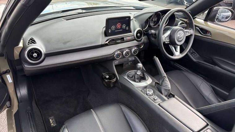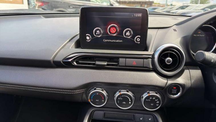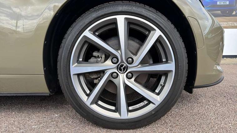 8.8" Colour centre touch screen display with Mazda Connect infotainment, Aha and stitcher app, Analogue speedometer, Apple car play/Android Auto, Blind spot monitoring with rear cross traffic alert, Cruise control with Intelligent speed assist, Driver alert system, eCall emergency call system, Emergency stop signalling system, Engine start/stop button, Hands free phone preparation, Integrated bluetooth with hands-free calling, bluetooth audio and easy access to phone contacts, Integrated navigation system, Kinematic posture control, Lane departure warning system, Lane keep assist, Multi dot display tachometer and electric odometer, PAS, Rear parking sensor, Reversing camera, Service indicator, Traffic sign recognition, Trip computer, Water temperature gauge, Asymmetric limited slip differential, I-ELOOP, i-stop, Sports suspension featuring Bilstein dampers, 2 x USB Type-C inputs, Multimedia Commander including separate volume dial, Premium Bose sound system with 9 speakers with 2 in each front headrest, AM/FM/DAB radio and MP3, Steering wheel mounted audio/bluetooth controls, Adaptive LED Headlights, Automatic headlamp levelling, Black scuff plates with stainless steel insert, Body colour bumpers, Body colour co ordinated interior upper door trim, Body coloured electric/heated door mirrors, Coming/leaving home lighting function, Dual exhaust pipes, Dusk sensitive headlamps, Electric front windows/one touch facility, Exterior body colour co ordinated upper door panel trim with black vinyl and silver stitching, Frameless auto dimming rear view mirror, Front intermittent wipers, LED 3rd brake light, LED daytime running lights, LED indicator lights, LED rear lights, Manually operated black premium cloth soft top with heated rear glass window, Piano Black fashion bars, Rain sensing front wipers, Rear boot, 12V socket, Centre console storage box, Chrome Air conditioning dials, Climate control air conditioning, Coin Box, Driver and front passenger sunvisors with covered vanity mirror and driver ticket holder, Driver seat manual slide, recline and tilt adjustment, Front centre armrest, Front head restraints, Gear shift indicator, Heated front seats, in 3 heat levels, Interior courtesy light, ISOFIX front passenger seat child seat compliance, Leather gear knob, Leather handbrake lever, Leather steering wheel, Lockable rear centre box with lid, Passenger seat + manual slide/recline adjust, Perforated leather upholstery, Single front passenger seat, Strut brace, Tilt/telescopic steering column, Two cupholders, Windblocker, 3 point ELR front seatbelts with pretensioners, ABS+Electronic Brake force Distribution, Deployable Hood System (DHS), Driver and passenger seatbelt reminder audible warning, Dynamic stability control with track mode, Exit warning, Front dual stage driver and single stage front passenger airbags, Front smart city brake support with autonomous emergency braking (SCBS), Hill hold assist, Passenger airbag deactivate switch, Side airbags, Smart city brake support - Rear (SCBS-R), Traction control, Tyre pressure monitor, Remote central locking with deadlocking and remote boot release, Smart keyless entry, Superlocking, Thatcham category 1 alarm + immobiliser, Centre Console - Vinyl leather, Chrome air vent surrounds, Dashboard panel - Black Vinyl, 17" Black machined alloy wheels, Tyre puncture repair kit,