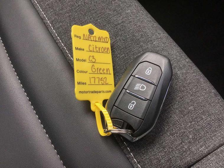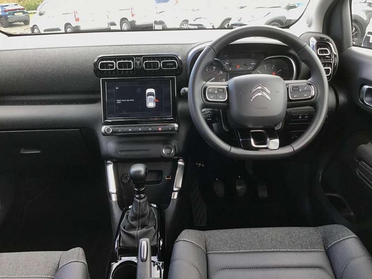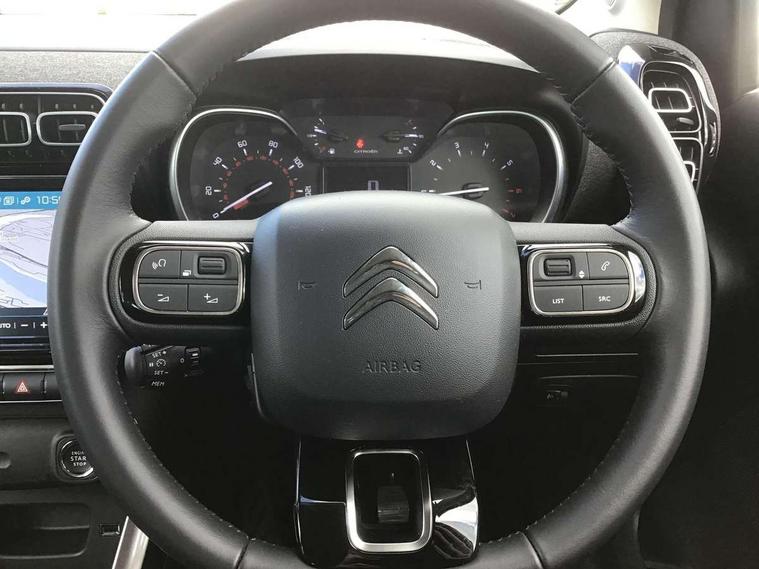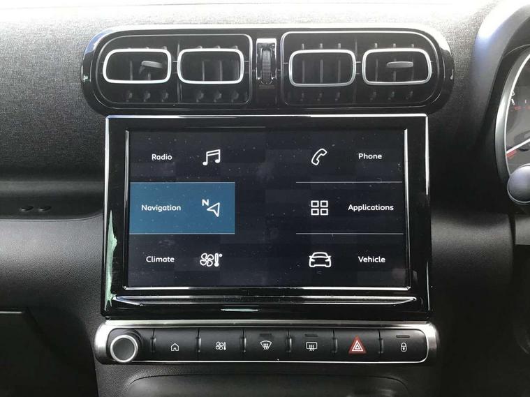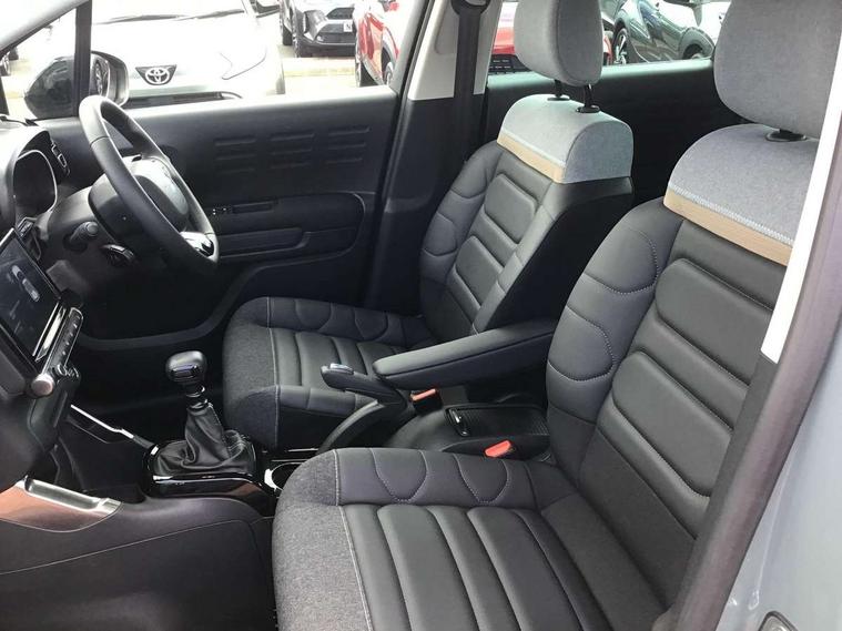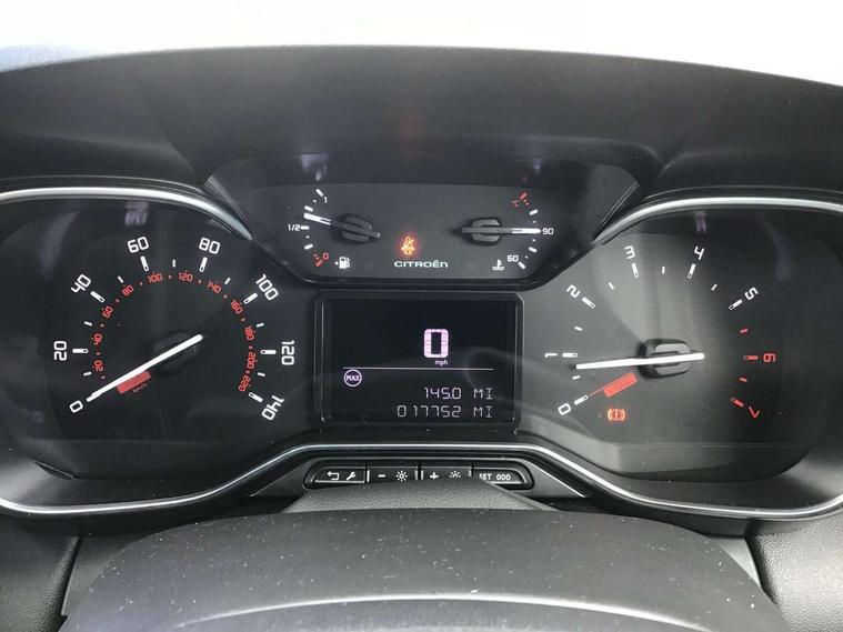 9" Touchscreen display, Citroen Connect Nav with 3D navigation, Coffee Break Alert, Cruise control with speed limiter, Driver instrument cluster including trip computer and rev counter with white text LCD display and white needles and chrome decor, eCall emergency call system, Lane departure warning system, Mirror screen with Apple CarPlay and Android auto, Outside temperature sensor, Tailgate, Traffic signs and speed limit recognition and recommendation, Variable assistance power steering, Voice recognition for radio, navigation and telephone features, Bluetooth hands free and media streaming with USB socket, Citroen connected DAB radio with 6 speakers, Steering wheel mounted controls for stereo and telephone, 3D effect LED rear lights, Automatic Eco LED headlights, Automatic lights and windscreen wipers, Black roof bars, Body colour painted door handles, Chrome chevrons front grille, Electric front windows + one touch + anti-pinch, Electric rear windows with one touch/anti-pinch, Electrically adjustable door mirrors, Electrically folding door mirrors, Fog lights integrated into front bumper, Front and rear body coloured bumpers, Heated door mirrors, Integrated roof spoiler, LED daytime running lights, LED third brake light, Painted door mirrors to match colour pack, Rear side wing doors, Rear wiper, Tinted rear windows and rear quarterpanel glass, Variable front intermittent wipers, 12V socket in rear of vehicle, 60/40 split folding rear seat, Automatic air conditioning, Boot light, Centre console with closed storage and chrome insert, Driver and front passenger cup holders, Driver and passenger sunvisor with courtesy mirror, Flex load/Pull out boot floor, Front and rear courtesy reading lights, Front and rear door storage, Front head restraints, Gloss black air vent surrounds and steering wheel insert, Glovebox with closable lid, Height adjustable driver's seat, Height and reach adjustable steering wheel, Manual handbrake with chrome insert, Passenger compartment headlight adjustment, Rear isofix mounting points (outside seats) with top tether, Row 2 - Three seats with individually adjustable head rests, Satin chrome interior door handles, Single front passenger seat, 3 point, height adjustable, pre tensioned front seatbelts, ABS with Electronic brakeforce distribution and Emergency braking assistance, Automatic illumination of hazard warning lights, Curtain airbags, Driver airbag, Drivers/passengers and rear seats unfastened seat belt warning, ESC (Electronic Stability Control), Front lateral airbags, Front passenger airbag, Front passenger airbag deactivation switch, Hill start assist function, Mono-tone horn, Rear door child safety locks, Three 3 point rear seatbelts, Tyre pressure monitor, Automatic door and boot locking when moving off with automatic unlocking in case of impact, Automatic locking of the vehicle (after 30 seconds if door or boot unopened), Immobiliser, Perimetric and volumetric anti theft alarm, Remote central locking + deadlocks, Vehicle locater function (headlights illuminate when button on key pressed), Compressor with puncture repair kit,