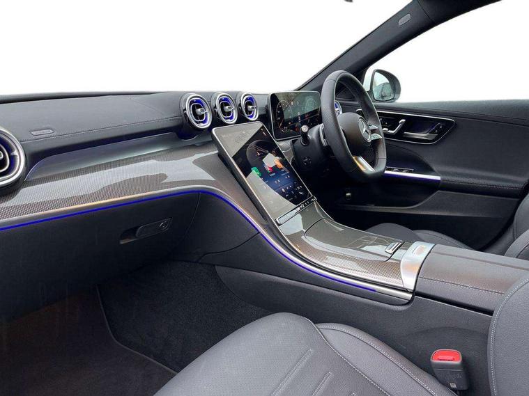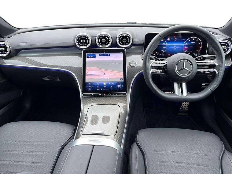 11.9" high resolution multimedia colour display, 12.3" digital instrument cluster display, Active lane keeping assist, Active parking assist with PARKTRONIC, Attention assist, Blind spot assist, Cruise control with speedtronic variable speed limiter, DYNAMIC SELECT with a choice of driving modes (Comfort, ECO, Sport, Sport+, Individual), E-call, Extended MBUX functions, Finger print sensor, Fluorescent jacket for driver, Hard disc navigation, MBUX navigation premium, Mercedes me remote services, Outside temperature gauge, Service indicator (ASSYST), Smartphone integration, Sports direct steer speed sensitive steering, Status display for rear seat belts in instrument cluster, Traffic sign assist, Wireless charging system for mobile devices, 66 litre fuel tank, 9G TRONIC 9 speed automatic transmission, Petrol Particulate Filter, Sport suspension, DAB Digital radio, MBUX multimedia system, Adaptive brake lights, Adaptive high beam assist, AMG body styling front apron, rear apron and side skirts, AMG Line exterior, Body coloured bumpers, Body coloured door mirrors, Electric windows with one touch opening/closing and obstruction sensors, Electrically adjustable and heated door mirrors, Heat insulating dark tinted glass, LED daytime running lights, LED high performance headlamps, LED Indicators, LED tail lights, LED third brake light, Radiator diamond grille with integrated Mercedes Benz star with chrome pins, Rain sensor with automatic windscreen wiper activation, Rear boot, Rear side wing doors, Two visible exhaust pipes integrated into rear bumper, 3 seat bench in 2nd row, 40:20:40 split folding rear bench seat, Ambient lighting premium, Ambient lighting with projection of brand logo, AMG floor mats, AMG line interior, Artico man-made leather upholstery, Auto Mercedes-Benz child seat recognition sensor, Black roof liner, Double cupholder in centre console, Electrically height/reach adjustable steering column, Folding rear seat backrest, Front and rear head restraints, Gearshift paddles on steering wheel, Heated front seats, Illuminated door sills with Mercedes Benz lettering, Illuminated glove compartment stowage, Multifunction sports steering wheel in nappa leather, Rear top tether child seat ISOFIX attachment, Single front passenger seat, Sports seats, Sunvisors with illuminated vanity mirrors, THERMATIC 2 zone automatic climate control, Interior light package - C Class, Memory package - C Class, Mirror package - C Class, Parking package with reversing camera - C Class, Stowage space pack - C Class, USB package plus - C Class, 3 rear 3 point seatbelts, Active bonnet pedestrian safety measure which detects an impact and raises bonnet, Active brake assist, Adaptive brake system with HOLD function and brake drying in the wet, Anti-lock braking system (ABS), Black seat belts, Brake calipers with Mercedes-Benz lettering + perforated front brake discs, Child proof door locks, Drivers knee airbag, Drivers pelvis airbag, Dual stage driver/passenger airbags, Electric parking brake, Electronic Stability Programme (ESP), Front centre airbag between driver and front passenger seats, Front side airbags, Tyre pressure monitoring system, Warning triangle and first aid kit, Window airbags for driver, front passenger and rear passenger, Antitheft alarm system, Interior monitoring system and Increased antitheft protection, Central locking with interior switch, automatic locking and crash sensor with emergency opening function, Chrome surround in electric key, Urban guard vehicle protection plus, Dashboard, instrument panel and beltlines in ARTICO man made leather in nappa look, Metal structure trim element with centre console in metal structure finish, 18" AMG 5 spoke light-alloy wheels painted in tantalite grey with high sheen finish, TIREFIT with tyre inflation compressor,