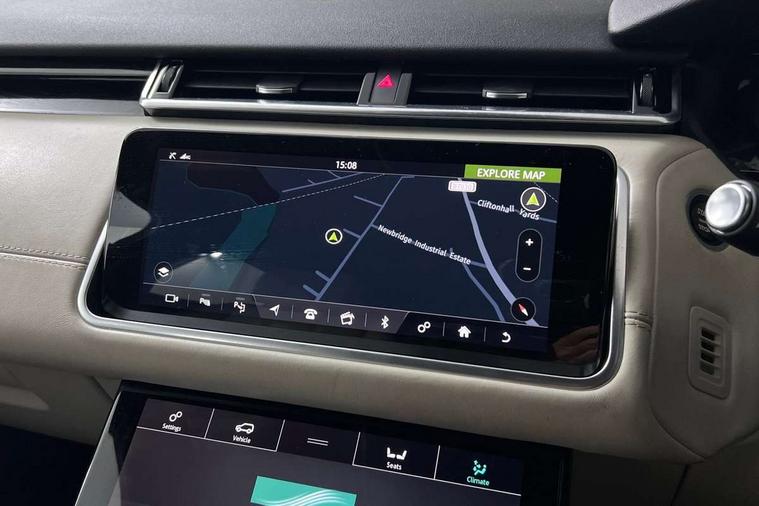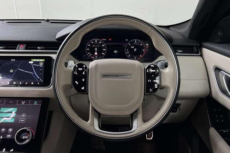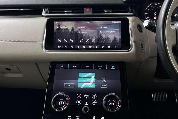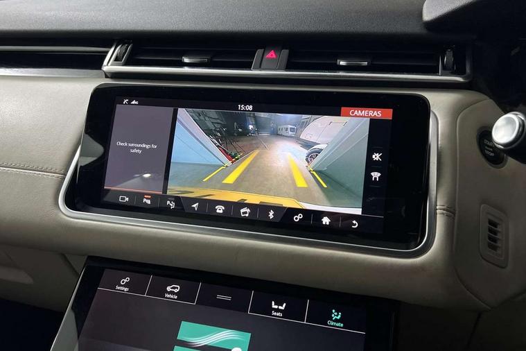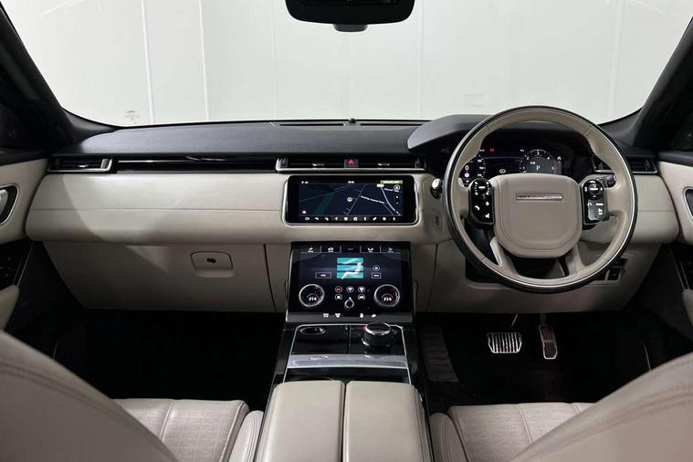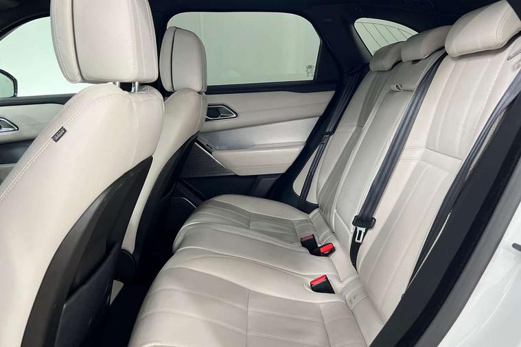 360 Parking aid sensors, Android Auto, Apple car play, Blind spot assist, Bluetooth connectivity, Brake pad wear indicator warning light, Driver condition monitor, InControl remote, InControl Touch navigation pro, Interactive Driver display instrument cluster, Land Rover InControl apps, Lane keep assist, Park Assist - Parallel Park/Parking Exit/Perpendicular park, Pro services and wifi hotspot, Rear traffic monitor, Service indicator, Speed proportional electronic power assisted steering (EPAS), Traffic sign recognition with adaptive speed limiter, Trip computer, Voice control system, 8 speed automatic transmission, Adaptive dynamics, Electronic air suspension, Open differential with torque vectoring by braking, Single speed transfer box, Digital Audio Broadcast radio-DAB, Steering wheel mounted controls, Acoustic laminated windscreen, Adaptive front lighting system, Auto dimming interior rear view mirror, Automatic headlamp levelling, Automatic headlights, Body coloured bumpers, Boot protection plate, Electric windows with one touch open/close and anti trap, Flush deployable exterior door handles, Follow me home headlights, Headlamp power wash, Heated rear window with timer, Heated windscreen + heated windscreen washer jets, Power fold, auto-dimming, heated door mirrors with approach lights, Rain sensor windscreen wipers, Rear fog lights, Rear wash/wipe, Tailgate/boot lid spoiler, Trailer stability assist, Velar and R-dynamic badge, 40:20:40 split folding rear seats, Adjustable front armrest, Bright metal pedals, Driver and passenger illuminated vanity mirror, Electric adjustable steering column, Isofix system on outer rear seats, Loadspace cover, Passive front headrests, Rear centre headrest, Satin chrome gearshift paddles, 350mm front brakes, 3x3 point rear seatbelts, Anti-lock braking system (ABS), Cornering brake control, Curtain airbags, Door side intrusion beams, Driver airbag, DSC - Dynamic Stability Control, Electronic brake force distribution, Electronic parking brake, Electronic traction control, Emergency brake assist, Front and rear seatbelt reminder, High speed emergency braking, Hill descent control, Hill launch assist, Low traction launch, Passenger airbag, Power operated child locks, Rear airbags, Roll stability control, Side airbags, Tyre pressure monitoring system, Unpainted brake calipers, Global lock and unlock switch on driver door, Immobiliser, Intrusion sensor, Keyless entry, Lock only switch on front passenger door, Perimetric alarm, Remote central locking,