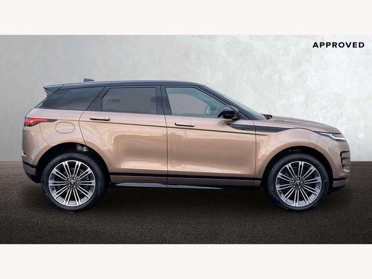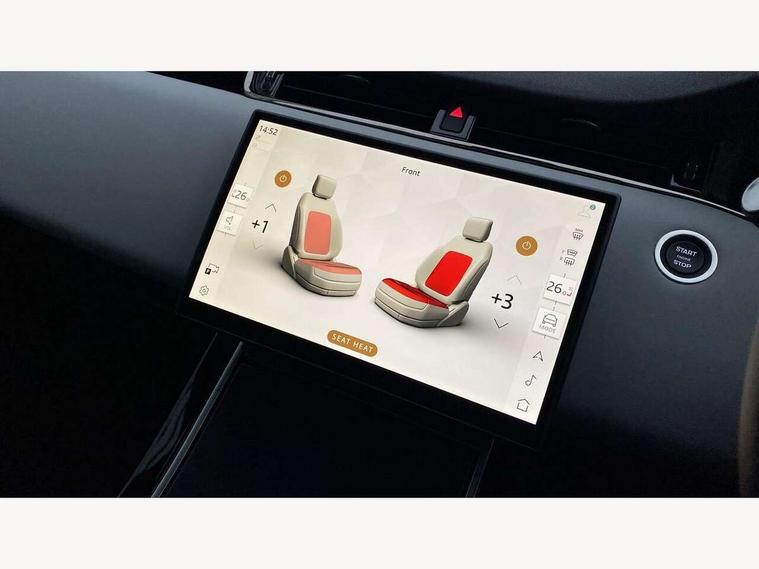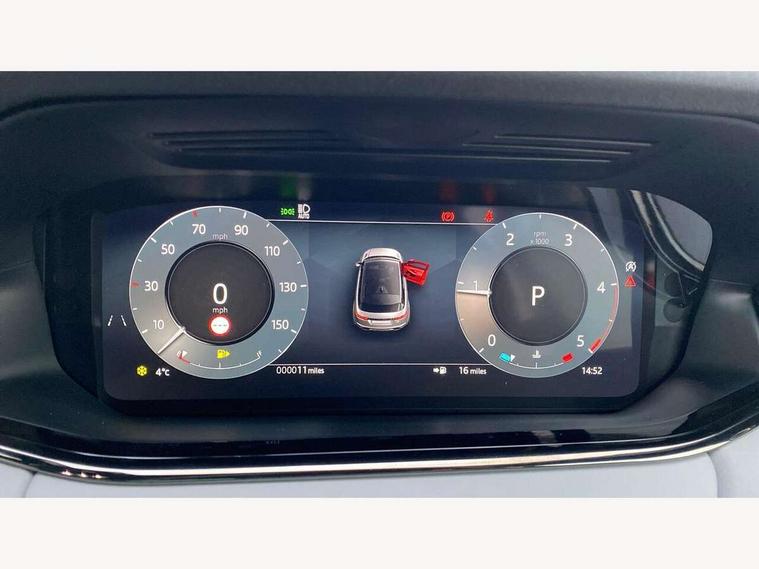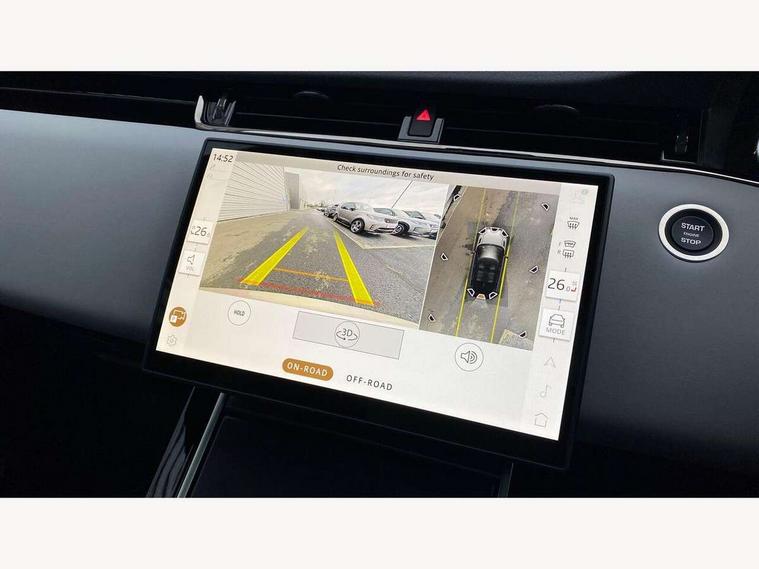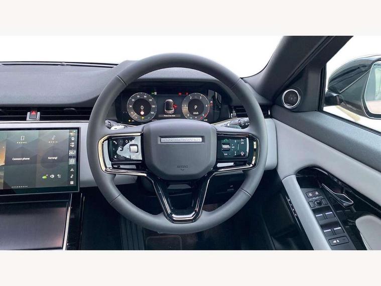 11.4" touch screen, 3D 360 degree surround camera with wade sensing, Adaptive cruise control, Android Auto, Apple car play, Blind spot assist, Bluetooth connectivity, Brake pad wear indicator warning light, Driver condition monitor, eCall emergency system, Eco mode, Electronic power assisted steering (EPAS), Front and rear parking sensors with auto brake, InControl remote, Interactive driver display, Land Rover InControl apps, Lane keep assist, Pivi pro connected includes diamond pivi variant, smart settings, connected navigation pro, nuance speech licence, Powered tailgate/boot lid, Rear collision monitor, Rear traffic monitor, Tailgate, Traffic sign recognition with adaptive speed limiter, Voice control system, Wireless device charging, All terrain progress control, Diesel exhaust fluid (DEF) large tank, Efficient Driveline, Large fuel tank, Terrain Response 2, Digital Audio Broadcast radio-DAB, Steering wheel mounted controls, Acoustic laminated windscreen, Auto headlights, Auto high beam assist, Automatic headlight levelling, Electric windows with one touch open/close and anti trap, Flush deployable exterior door handles, Front and rear recovery eyes, Heated rear window with timer, Heated washer jets, Heated windscreen, LED 3rd brake light, LED headlights with signature DRL and LED tail Lights, Power fold, auto-dimming, heated door mirrors with approach lights and auto dimming driver side, Rain sensing windscreen wipers, Rear animated directional indicators, Rear fog lights, Rear side wing doors, Rear wiper, Side repeater indicators in mirror, Tailgate spoiler, Winter wiper park position, 12 way driver memory and 10 way passenger electric front seats with 2 way manual headrest + 4 way lumbar support, 40:20:40 split folding rear seats with centre headrest and armrest, Ambient interior lighting, Bright metal pedals, Carpet mats, Chrome tread plates with range rover branding Includes stainless steel loadspace scuff plate with etched graphic, Customer configurable single point entry, Front and rear cupholders, Heated front seats, Heated steering wheel, Isofix system on outer rear seats, Manually adjustable steering column, Overhead lighting console, Overhead stowage for sunglasses, Passive front head restraints, Rear air vents, Rear head restraints, Satin chrome gearshift paddles, SE Grained leather upholstery, Single passenger seat, Standard steering wheel with Moonlight Bezel, Sunvisors with illuminated vanity mirrors, Twin sliding front centre armrest, Power socket pack 2 - Evoque, 3 rear 3 point seatbelts, Anti-lock braking system (ABS), Brake hold function, Customer configurable autolock, DSC - Dynamic Stability Control, Electronic brake force distribution, Electronic parking brake, Electronic traction control, Emergency braking, Front and rear seatbelt reminder, Hill descent control, Hill launch assist, Low traction launch, Occupant protection assist, Passenger seat occupant detector, Power operated child locks, Roll stability control, Six airbags - Driver and passenger airbags/driver knee airbag/front side airbag and curtain airbags, Torque vectoring brake, Tyre pressure monitoring system, Alarm, Immobiliser, Intrusion sensor, Keyless entry, Locking wheel nuts, All season tyres,