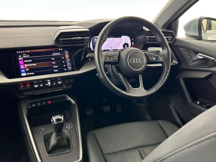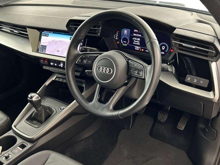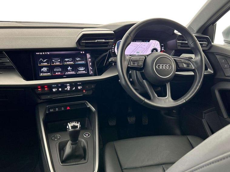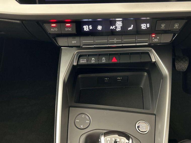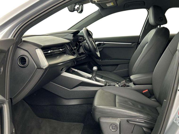 Audi connect emergency call and service, Audi drive select (Auto, Comfort, Dynamic, Efficiency and Individual), Audi smartphone interface, Audi Virtual Cockpit - 10.25" digital and colour instrument cluster, Automatic start/stop system with recuperation, Bluetooth interface, Collision avoidance assistant, Cruise control, Electromechanical power speed sensitive steering, Lane departure warning system, MMI Navigation Plus with high resolution 10.1" colour touch screen display, Rear parking sensors, Service indicator, Trip computer, Voice control system with natural language interaction, Standard suspension, 2xUSB-C connection with data and charging functions, 6 passive loudspeakers, DAB Digital radio, Acoustic glass windscreen, Aluminium window trim, Auto dimming frameless rear view mirror, Body colour roof spoiler, Electrically adjustable/heated/folding/auto dimming door mirrors with integrated LED indications + kerb view function for passenger side, Front electric windows, LED daytime running lights, Light and rain sensors, Rear electric windows, Rear window, rear door windows and rear side windows in clear glass, Rear wiper, 12V socket and storage compartment in front centre console, 40/20/40 split folding rear seat bench with cupholder, Dual zone electronic climate control, Front and rear centre armrest, Front and rear headrests, Front door sill trims with aluminium inlay, Front/rear floor mats, Height and reach adjustable steering wheel, Interior lighting - Front and rear roof module including reading lights, glove compartment light and right hand side, Luggage compartment floor covering, Manual boot compartment lid, Manually adjustable front seats, Seat side bolsters, Steel grey cloth headlining, Twin leather upholstery, Aluminium interior elements pack - A3 Sportback, Sport styling pack - A3 Sportback, 3x3 point rear seat belts, Driver and front passenger airbag with passenger airbag deactivation, Electronic Stabilisation Control (ESC) including ABS, ASR and EDL, First aid kit with warning triangle and 2 safety vests, Front side airbags with head airbags and interaction airbag, Hill hold assist, Pre-sense front with pedestrian and cyclist detection, Seatbelt monitoring, Tyre pressure loss indicator, Anti theft alarm, Anti-theft wheel bolts, Electronically operated child lock, Immobiliser, Remote control central locking, Inlays with silk effect paint in platinum grey,