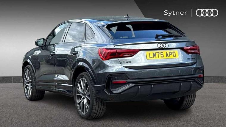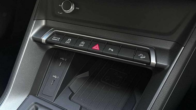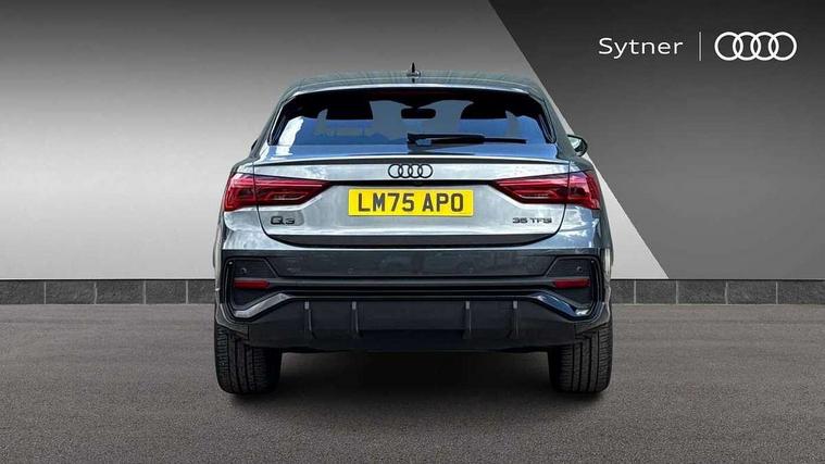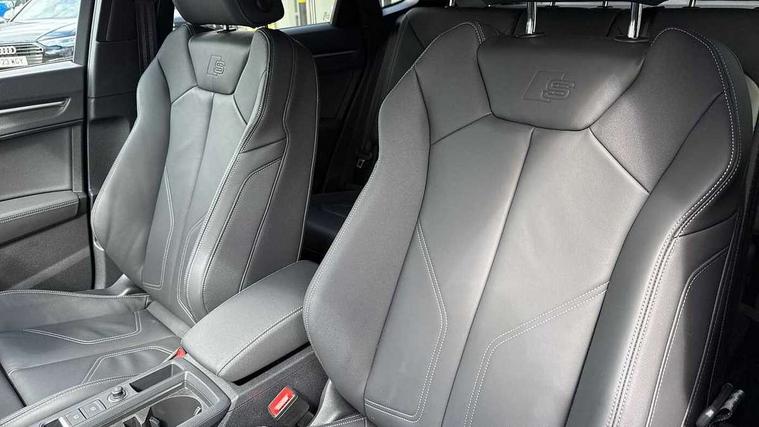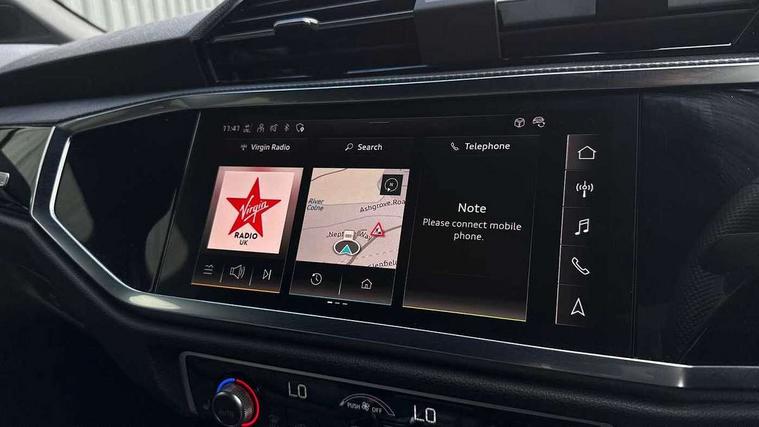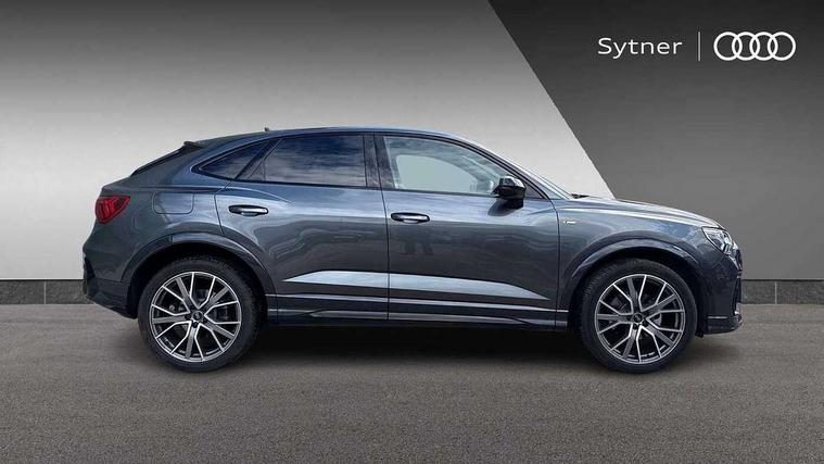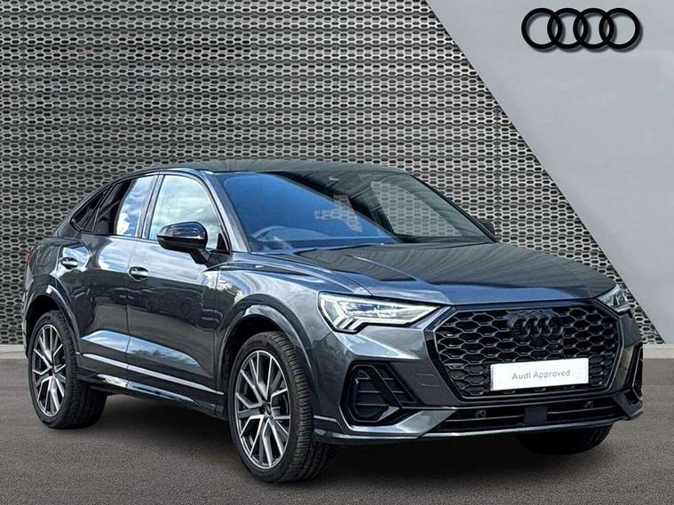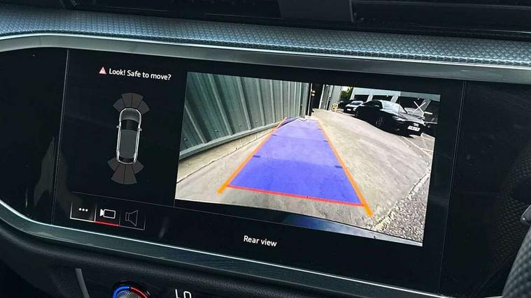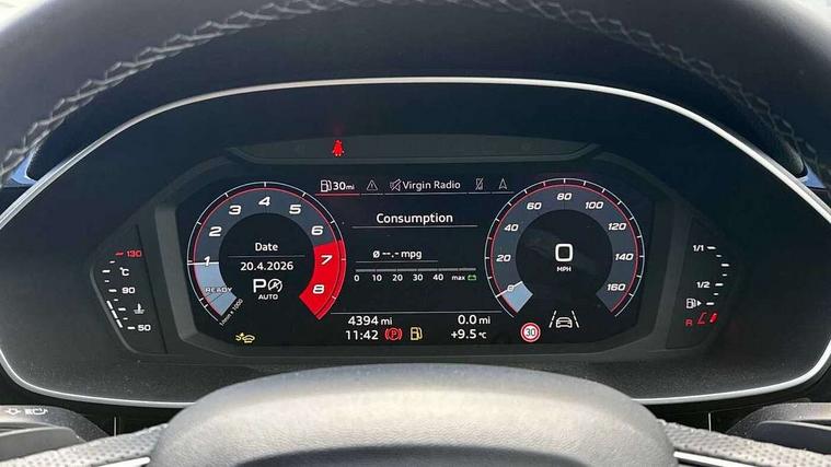Audi connect safety and service, Audi drive select, Audi lane departure warning, Audi Virtual Cockpit - 10.25" display, Bluetooth interface, Camera based traffic sign recognition, Distraction and Fatigue warning, Legal emergency call, MMI Navigation Plus with high resolution 10.1 inch touchscreen colour display, Power operated tailgate, Progressive steering, Service interval indicator, Smartphone interface includes wireless Apple carplay/Android Auto, Start stop system with recuperation, Voice control system with natural language interaction, Sports suspension, 2 USB-C ports with charge and data functions, 6 passive loudspeakers, DAB digital radio module, Acoustic windscreen, Audi Beam uses LEDs to project the Audi logo onto the ground as you exit your Q3, Auto dimming door mirrors, Auto dimming frameless rear view mirror, Electrically folding, adjustable and heated door mirrors with integrated LED side indicators and kerb view function for passenger side, Front and rear electric windows, Front fog lights, Front underbody protection in manhattan grey paint finish, High gloss black finish B and C pillars, Honeycomb design radiator grille in matt anthracite black, LED Dynamic rear indicators, LED headlights with LED daytime running lights, LED rear lights, LED third brake light, Privacy glass dark tinted rear and rear-side windows (from B-pillar backwards), Rain and light sensors, Rear diffuser grille in grained matt black, Rear diffuser strip in matt anthracite black, Rear side wing doors, Rear underbody protection in matt black, Rear wiper, S line front and rear bumpers and side skirts in contrasting Manhattan grey paint finish, Variable front intermittent wipers, 12V socket in rear centre console, 3 seat bench in 2nd row, 40:20:40 folding with manual adjustment for 60:40 forwards/backwards position and backrest angle, Adjustable rear seat bench/backrest with centre armrest and cupholder, Black carpet mats, Black cloth headlining, Dual zone electronic climate control, Electric lumbar support, Front and rear black floor mats with contrast stitching in rock grey, Front and rear headrests, Front centre armrest, Height and reach adjustable steering wheel, Illuminated door sill trims with S logo, ISOFIX child seat mounting for front passenger with airbag deactivation and outer rear seat including top tether attachment point for outer rear seats, Luggage compartment sill protection in stainless steel, Manual front seats with height adjustment, Perforated leather gearknob, Single front passenger seat, Stainless steel pedals, Twin leather upholstery with front sport seats + S embossing, Black styling pack - Q3, Non smoking pack - Q3, 3x3 point rear seatbelts, 6 airbags - Driver, front passenger, curtain and side windows, Audi pre-sense front with pedestrain and cyclist recognition, Electrically operated child locks on rear doors, Electromechanical parking brake, Electronic stabilisation control including ABS, ASR and EDL, Front seatbelt reminder, Hill descent control, Hill hold assist, Pre sense basic, Seatbelt monitoring, Tyre pressure warning, Warning triangle and first aid kit, Anti theft wheel bolts, Immobiliser, Remote central locking, Thatcham approved category 1 anti theft alarm, Aluminium look interior elements, Detail dashboard around MMI touch colour display in glass look, black with surround in aluminium look, Leatherette door armrest, Piano black inlay,