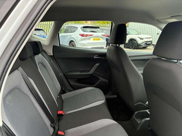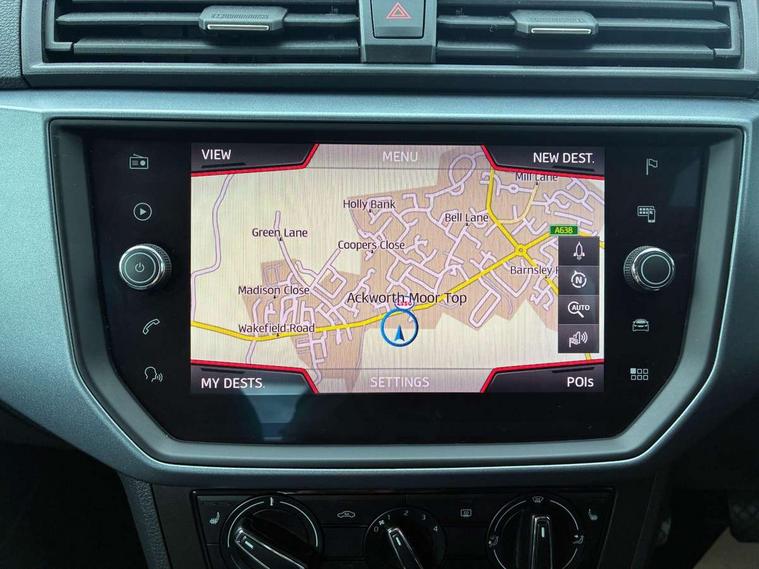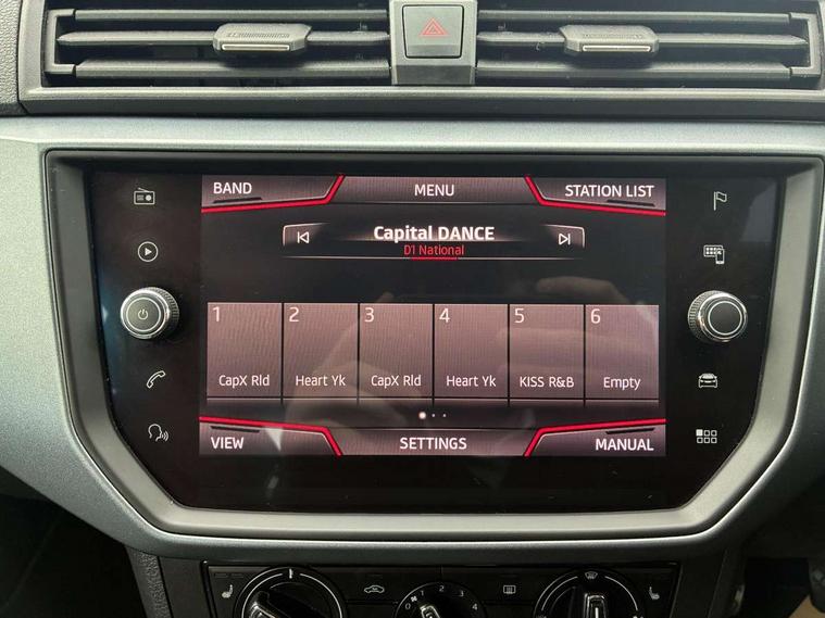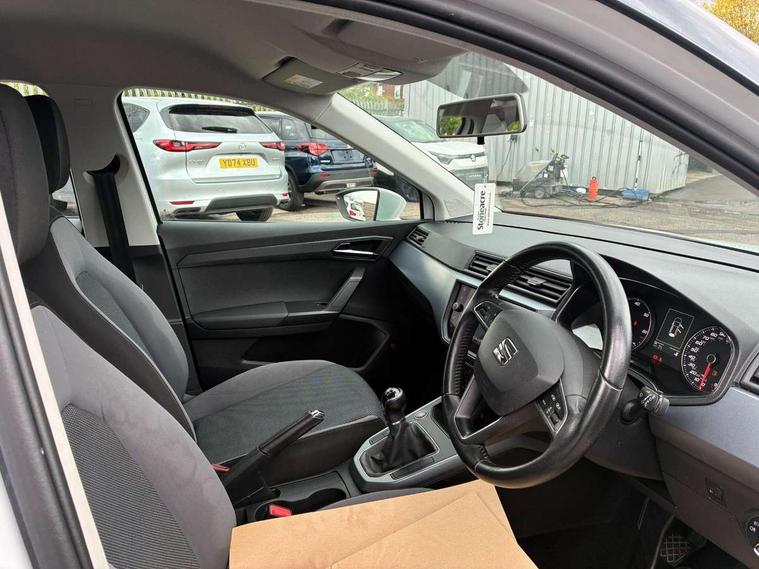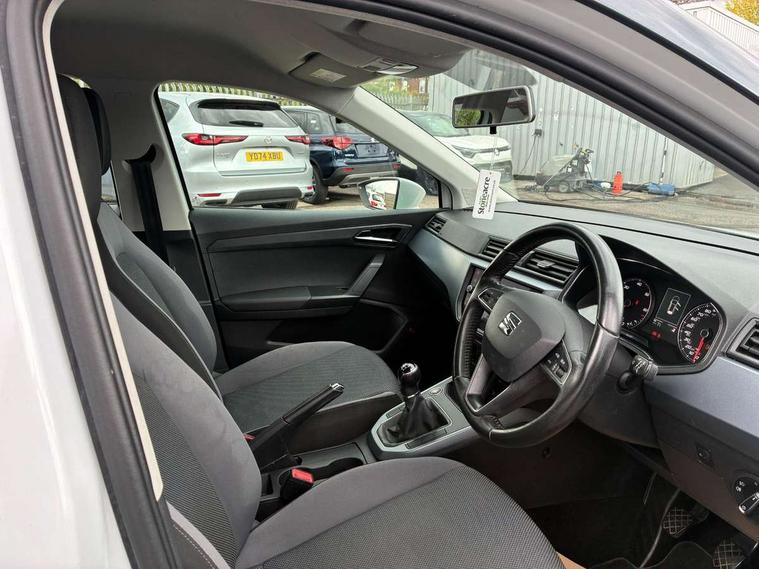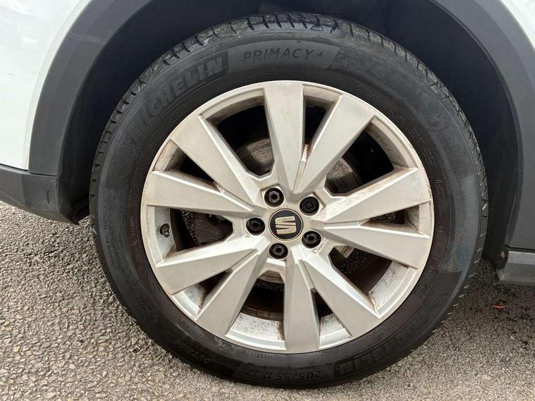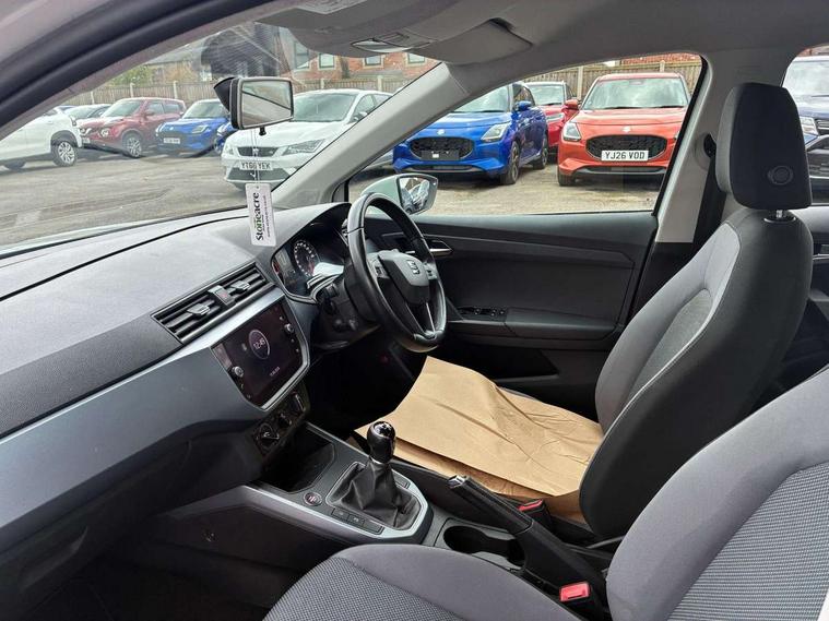 'Lights On' Reminder warning buzzer, Adaptive cruise control, Digital clock, Electric speed sensitive power steering, Front assistant collision mitigation, Full Link Smartphone Integration with Mirror Link, Apple Car Play, Google Android Auto, Low fuel warning light, Outside temperature display, Rear parking sensor, RPM counter, Trip computer, Comfort suspension, 6 speakers, Beats audio system, Bluetooth interface for hands free and audio streaming, DAB Digital radio, SEAT USB media cable, Steering wheel mounted audio controls, Anti theft roof antenna, Automatic activation of hazard warning lights, Automatic headlights, Black roof rails, Black window surrounds, Body coloured bumpers, Body coloured door handle inserts, Chrome grille surround, Electric adjustable door mirrors, Electric front/rear windows with one touch/auto up/down, Electric headlight adjustment, Front fog lights with static cornering function, Halogen headlights, Hidden exhaust pipe, LED daytime running lights, LED licence plate lighting, LED tail lights, Rear fog lights, Rear window wash/wipe, Visible VIN plate, Windshield wiper with intermittent control and potentiometer, 2 cupholders, 3 rear height adjustable headrests, 60/40 split folding rear seat, Active head restraints, Air conditioning, Ambient interior lighting, Card holder, Cloth upholstery, Double boot floor, Driver and passenger sunvisors, Driver/front passenger seat height adjustment, Dust/pollen filter, Footwell ambient lighting, Front courtesy lights, Front reading light, Gear shift indicator, Height/reach adjustable steering column, Illuminated boot, Instrument lighting with brightness control, Isofix attachments on outer rear seats, Leather handbrake, Leather steering wheel and gear knob, Connectivity pack plus - Arona, Winter pack - Arona, 3 point seatbelts on all rear seats, ABS+EBA, Child locks on rear doors, Driver/Front Passenger airbags, Electronic stability control, Front and rear seatbelt reminder, Front side/curtain airbags, Height adjustable active front headrests, Hill hold control + Tyre Pressure monitor, Multi-Collision braking, Passenger airbag deactivate switch, Tiredness recognition system, Traction control, 2 folding remote keys with window open/close function, Immobiliser, Keyless entry and start, Locking wheel bolts, Remote central locking + deadlocks, Interior chrome line trim, 17" Dynamic alloy wheels,