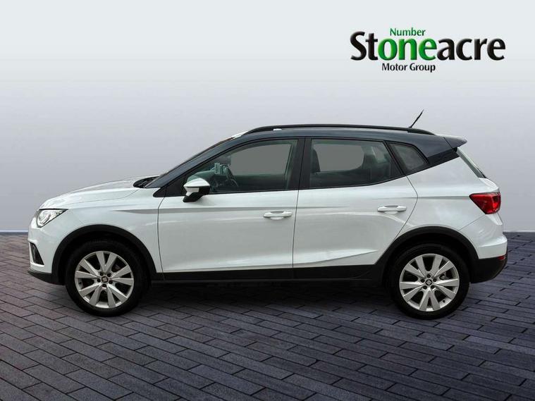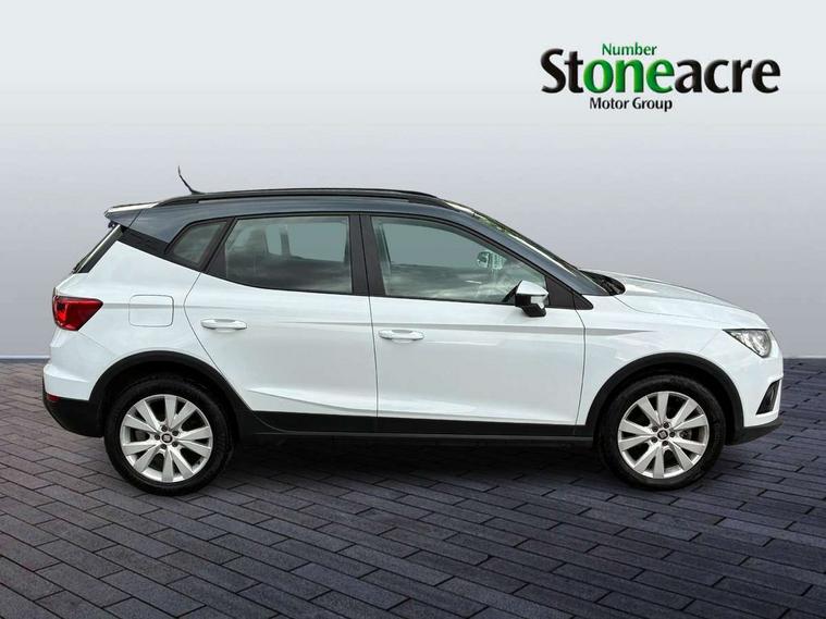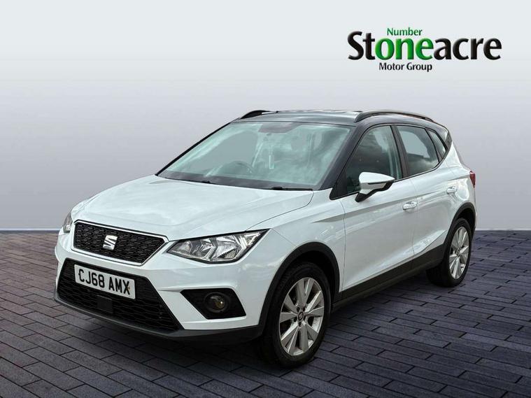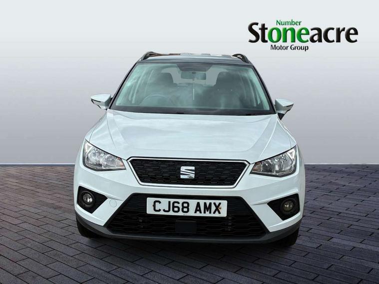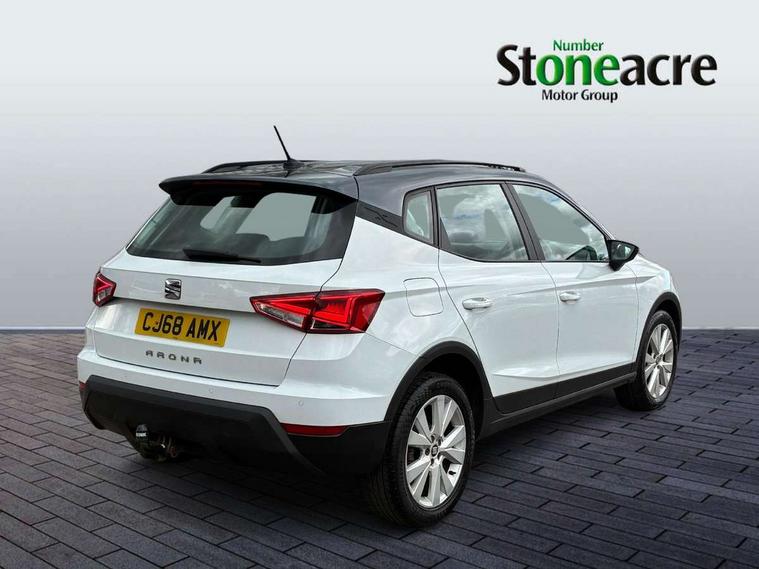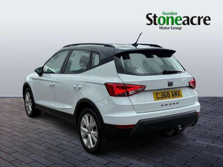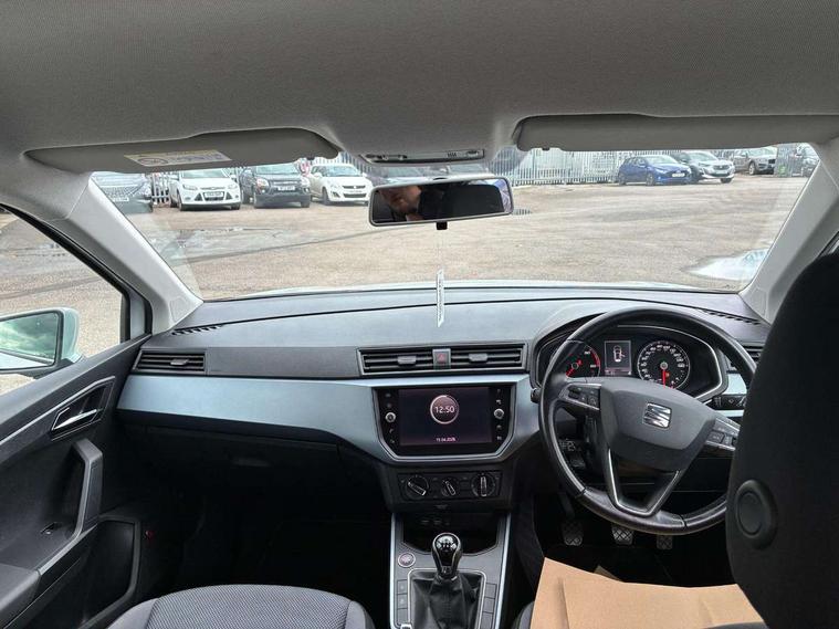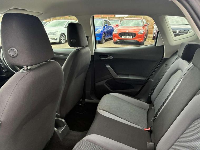 'Lights On' Reminder warning buzzer, Adaptive cruise control, Digital clock, Electric speed sensitive power steering, Front assistant collision mitigation, Full Link Smartphone Integration with Mirror Link, Apple Car Play, Google Android Auto, Low fuel warning light, Outside temperature display, Rear parking sensor, RPM counter, Trip computer, Comfort suspension, 6 speakers, Beats audio system, Bluetooth interface for hands free and audio streaming, DAB Digital radio, SEAT USB media cable, Steering wheel mounted audio controls, Anti theft roof antenna, Automatic activation of hazard warning lights, Automatic headlights, Black roof rails, Black window surrounds, Body coloured bumpers, Body coloured door handle inserts, Chrome grille surround, Electric adjustable door mirrors, Electric front/rear windows with one touch/auto up/down, Electric headlight adjustment, Front fog lights with static cornering function, Halogen headlights, Hidden exhaust pipe, LED daytime running lights, LED licence plate lighting, LED tail lights, Rear fog lights, Rear window wash/wipe, Visible VIN plate, Windshield wiper with intermittent control and potentiometer, 2 cupholders, 3 rear height adjustable headrests, 60/40 split folding rear seat, Active head restraints, Air conditioning, Ambient interior lighting, Card holder, Cloth upholstery, Double boot floor, Driver and passenger sunvisors, Driver/front passenger seat height adjustment, Dust/pollen filter, Footwell ambient lighting, Front courtesy lights, Front reading light, Gear shift indicator, Height/reach adjustable steering column, Illuminated boot, Instrument lighting with brightness control, Isofix attachments on outer rear seats, Leather handbrake, Leather steering wheel and gear knob, Connectivity pack plus - Arona, Winter pack - Arona, 3 point seatbelts on all rear seats, ABS+EBA, Child locks on rear doors, Driver/Front Passenger airbags, Electronic stability control, Front and rear seatbelt reminder, Front side/curtain airbags, Height adjustable active front headrests, Hill hold control + Tyre Pressure monitor, Multi-Collision braking, Passenger airbag deactivate switch, Tiredness recognition system, Traction control, 2 folding remote keys with window open/close function, Immobiliser, Keyless entry and start, Locking wheel bolts, Remote central locking + deadlocks, Interior chrome line trim, 17" Dynamic alloy wheels,