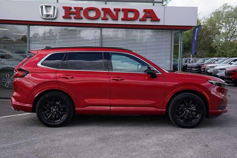 10.2" Multi information display, 4 x front 4 x rear 4 x side parking sensors, Active lane change assist, Adaptive cruise control with Cornering speed assist, Adjustable speed limiter, Agile handling assist, BLIS (Blind Spot Information System) with Cross Traffic Monitor, Bluetooth hands free telephone connection, Crossing traffic warning front, Drive Mode (EV, Econ, Sport, Normal, Snow, Tow), Driver attention monitoring system, E-call, eCall emergency call system, Electric power steering, Emergency stop signalling system, Forward collision warning, Handfree power tailgate with kick sensor and walk away close, Head up Display, HEV mode, Honda 360 sensing, Honda CONNECT navigation with My Honda+ 9" touchscreen, AM/FM/DAB, Apple Carplay and Android Auto, live traffic info, Honda parking pilot, Intelligent speed limiter, Lane change collision mitigation, Lane departure warning system, Lane keep assist system, Lane watch, Lead car departure notification system, Low speed following, Power meter, Road departure mitigation, Traffic jam assist, Traffic sign recognition, Wireless apple carplay, Wireless charging, Adaptive performance damper, Vehicle stability assist, 12 speakers, 1X USB (A/2.5A) and 1x Charger (C/3A) on Front, Bose premium sound system, Centre speakers, DAB+ radio, Dashboard centre speaker, Front tweeters, Rear USB 2x Charger (C/3A), Steering wheel mounted controls, Subwoofer, Active cornering lights, Adaptive driving beam, Auto dimming rear view mirror, Auto headlight adjuster, Auto headlights, Auto wipers, Black door mirror caps, Black paint + exculsive grille, Black Shark-fin antenna, Body colour bumpers, Body colour door handles, Body colour plus black colour roof spoiler, Electrically adjustable and heated door mirrors, Electrically folding door mirrors, Exhaust pipe finisher, Exterior mirror tilt for reverse, Front and rear electric windows, Front LED Indicator lights, Front turn type led with sequential, Headlight auto on/off timer, High gloss black window garnish, LED 3rd brake light, LED daytime running lights, LED front fog lights, LED Headlights, LED rear lights, Multi view camera system in door mirrors, Panoramic opening glass sunroof, Privacy glass, Rain sensor, Rear side wing doors, Rear wiper, Roof rails, Trailer stability assist, Welcome home function, 3 seat bench in 2nd row, 4 way driver lumbar support, 4 way electrically adjustable passenger seat without height adjust, 60/40 split folding rear seat, 8 way electrically adjustable drivers seat + mirror memory, Accessory sockets in Front & Trunk, Air conditioning - Rear vent, Ambient light in roof, Cargo net hooks, Courtesy lights, Dark roof lining, Driver and front passenger seat armrests, Driver/passenger front seatback pockets, Driver/passenger sunvisors and vanity mirrors, Driver/passenger sunvisors with illuminated vanity mirrors, Dual zone automatic climate control, Film layered honeycomb metal interior panels, Footwell ambient interior light front and rear, Front and rear ambient light (door handle&door line) and front cup holder, Front centre armrest, Front map lights, Front ventilated seats, Genuine leather steering wheel, Heated front seats, Heated rear seats, Heated steering wheel, Hybrid emblem, I-Size ISO Fix Points, Instrument panel with garnish wood film, Leather upholstery, Luggage floor box, Meter illumination, Platinum chrome interior door handles, Rear centre armrest, Rear headrests, Rear reading lights, Reclining rear seats, Single front passenger seat, Sport pedals, Sunglasses holder with mirror, Synthetic headrest, Tilt/telescopic adjustable steering wheel, Tonneau cover, Trunk light, Exclusive styling with sport paint pack - CR-V, 5 x 3 point seatbelts, ABS/EBD, Anti-whiplash front headrests, Brake assist function, Collision mitigation braking system, Deflation detection system, Driver airbag, Driver SRS airbag (single stage inflation), Electronic parking brake with auto hold, Front and rear collision mitigation throttle control, Front and rear curtain airbags, Front and rear seat belts with emergency locking retractor (ELR), Front centre airbag, Front passenger airbag, Front side airbags, Hill descent control, Hill start assist, Knee airbags (DR) and (AS), Low speed brake system, Manual child lock in rear doors, Paddle deceleration control, Passenger SRS airbag with cut off switch, Rear side airbags, Honda super locks, Immobiliser, Mirrors and windows key fob operation, Remote central locking with 2 key fobs, Security alarm, Selectable door unlock, Smart entry + Smart start, Tilt sensors, Ultrasonic security sensor, Flat tyre solution temper tyre/repair kit,