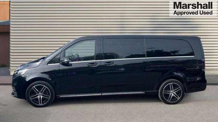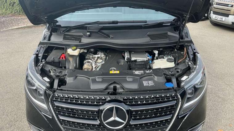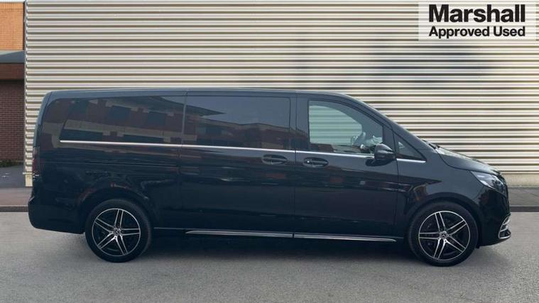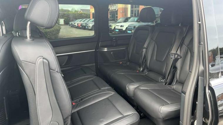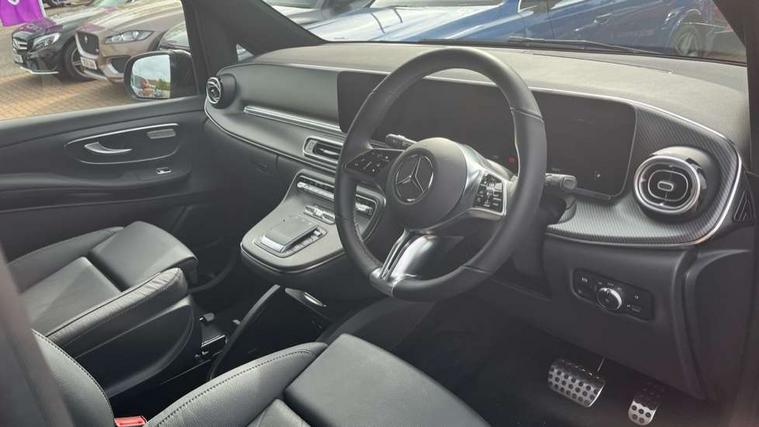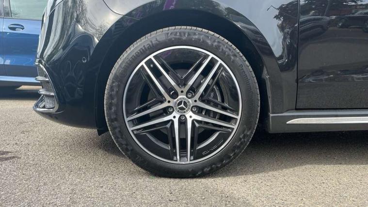 10.25" media display, Active distance assist DISTRONIC, Active lane keeping assist, Agility select with a choice of driving modes (Comfort, ECO, Sport, Individual), Attention assist, Blind spot assist, Comfort closure incl. boot, Crosswind Assist, Cruise control, Direct steer speed sensitive steering, e-Call (emergency call), ECO start/stop function, Intelligent speed assistance, MBUX navigation with 2 x 12.3" widescreen cockpit display with touchscreen, Mercedes me connect, Service indicator assist, Sidewind assist system, Status display for rear seat belts in instrument cluster, Traffic sign assist, Wireless charging for smartphone, 57 litre fuel tank, 9G TRONIC automatic transmission, Absorbed glass mat battery 12 V 92 Ah, 2 USB ports and one SD card slot centre console, 2-way speakers in the front and rear, DAB radio, Frontbass loudspeakers, Adaptive brake lights, Automatic lights, H7 reflection-type headlamps, Heat-insulating windows all round, Heated exterior mirrors, electrically adjustable, with integral indicator lamp, Illuminated exits, Illuminated mirror for sun visor, LED DRL, LED tail lamps/brake lamps and indicators, Multibeam LED headlights with adaptive highbeam assist plus, Privacy glass, Rain sensing windscreen wipers, Separately opening rear window, Tailgate surround lighting, Window in tailgate with wash and wipe system, 3 seat bench in 2nd row, 3 seat bench in 3rd row, Air conditioning - semi-automatic, TEMPMATIC in rear, Ambience lighting 64 colours cockpit + rear passenger compartment, Armrests for seating in the passenger compartment, Carpeting in rear passenger compartment, Centre console with storage/cupholders, Comfort drivers seat, Comfort overhead control panel, Front and rear footwell lighting, Hot air duct to the passenger compartment, Illuminated grab handle with reading light, Lighting in the rear grab handles, Lugano leather upholstery, Lumbar support for driver's and front passengers seat, Multifunction 3-spoke leather steering wheel with touch controls, adjustable in inclination and height, Reach and rake adjustable steering column, Rear head restraints, Single front passenger seat, Stowage nets behind individual seats, THERMOTRONIC automatic climate control, Touchpad, Aerodynamics package - V class, AMG Line package - V class Premium, Comfort seat package - V class, Electric package - V class, Mirror package - V class, Navigation package - V class, Parking package with 360 degree camera - V class, Smartphone integration package - V class, Winter package - V class, 3 point seatbelts on all seats, ABS, Active brake assist, Automatic front passenger airbag deactivation, Centre airbag, Child safety locks in passenger compartment doors, CO2-optimised brake system, Driver and front passenger thorax/pelvis side airbags, Dual airbags for driver and front passenger, Electric parking brake, ESP, Hill start assist, Pedestrian protection, Pre safe, Rear seat belt pretensioners, Seat belt warning device for front passenger seat and rear seats, Seat occupancy sensor, Tyre pressure monitoring system, Window airbags for driver, front passenger and rear passenger, Keyless start, Full wheel covers, Summer and comfort tyres,