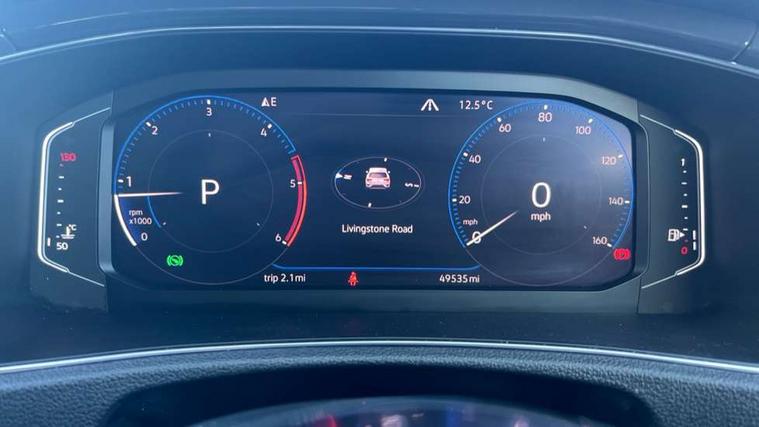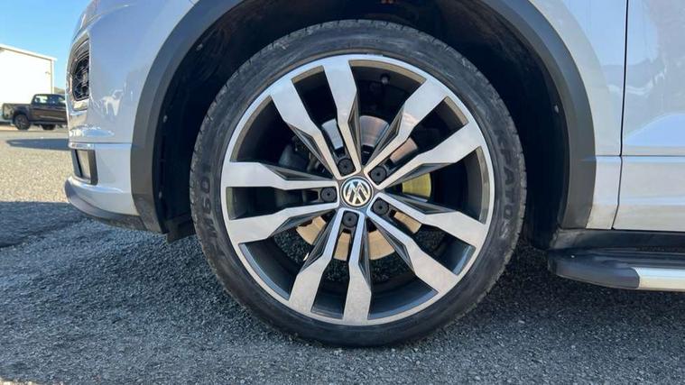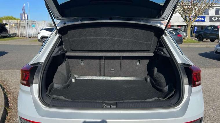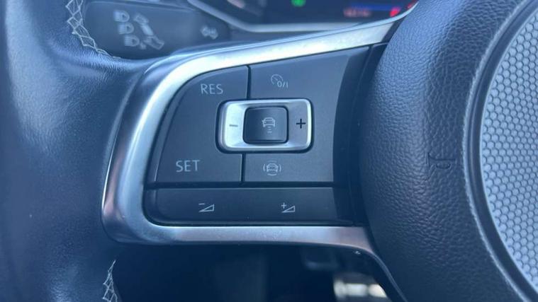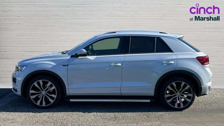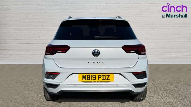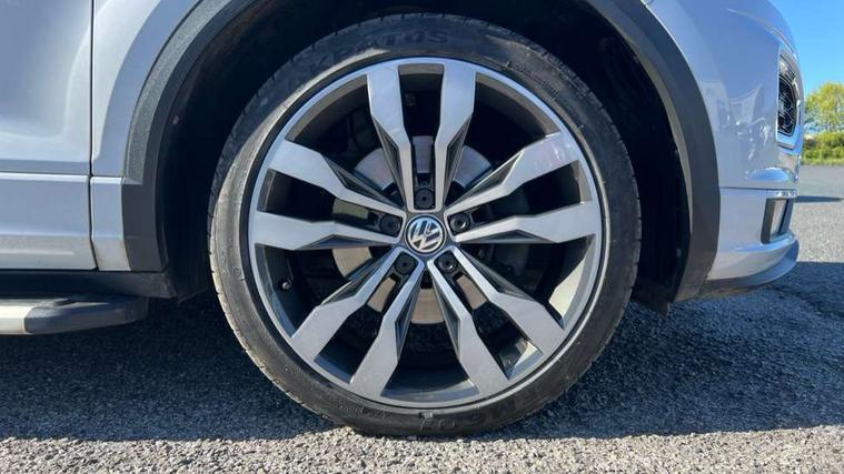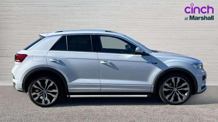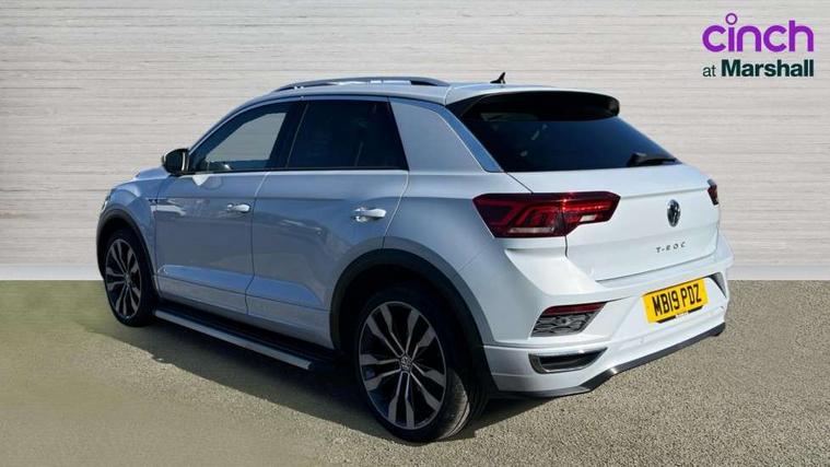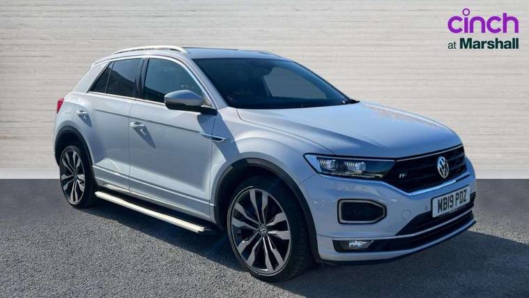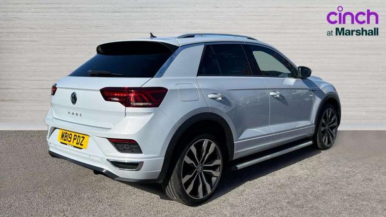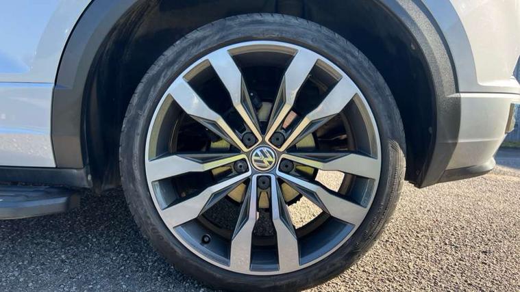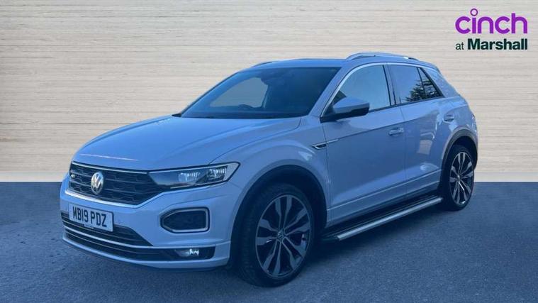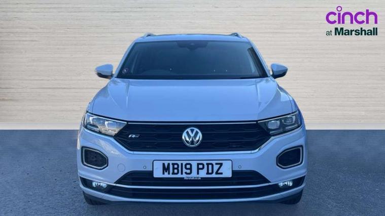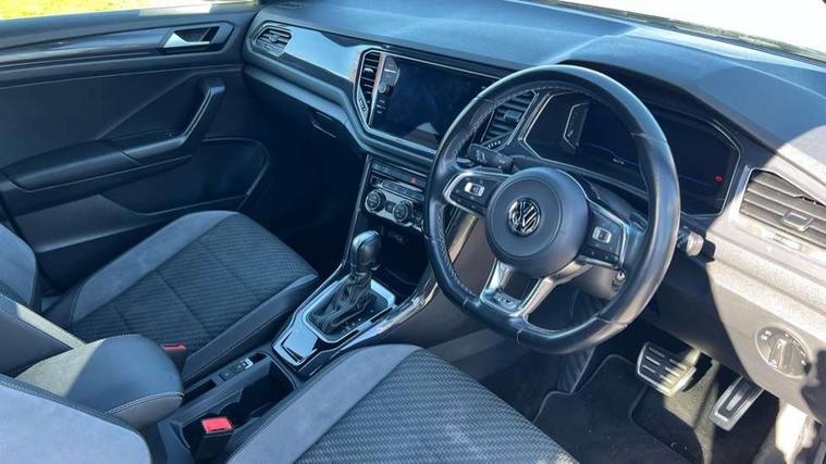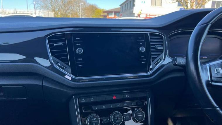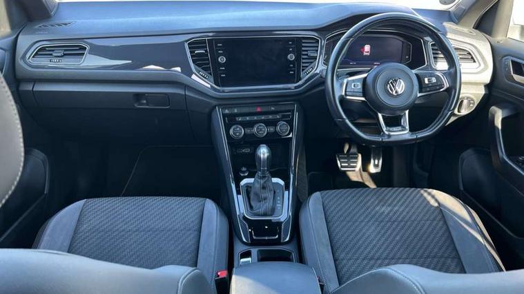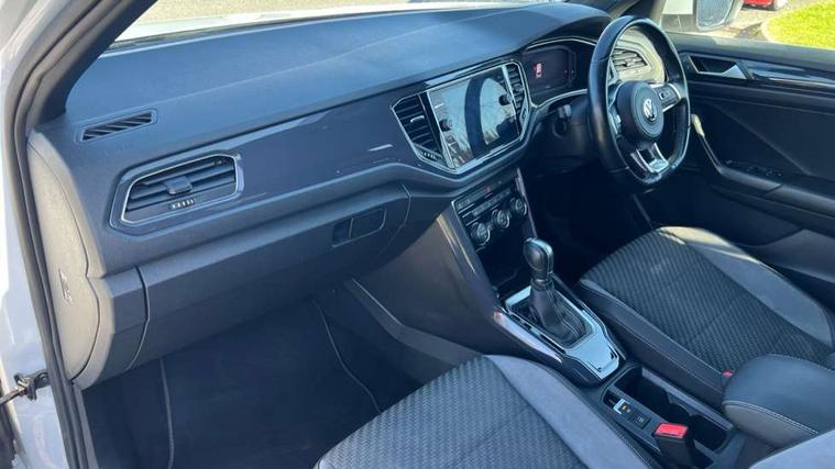 App-Connect, 2 USB connection charging sockets, Active Info Display, 10.3" high resolution TFT dash display screen with customised information, Adaptive cruise control, Automatic start/stop system, Bluetooth telephone and audio connection for compatible devices, Car information display, Car-Net Security and Service, Discover navigation, 8" touch screen navigation/infotainment system with Car-Net, European map, CD/radio, 2D/3D map and speed limiter, Driver alert system with audible and visual fatigue detection system, Driver profile selection, Dusk sensor, Front assist, radar sensor controlled distance monitor, city emergency braking + predictive pedestrian protection, Lane assist, Multifunction computer with visual gear change recommendation for fuel consumption, Progressive power assisted steering, Service interval indicator, Think blue trainer driver tips and journey analysis, Voice activation, Warning sound and light for doors and tailgate open, Warning sound and light for front seatbelts unfastened, Battery regeneration during braking, Misfuel prevention device for diesel engine, Bluetooth - Simultaneous pairing of 2 compatible mobile devices, DAB Digital radio, Dynamic navigation based on TMC+, Multi device interface (MDI) with USB connection, Music playback - MP3, WMA and AAC files, Premium USB cable in choice of either Apple or Android smartphone compatibility, SD card slot, SMS functionality - read, compose and send SMS messages using touch-screen display, Three route options - Fast, Short, Eco, Title and cover art display, Auto dimming interior rear view mirror, Automatic hazard lights activation under emergency braking, Black grained lower door protectors, Black grained wheel arches, Body colour door handles, Body colour rear roof spoiler, Chrome effect left and right trapezoid exhaust tailpipe fascia surround, Chrome trim on upper and lower radiator grille, Door mirror integrated indicators, Electrically foldable, adjustable and heated door mirrors with puddle lights and reverse activated kerb-view adjustment on passenger's door mirror, Front and rear electric windows, Front fog lights with static cornering function, Front windscreen wiper with intermittent wipe and 4 position delay, Fully galvanised body, Heated rear window, High level 3rd brake light, LED darkened rear light clusters, LED rear number plate lights, Manual coming/automatic leaving home lighting function, Rain sensor, Rear tinted glass from B-pillar backwards approx 65% tinted, Rear windscreen washer and wiper with interval delay, 12V socket in centre console storage area, 2 LED front and rear reading lights, 3 rear head restraints, 4 load lashing points in luggage compartment, Aluminium pedals, Ambient lighting in front footwell and light strips below trim in front doors, Black decorative sleeve on gear handles, Black roof lining and sun visors, Carbon flag cloth upholstery, Climate control - 2 zone electronic air conditioning with automatic air recirculation and allergy filter, Drawer under drivers seat, Front + rear carpet mats, Front centre armrest with storage compartment, longitudinal and height adjustable and two rear air vents, Front cupholders x 2, Front footwell illumination, Front seat back storage pockets, Front sport seats, Glovebox, Height adjustable front seats, Height/reach adjust steering wheel, Illuminated vanity mirrors, Instrument lighting, white adjustable panel illumination, Interior light delay, Isofix easy fit child seat preparation for 2 outer rear seats, Load through provision with single cup holder when folded down, Luggage compartment cover, removable, Luggage compartment lighting, R Line badge, Split folding rear seat backrests with centre armrest, Storage compartment in left and right luggage area, Storage compartment in rear doors, Storage compartments in driver and front passenger doors, Three spoke multi function leather trimmed steering wheel and gear knob including paddle shift, Unique R Line door sill protectors, R line styling pack - T-Roc, Winter pack - T-Roc, 3 rear three point seatbelts, ABS, Driver and front passenger safety-optimised head restraints, Electronic parking brake with auto hold, ESC with EDL, ASR, EDTC and trailer stabilisation function, Front and rear curtain airbags, driver and front passenger airbags with passenger deactivation switch and front side impact airbags, Rigid safety cell with front and rear crumple zones, Three point height adjust front seatbelts + pretensioners, Tyre pressure loss indicator, Ventilated front and rear disc brakes, Volkswagen roadside assistance, Alarm with remote central locking and interior protection, Electronic engine immobiliser, Remote central locking with 2 remote folding keys, Shadow steel decorative inserts in dash and door panel, 19" Suzuka alloy wheels with low rolling resistance tyres and anti wheel bolts, Steel space saver spare wheel,
