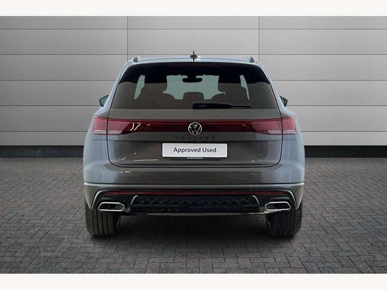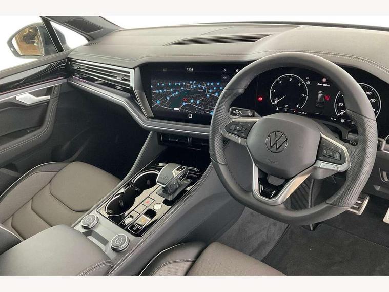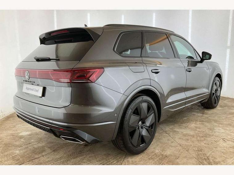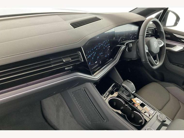 2 x Front USB-C ports, 2 x USB-C charging sockets on the centre console in the rear, charging capacity up to 45W, Adaptive cruise control, Advanced driver attention and drowsiness monitor, Digital cockpit with 12" high resolution dash display screen with customisable menus and information, Driver profile selection, Dynamic road sign display, E-Sim card for online connectivity, eCall emergency system, Innovision cockpit, Intelligent park assist, Mobile phone interface with inductive charging, Multi-colour Active Info display, Park Assist - Sensor controlled steering aid to assist parallel or bay parking, PAS, Power latching doors, Warning signal and warning light for front and rear seatbelts not fastened, Wireless app connect, 90 litre fuel tank, Adaptive chassis control, Air suspension with auto self leveling suspension, height adjustment and electronic shock absorption control, DAB Digital radio, Diversity antenna for AM/ FM reception, We Connect and We Connect Plus functionality, Automatic coming/leaving home lighting function, Automatic headlights, Black door mirrors, Black roof rails, Black style comfort bumpers, Dynamic headlight range control with dynamic cornering light, Electric front tilt/slide panoramic sunroof and fixed rear sunroof, Electrically power adjustable, heated, folding, auto dimming, front passenger exterior door mirror lowering function, Final edition lettering, HD LED Matrix beam plus digital headlight projection with variable light distribution, Headlight washers, Heat insulating darkened glass in side and rear windows, Highway light, Illuminated door sill protectors in stainless steel, LED 3rd brake light, LED daytime running lights, LED rear combination lamp with variable lighting functions and special styling, Poor weather light, Privacy glass for rear side windows and rear window, tinted glass from B pillar backwards - 80%, Rain sensor, Rear exhaust tailpipe, Rear fog light with back up light on both sides, Rear light bar and illuminated logo, Rear side wing doors, Rear wiper, Tow bar power folding with trailer assist, Transport protection, 12V socket in centre console, 3 rear headrests, 3 seat bench in 2nd row, 30 colours options interior ambient lighting, 4 zone climate control, Airbag label on sun visor and B-pillar, Black roof lining, Brushed stainless steel pedals, Door and side trim panel, Double sun visors with illuminated vanity mirrors, Front + rear carpet mats, Front centre armrest, Inserts and bolsters of front seats and outer rear seats in leather Varenna, Isofix child seat preparation easy-fit (for two outer rear seats) compatible with I-size, Leather wrapped multifunction sports steering wheel, heated, with touch control and shift paddles, Mechanical rear seat release, Power adjustable lumbar support in front, Power seats in front, right side with memory features and seat cushion depth adjustment, Rear seat backrest and split folding with center armrest, Single front passenger seat, Varenna leather upholstery, Extra acoustics pack - Touareg, Memory pack plus - Touareg, 3 point seatbelts, outer rear with ECE lable, ABS, Automatic slip control electronic differential lock, Child locks on rear doors, Curtain airbags, Driver and front passenger safety-optimised head restraints, Driver/Front Passenger airbags, Electronic parking brake with auto hold function, Extended pedestrian protection measures, Front assist, Front seat side impact airbags, Generative braking with start and stop system, Height adjustable 3 point front seatbelts with pre tensioners, Passenger airbag deactivate switch, Three 3 point rear seatbelts, Two tone horn, Warning triangle and first aid kit, Alarm system with interior protection, Easy open and close sensor controlled luggage compartment opening and closing with remote unlocking, Keyless Access Keyless locking and starting system with SAFELOCK, Aluminium decorative inserts, Black decorative trims, Gloss black decorative inserts in centre console,