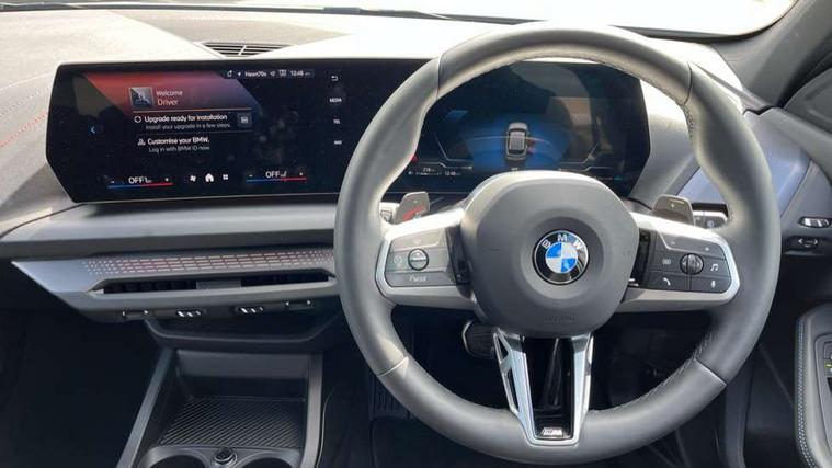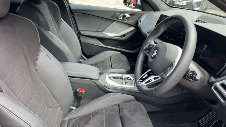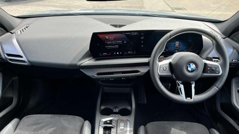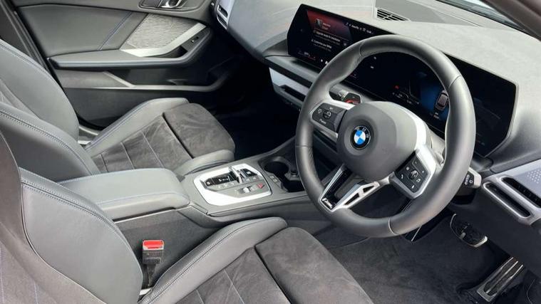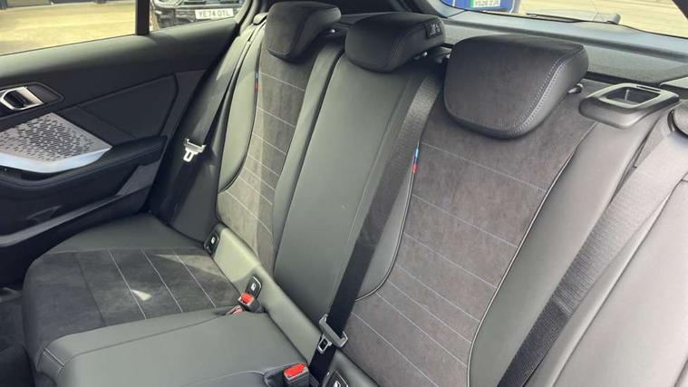 Active guard plus, Attentiveness assist, Bluetooth / WiFi interface for wireless connection of mobile terminal devices and audio streaming, BMW ConnectedDrive online services, BMW Live cockpit plus, BMW Teleservices, Check Control warning system for monitoring of lights and door/luggage compartment open warning, Eco pro mode, Electric power steering with Servotronic steering optimised at all speed ranges, Evasion assistant, Flat airvents in instrument panel with adjustable slats, Front and rear parking sensors, Front axle single joint with specific axle kinematics to minimise drive influences on steering + provide increased rigidity agile driving behaviour, Gearshift time display in manual mode, Integrated owners handbook, Left turn warning with brake function, My modes (Personal / Efficient / Sport), Oil sensor for level and grade, On board computer, Optimum shift indicator, Park assist including reversing assistant, lateral parking aid and reversing assist camera, Personal e-SIM, Personal Profile, Pull away assistant, Rigidly mounted rear subframe - Multi link construction with separate spring / damper configuration and excellent driving characteristics, Speed limit Info including no-overtaking indicator, Speed limiter, 49 litre fuel tank, Aluminium lightweight construction, Anti roll bar front and rear, Balancer shaft, Double VANOS twin scroll turbocharging system, Drive Performance Control, Electronic differential lock, Electronic selector lever, High precision injection, M Adaptive suspension, Petrol Particulate Filter, Steptronic transmission with double clutch, Twin tube gas filled shock absorbers with degressive characteristic curve, VALVETRONIC engine management, DAB Digital radio, Auto dimming rear view mirror, Automatic windscreen wipers and automatic headlight, Body colour door handles, Body colour roof trims, Chrome 'M' logo side designation, Chrome exhaust twin tailpipes round 90mm in left, Chrome kidney grille frame with Satin Aluminium struts, Direction indicator side lights in exterior mirrors, Electrically adjustable exterior mirror with mirror adjustment switch on drivers armrest and aspheric on driver side, convex on passenger side, Exterior M sport design elements, Fading support, Folding side mirrors with auto dimming/folding wing mirrors with auto dimming, Follow me home headlights, Front and rear bumper system with replaceable deformation elements, Front and rear electric windows with open and close fingertip control, anti trap facility and comfort closing, Front bumper panel with M specific design in vehicle colour with inserts in black high gloss, Front door sill finishers in black plastic with M designation in metallic look, Green tinted heat protection glazing, Heated rear window, High gloss black exterior mirrors, High gloss shadowline window frame, Recess cover mirror frames and B/C pillar embelisher trim, High level third brake light, Integrated front windscreen with washer jets, LED daytime running lights, LED eyebrow turn indicators, LED front fog lights, LED Headlights, Lightweight engineering, Matt black air guide grilles, Matt black wheel arch trim, Model badge on tailgate right, Nearside reverse light in rear light cluster, Preparation for high beam assistant, Rain sensor, Rear bumper panel with M-specific design in vehicle colour with inserts in black high gloss, Rear fog lights, Rear side wing doors, Rear window wiper, Shark fin antenna, Side sill covers with M specific design in body colour, Trailer stabilisation logic, Visible VIN plate, Welcome lighting, 12V power socket in front centre console with blanking plug, 3 rear seat head restraints, 3 seat bench in 2nd row, 3 spoke sports leather steering wheel with black leather and stitching, pearl chrome decorative finish, specific M Badge, Anthracite front and rear floor mats, Anthracite headlining, Black boot net with lashing eyes, Cargo function on 2nd seat row, Child seat ISOFIX attachment for two outer rear seats and front passenger seat with anchorage points, Conditioned based service, Driver and front passenger backrest net on rear, Driver and front passenger seat heating, Driver side folding compartment in instrument panel, Folding rear clothes hook, Footrest and pedals in black plastic, Four grab handles integrated in roof lining, Front and rear door pockets with bottle holders, Front and rear side armrest integrated into door trim, Front armrest with storage compartment, Gearshift paddles on steering wheel, Glove compartment, Height adjustable front head restraints, Luggage compartment for bag hooks on left and right, foldable luggage compartment liner and four lashing eyelets, Manual adjust steering wheel, Multi-function controls for steering wheel, Rear seat backrest with manual 60:40 split folding with 3 top tether clips integrated on rear of seat panels, Single front passenger seat, Storage compartment in centre console, Storage compartment in luggage compartment, Stowage of the parcel shelf in luggage compartment trim, Sun visors with vanity mirrors and insert tab, Two front centre console cupholders, Type C two USB ports in rear centre console, Upper retaining strap integrated into backrest rear panels, Connected pack professional - 1 Series, Interior lights pack - 1 Series, M Sport exterior styling aerodynamics pack - 1 Series, 2 tone horn, 3 point seatbelts on all seats, front pyrotechnic belt tensioners, stopper and belt force limiters, rear coded belt buckles, Airbags - Front driver/passenger, front and rear curtain head protection, front side, manual deactivation of front passenger airbag, Anti lock braking system (ABS) with brake assist, BMW emergency call, Brake drying, Braking readiness, Child proof locking system in rear door, Comfort modes, Cornering brake control, Crash sensor activating of airbags, Unlocking doors, hazard warning lights, interior light, safety battery terminal, Driver and front passenger seat belt security check, Dynamic stability control + (DSC+), Dynamic