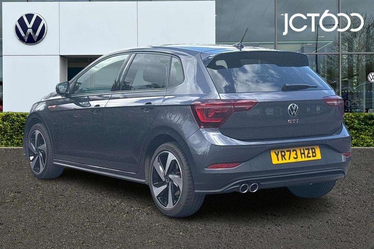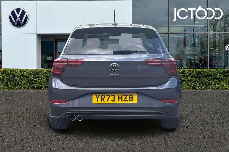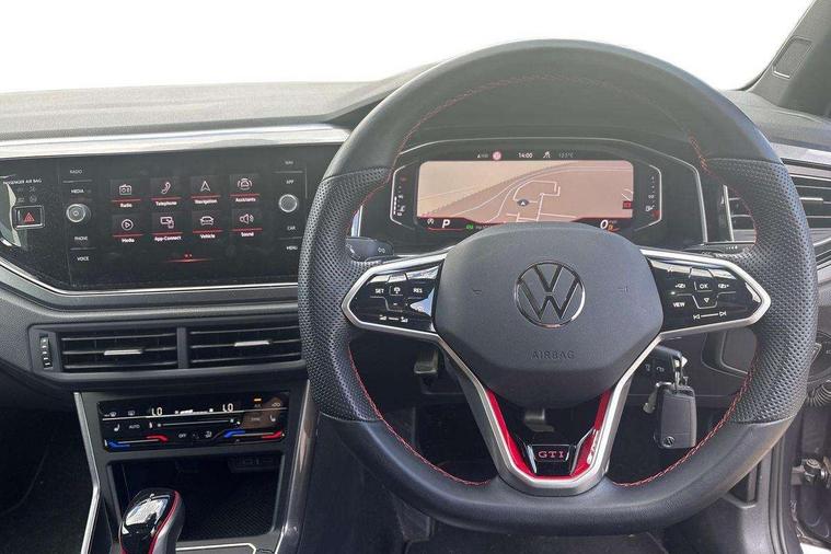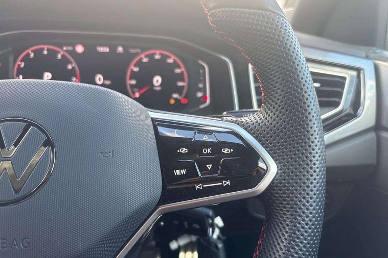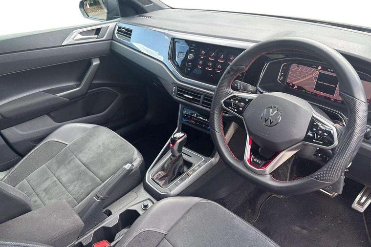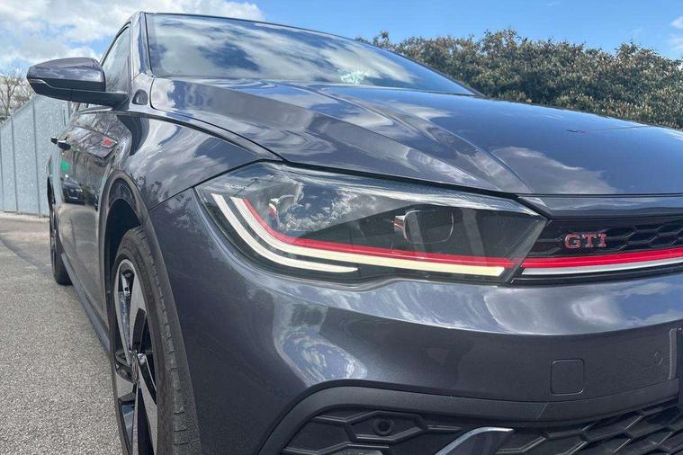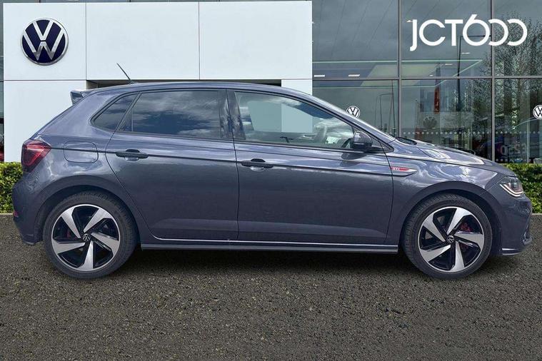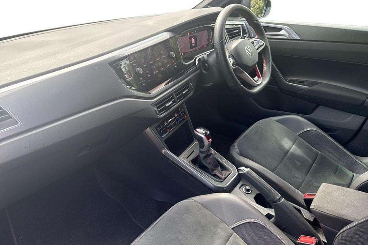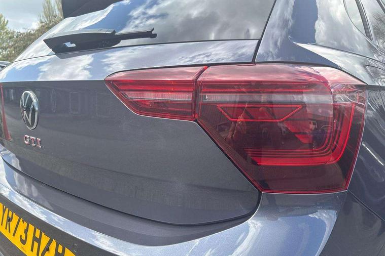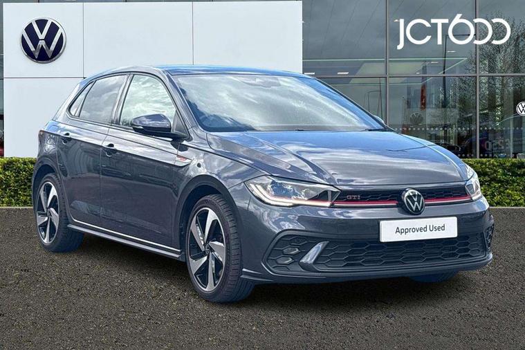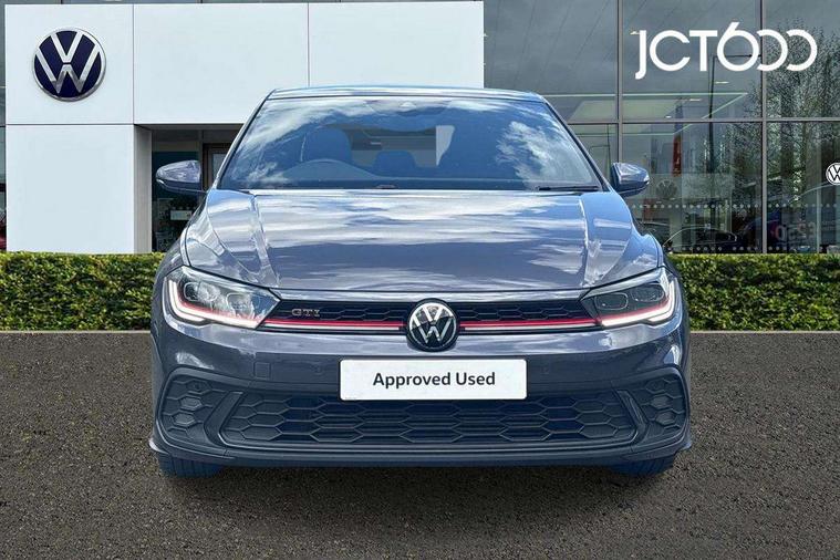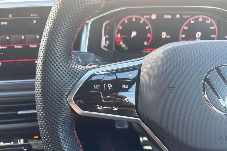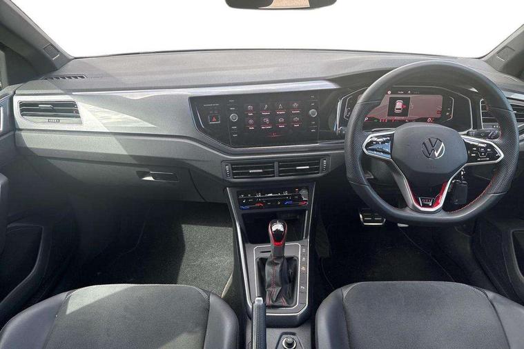 Adaptive cruise control with follow-to-stop and speed limiter, Bluetooth mobile phone interface, Digital Cockpit Pro with 10.25" Display, Driver alert system, Dynamic road sign display, Eco mode, Emergency call service, Power assisted speed sensitive steering, Preparation for We connect and We connect plus, Speedo and rev counter, electronic odometer, trip, service interval display and fuel gauge, Travel Assist - Lane keeping system and traffic jam assist, Travel assist including emergency assist, Trip computer, Warning signal and warning light for front and rear seatbelts not fastened, Washer fluid level indicator, Wireless app connect, Adaptive chassis control, Front wheel drive, Heavy duty rear axle, Rear shock absorpion sports version, Sports select suspension lowered by 15mm, Start-stop system with battery regeneration (recuperation - energy recovery during braking), DAB Digital radio, Diversity antenna for FM reception, Front and rear 6 speakers, Body colour bumpers, Body colour door handles, Electric front windows, Front scuff plates in aluminium with GTI logo, Heat insulating darkened glass in side and rear windows, Heat insulating glass windscreen, Power folding adjustable/heated exterior mirrors and front passenger exterior mirror lowering function, Rain sensor, Rear electric windows, Rear fog light, Rear side wing doors, Rear windscreen washer and wiper with interval delay, Sport bumpers with air intakes with honeycomb structure, Third brake light, Twin chrome exhaust tailpipes, 12V power socket in centre console, 2 USB-C ports in the front, 2 USB-C charging sockets on the center console in the rear, 3 rear head restraints, 60/40 split folding rear seat and rear seat bench not split, Air care climatronic air conditoning system with active combination filter and 2-zone temperature control, Black roof lining, Chrome plated radiator grille inserts, air vent surrounds and light switch surrounds, Door and side trim panel, Driver and front passenger seat height adjustment, Driver/passenger sunvisors with illuminated vanity mirrors, Front + rear carpet mats in recycled material, Front centre armrest, Front footwell illumination, Front seat backrest storage pockets, GTI sports gearshift knob in aluminium leather, Handbrake lever handle in leather, Headliner in recycled material, Isofix child seat preparation easy-fit (for two outer rear seats, and front passenger seat) compatible with I-size, LED interior light with switch off delay and dimmer, 2 reading lights front and rear, Luggage compartment cover, Luggage compartment floor, Luggage compartment lighting, Single front passenger seat, Stainless steel pedals, Standard pedal cluster, Three spoke leather wrapped multifunction sports steering wheel with shifting paddles, IQ LED matrix headlights pack - Polo, Light and sight pack - Polo GTI, 3 point height adj front seatbelts + pretensioners, 3x3 point rear seatbelts, ABS, Driver and front passenger airbag with front passenger airbag deactivation, Drivers and front passengers safety optimised head restraints, ESC (Electronic stability control) + EDL (Electronic Differntial lock) and ASR (Traction control), Extended and predictive pedestrian/ cyclist protection, Front and rear disc brakes with red brake calipers, Front curtain and side airbags with center airbag, Hill hold control, Manual child lock in rear doors, Two tone horn, Tyre pressure loss indicator, Alarm with interior protection, Anti-theft alarm system with interior monitoring, backup horn, and towing protection, Anti-theft wheel bolts, Electronic engine immobiliser, Chrome applications on rotary light, mirror adjustment, window regulator switches, outlet with frame in black, Low rolling resistance tyres,