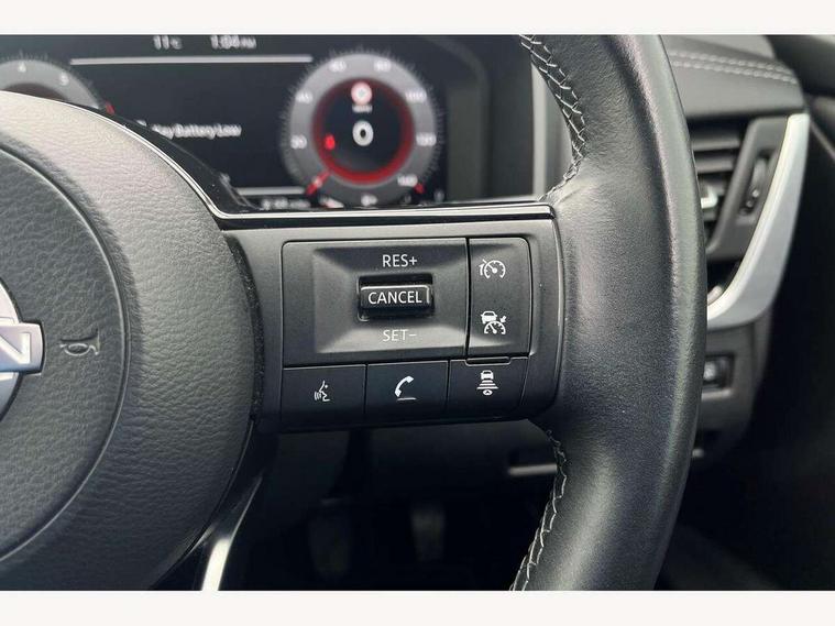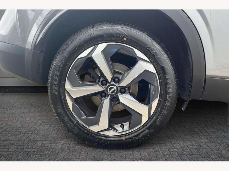 Android auto/Apple CarPlay (Wired), Blind spot warning, Drive modes (sport, normal, eco), Electric speed sensitive power steering, Emergency and breakdown call, Front and rear parking sensors, Full Digital 12.3" TFT Digital Combimeter, Google maps services - search, weather, 3D maps and Google street view, Idle stop/start system, Intelligent around view monitor, Intelligent Cruise control (ICC), Intelligent driver alert system, Intelligent forward collision warning, Intelligent lane intervention, Lane departure prevention, Lane departure warning system, Maximum speed limiter, Moving object detection, Nissan connect 12.3 inch touchscreen infotainment system, Nissan connect navigation, Push button starter, Rear cross traffic alert, Rear view camera, Remote control services - door locks, lights, horn and car locator, Telematics - notifications and connectivity services, TomTom live traffic services, Traffic sign recognition with legal speed adjustment, Trip computer, Virtual personal assistant and firmware over the air capability, Wireless apple carplay, 6 speakers, AM/FM audio system with DAB, Bluetooth audio streaming, Front USB connections (Type-A and Type-C), Rear USB charging only ports (Type-A and Type-C), Auto dimming rear view mirror, Auto rear wiper when reversing, Automatic hazard signal with emergency stop signal, Body colour mirror caps, Body coloured door handles, Bodyside mouldings, Chrome side window finisher, Door handle with button, Electric auto folding door mirrors, Electrically adjustable and heated door mirrors with LED turn indicator, Follow me home headlights, High beam assist, Intelligent auto headlights, LED daytime running lights, LED Headlights, LED rear lights, One touch front and rear electric windows with remote opening and closing, Partially body coloured bumpers, Privacy glass, Rear bumper with graphite insert, Rear reversing light (bulb lighting), Rear roof spoiler, Rear side wing doors, Rear styling plate, Shark fin antenna, Splash free rain sensing wipers, Super UV and infrared cut glass, Three blink turn signal, 12v power socket in dashboard and luggage, 2x Rear coat hooks, 3 bench rear seats in 2nd row, 3 rear headrests, 4 folding assist grip, 6 Luggage hooks - 4 on floor, 2 on side, 6-way manually adjustable driver's seat, 60/40 split folding rear seat bench, Ambient lighting around centre console, Centre console storage tray, Chrome interior door handles, Cloth monoform upholstery, Driver and front passenger sunvisors with illuminated vanity mirrors, Driver seat back pocket, Dual zone automatic climate control with pollen filter, Electrically adjustable lumbar support for driver, Front and rear door storage, Front centre console and armrest, Front cupholders x 2, Front door with bottle holders, Glovebox with light, Hard trunk cover, Height adjustable driver's seat, Height adjustable front headrests, Height adjustable passenger seat, Leather shift knob, Leather steering wheel, Luggage board system, Luggage space lighting, Manually adjustable passenger (slide recline + lifter), Multifunction steering wheel, Passenger seat back pocket, Rear armrest with 2 cupholders, Rear door bottle holders, Single front passenger seat, Soft PVC kneepad, Steering wheel switches, Sunglasses holder, Tilt/telescopic adjustable steering wheel, Two rear isofix child seat anchorage points with top tether, Welcome light and console tray ambient lighting, 3x3 point rear seatbelt pretensioners + load limiters, ABS with EBD and brake assist, Active brake limited slip, Auto hold function, Child locks on rear doors, Curtain and front side, far side airbags, Driver and passenger airbags, Driver, passenger and 2nd row rear seat belt reminder, Electronic parking brake, Front seatbelt pretensioners + load limiters, Height adjustable front seatbelts, Hill start assist, Intelligent blind spot intervention, Intelligent front emergency braking with pedestrian, cyclist recognition and junction assist, Intelligent rear automatic braking, Tyre pressure monitoring system, Vehicle dynamic control, Capless fuel filler, Engine immobiliser, Intelligent Key, Remote central door locking with deadlocking, Thatcham Cat.1 alarm, Interior instrumental panel B finisher, 18" Diamond cut alloy wheels, Tyre puncture repair kit,