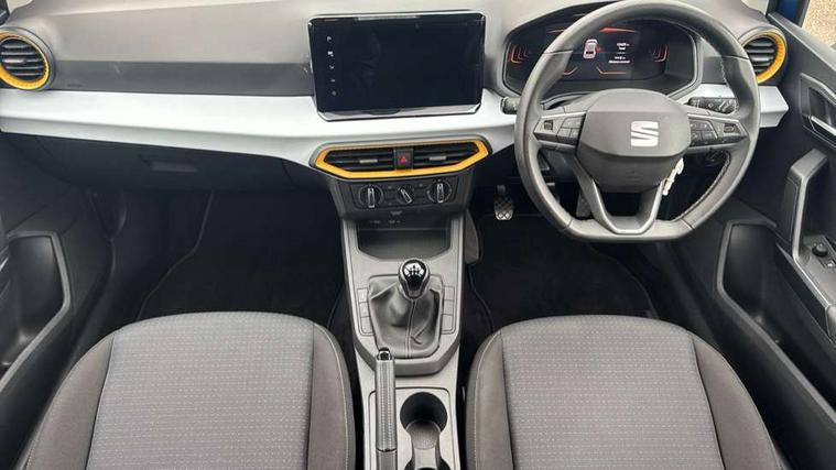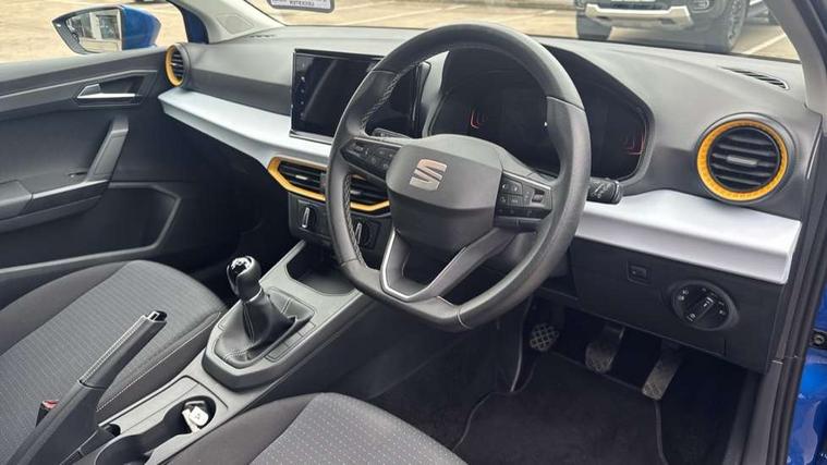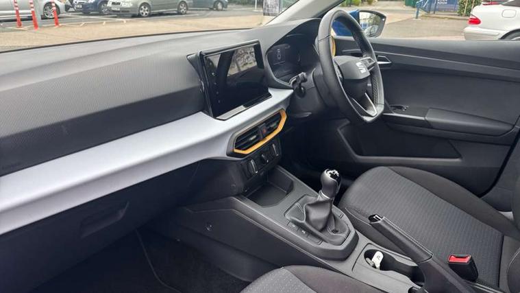 'Lights On' Reminder warning buzzer, 8" Digital cockpit, 9.2" touchscreen navigation system with type C USB socket, Voice control and DAB/AM/FM radio, Auto start and stop system, Bluetooth audio streaming with handsfree system, Cruise control, Digital clock, E-call, Full link smartphone integration with mirror link, wireless apple carplay, Google android auto + USB Type C cable for apple and android devices, Lane assist, Low fuel warning light, Outside temperature gauge, Power Steering, Rear parking sensor, Seat connect plus with safety, service, remote and online, SEAT logo boot release, Speed limiter, Traffic sign recognition, Trip computer, Comfort suspension, 6 speakers, Auxiliary input socket, Radio/MP3 player, SD card slot, Steering wheel mounted controls, Anti theft roof antenna, Body colour bumpers, Body colour door handles, Body colour door mirror caps, Dimming interior rear view mirror, ECO LED automatic headlights and LED daytime running lights, Electric front windows, Electric headlight adjustment, Electrically adjustable door mirrors, Front/rear fog lights, Halogen tailights, Rain sensor, Rear side wing doors, Rear wiper, Third brake light, 3 seat bench in 2nd row, 60/40 split folding rear seat, Air conditioning with dust and pollen filter, Chrome interior detailing and grey headlining, Cloth upholstery, Comfort seats, Front courtesy lights, Front cupholders x 2, Front reading lights, Gear shift indicator, Glovebox, Height adjustable front and rear headrests (five), Height adjustable front seats, Height/reach adjust steering wheel, Illuminated boot, Instrument lighting with brightness control, Isofix, Leather multifunction flat bottomed sports steering wheel, Passenger sunvisor, Single front passenger seat, Sunvisors with mirror and driver side card holder, Safety and driving pack (S) - Ibiza, 3 point seatbelts on all 3 rear seats, ABS, Active front headrests, Child locks on rear doors, Electronic stability control, Energy recovery system, Front assist forward collision warning and autonomous emergency braking, Front driver and passenger side airbags with curtain airbag and front passenger airbag deactivation, Hill hold control, Multi-Collision braking, Seat belt reminder for front and rear seats, Tiredness recognition system, Tyre pressure monitoring system, Locking wheel bolts, Remote central locking + deadlocks, 16" Design machined alloy wheels in Nuclear grey,
