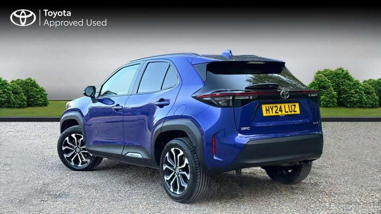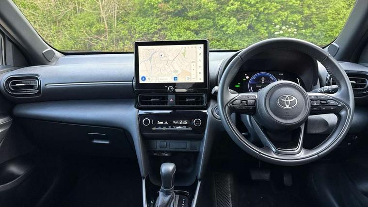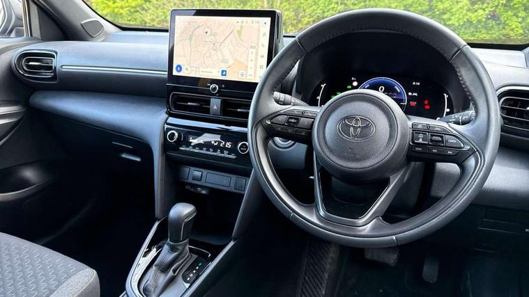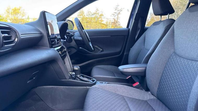 10.5" Multimedia display screen, 7" Multi information display screen, Adaptive cruise control, multi info switches on steering wheel, Adjustable speed limiter, Bluetooth connectivity, Color multi-information display, Digital speedometer, Digital tachometer, Drive mode selector, Driver attention alert system, eCall emergency system, Electric power steering, Emergency driving stop system, Full range intelligent adaptive cruise control, Hybrid system indicator, Intersection turn assist, Key reminder warning, Lane trace assist, My T Connected services, Pre-collision system enhanced with emergency steering assist, Reversing camera, Road sign assist - RSA, Static guide lines on reversing camera, Telephone switch on steering wheel, Wireless Smartphone integration incl Apple CarPlay, Steering assisted vehicle stability control, 6 speakers, DAB Digital radio, Front USB Type-C connector, Front USB-C device charger, 3rd brake light, Acoustic windscreen glass, Anti-jam protection on power windows, Auto high beam [AHB] with on/off switch, Auto intermittent windscreen wipers, Automatic headlights, Automatic headlights cut-off, Black door moulding, Black lower front grille, Black protection moulding on side doors, Black roof rails, Black upper front grille, Black wheel arch mouldings, Body colour door handles, Body colour front bumper, Body colour rear bumper, Electric adjustable heated door mirrors, Follow me home headlights, Front and rear electric windows with auto up/down function, Headlight cut off reminder, Indicators integrated on door mirrors, Intermittent rear wiper, LED daytime running lights guide, LED front fog lights, LED front light guide, LED Indicators, LED projector headlights, LED rear lights with sequential indicators, Manual day/night rear view mirror, Manual headlight levelling, Manually retractable door mirrors, Noise reduction layer on windscreen, Privacy glass, Rain sensor, Rear side wing doors, Rear spoiler, Rear window defogger, Shark fin antenna, 12v power outlet - front, 2x Rear coat hooks, 3 seat bench in 2nd row, 3 spoke leather steering wheel, 40/60 split deckboard, 40:20:40 split folding rear bench seat, Adjustable rear headrests, Adjustable speed limiter switch on steering wheel, Auto air conditioning, Black roof lining, Boot light, Central armrest, Driver and front passenger personal lights, Driver and front passenger Whiplash injury Lesseing seats, Fabric door trim, Fabric upholstery, Front console box, Front cup holders, Front door pockets, Front head restraints, Front/rear assist grips, Gear shift indicator, Gloss black surround on gear shift console, Height adjustable driver's seat, Height adjustable front passenger seat, Hooks for luggage holding belts, ISOFIX child restraint system, Lane departure alert switch on steering control, Leather gearshift, LED centre room light, Manual telescopic and tilting steering wheel, Mirror on driver and passenger sun visor, Pollen air filter, Power adjustable lumbar support on driver seat, Rear cup holders, Rear door pockets, Rear head restraints, Remote air-conditioning system, Single compartment glovebox, Single front passenger seat, Soft tonneau cover, Storage box under boot floor, Voice recognition switch on steering wheel, Yaris cross floor mats, 3x3 point rear seat belts, ABS+EBD+Brake assist, Driver and passenger central airbags, Driver and passenger front airbags, Driver and passenger side airbags, Electronic parking brake, Emergency brake light system (EBS), Front seat belt reminder, Hill start assist control (HAC), Passenger airbag on/off switch, Pre-collision system with pedestrian and cyclist detection, Rear door child safety locks, Rear passenger side airbags, Rear seat belt reminder, Traction control, Tyre pressure warning system, Immobiliser, Intrusion alarm, Keyless smart entry with push button start, Power door locks, Power passenger window lock, Remote door lock, Gloss black side air vent surrounds, Tyre repair kit,