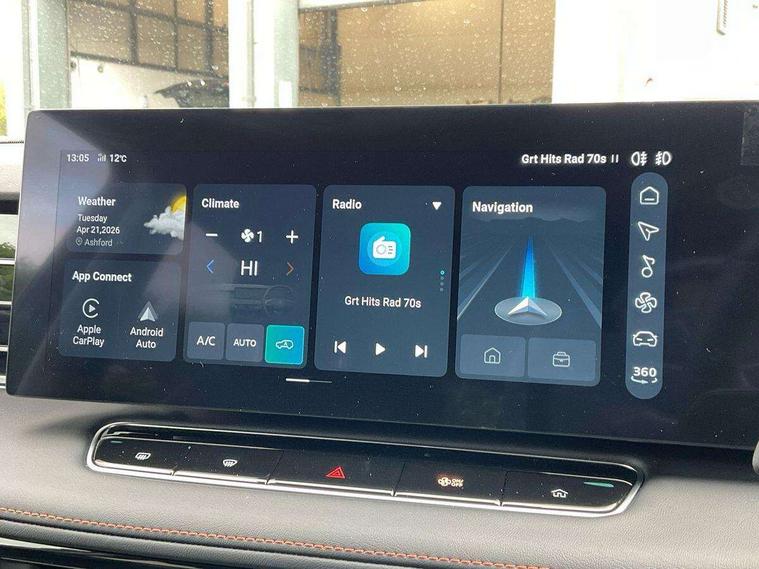 Driver attention alert, 12.3" colour touchscreen, 12.3" Virtual driver information display, 360 degree parking camera, Adaptive cruise control, Android Auto, Apple CarPlay, Blind spot detection, Bluetooth connectivity, Driver memory function, Emergency call service, Forward collision warning, Front parking sensors, Intelligent speed limit assist, iSmart, Lane change assist, Lane keep assist system (LAS) with Lane departure warning system (LDWS), Live services, PAS, Power tailgate, Rear cross traffic alert, Rear parking sensors, Satellite navigation system, Traffic jam assist, Trip computer, Wireless charging, 4 USB ports 2 front and 2 rear, 8 Speaker audio system, DAB audio, Auto dimming rear view mirror, Automatic headlights, Electric adjustable/heated/folding door mirrors with memory, Follow me home headlights, Front and rear aero wiper, Front and rear electric windows with one-touch up/down, Front fog lights, Intelligent high beam, LED 3rd brake light, LED daytime running lights, LED Headlights, LED rear lights, Rain sensing wipers, Rear privacy glass, Rear side wing doors, Silver roof rails, Vehicle to Load, 12V power sockets, 2nd row 60/40 split fold seat, 3 rear headrests, 3 seat bench in 2nd row, 3 stage heated front seats, 4 way electric adjustable passenger seat, 6 way electric adjustable drivers seat + lumbar support, Dual zone automatic air conditioning, Front and rear reading lights, Front centre sliding armrest with storage compartment, Front headrests, Height and reach adjustable steering wheel, ISOFIX restraints on outer rear seats x2, Multi function steering wheel, Single passenger seat, 3x3 point rear seatbelts, ABS/EBD, Active emergency braking with pedestrian/Bicycle detection, Anti rolling protection, Door open warning, Drivers seatbelt reminder, Dual front airbags, Electric parking brake with auto hold function, ESP, Front and rear passenger seat belt reminder, Front centre airbag, Front passenger airbag deactivation switch, Front seat belt height adjuster, Front seatbelts (3-point + pretensioner + load limiter), Front side airbags, Hill descent control, Hill launch assist, Manual rear child locks, Rear outer seatbelt pretensioner and load limiter, Side curtain airbags, Tyre pressure monitoring system, Alarm system and engine immobiliser, Keyless entry and push button start system, Remote central locking, Speed sensing door locks, 19" Blade diamond cut alloy wheels, Tyre repair kit,
