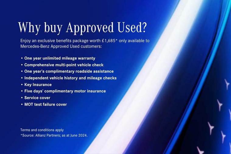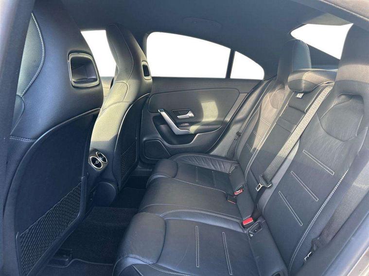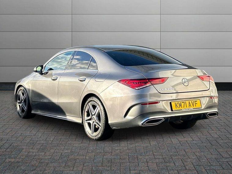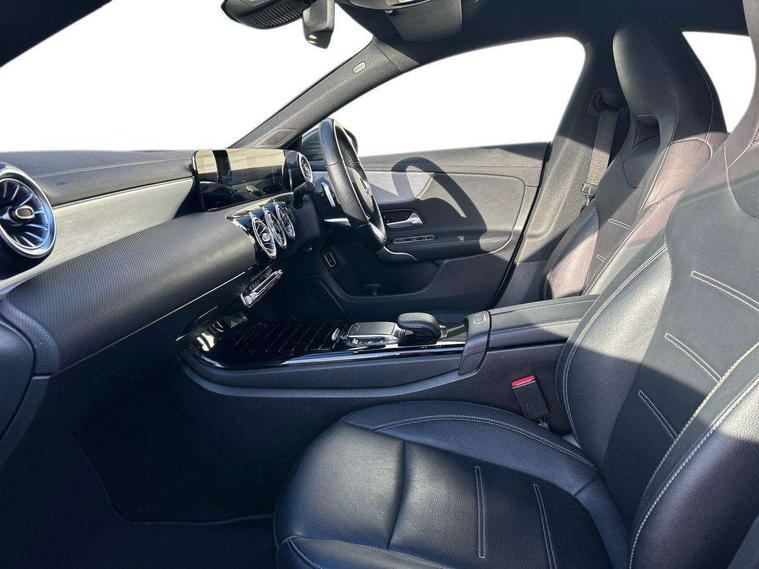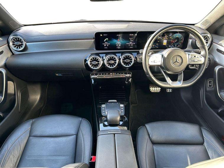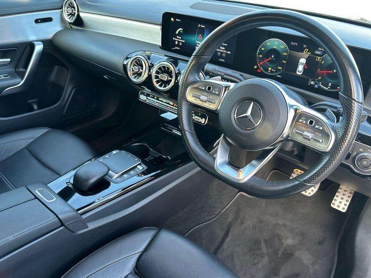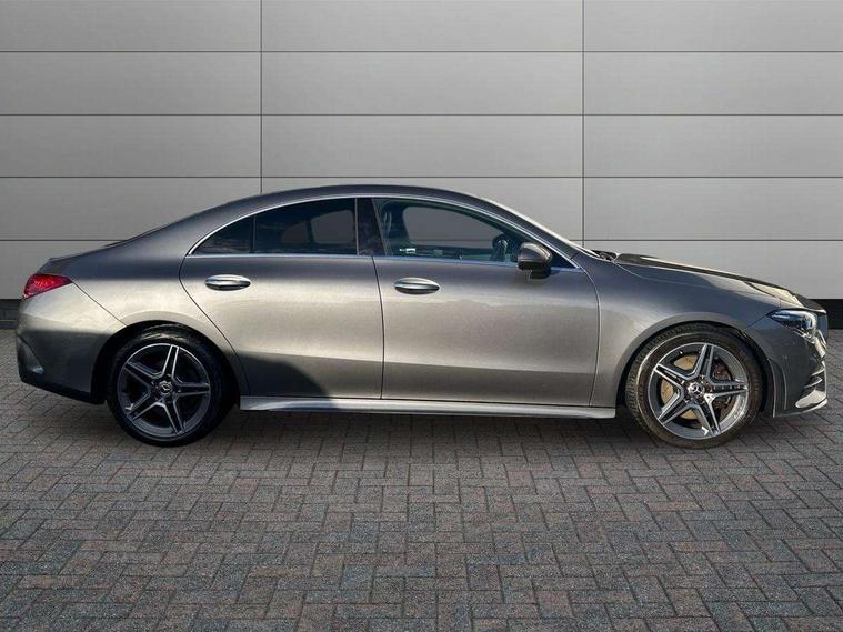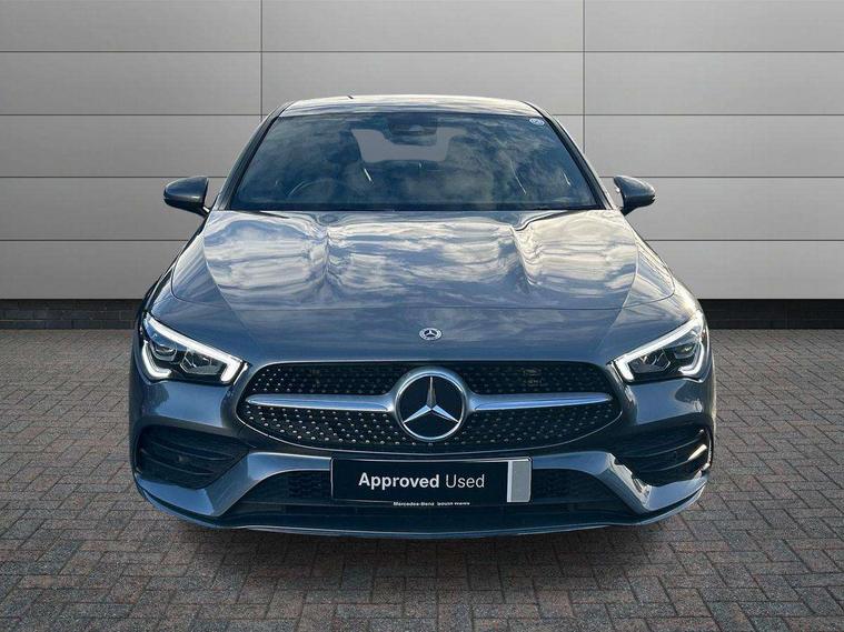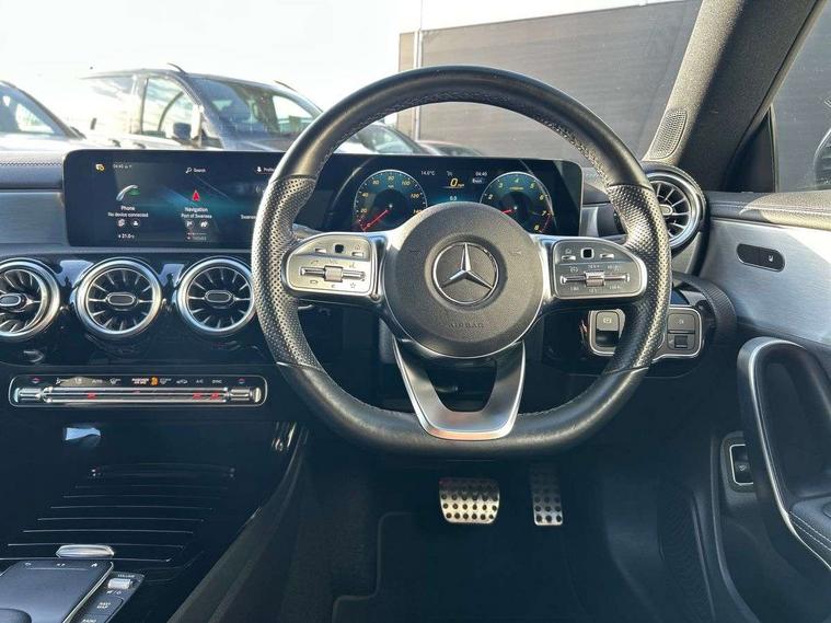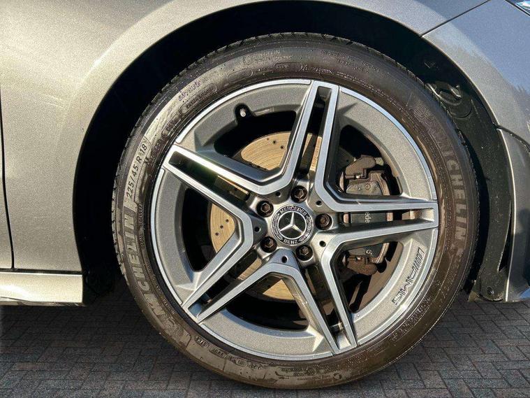 10.25 inch Instrument display with digital cockpit, 10.25 inch touchscreen central media display, Active lane keeping assist, Attention assist - Monitors steering behaviour and long journey fatigue, Bluetooth connection, Car wash mode, Cruise control with limiter, Direct steer system with speed sensitive power steering, DYNAMIC SELECT with a choice of driving modes (ECO, Comfort, Sport and Individual), ECO start/stop function, Fluid level warning indicator for fuel, oil, coolant and washer fluid, Hard-disk navigation, Hey Mercedes Voice activation, Lamp failure indicator, Mercedes me connect including emergency call system, accident recovery, breakdown management and maintenance, Mercedes me remote services, Outside temperature gauge, Owners manual and service booklet in English, Pre-installation of private car share, Preinstallation for Mercedes Benz link, Radio aerial integrated into front and rear windshields, Service indicator (ASSYST), Smartphone integration with Apple CarPlay and Android auto, Speed limit assist, Trip computer in multifunction display with current consumption indicator, 7G-DCT 7 speed automatic transmission, Lowered comfort suspension, Rear axle multi-link, DAB digital radio tuner, MBUX multimedia system with DAB digital radio and touchpad including satellite navigation, Mercedes Benz sound system (100 W) with 6 speakers, USB (type C) ports (2) in stowage compartment and 1 in front of centre console, Adaptive brake lights, AMG body styling with AMG front apron and rear apron and visible exhaust tailpipe in chrome trim elements, AMG bodystyling side skirts, Body colour bumpers, Body colour door handles, Chrome beltline strips, Chrome weather strip, Diamond radiator grille pins in chrome with silver painted louvres and chrome insert, Electric windows, Electrically adjustable and heated door mirrors with integrated LED indicators, Exhaust system with 2 Visible tailpipe trim elements and rear apron with trim in chrome, Headlamp assist automatic headlamp activation, Heated glass rear windscreen + timer control, High level LED third brake light, Interior mirror with black reading lamps and frameless, LED high performance headlamps with integrated LED daytime running lights, LED tail lamp, Privacy glass with dark tinting on rear side windows and rear window, Rain sensing windscreen wipers with two sensitivity settings, Rear fog lamp, Window line trim strip in chrome, 3 spoke flattened bottom nappa leather multifunction steering wheel with perforated leather in grip area, 40:20:40 split folding rear seats with backrest, Air conditioning - Two zone thermotronic luxury automatic climate control with display, Air vents with surround in silver chrome, Automatic child seat recognition sensor, Black roof lining, Brushed stainless steel sports pedals with rubber studs, Floor mats with stitched AMG lettering, Front centre armrest with stowage, Galvanished gear shift paddles on steering wheel, Heated front seats, Illuminated front door sills with changeable cover, Illuminated glove compartment stowage, Interior lighting - 64 colour Ambient lighting, Luggage net on driver/front passenger seat backrest, Manually adjustable front seats, Manually height and reach adjustable steering column, Rear armrest with two integral cup holders for drinks, Rear head restraints, Sport seats with fixed head restraints, Stowage compartment in centre console with retractable cover, Sunvisors with illuminated vanity mirrors, Touchpad on center console, Twin front cupholders, Two outer rear seat isofix and top tether child seat fixing points, Light and sight pack - CLA, Mirror pack - CLA, Parking package - CLA, Seat comfort pack - CLA, Active bonnet pedestrain safety measure which detects an impact and raises bonnet by 65mm, Active brake assist includes forward collision warning system with autonomous braking, Adaptive brake assist with hold function and hill start assist, Anti-lock braking system (ABS), Black seat belts, Bonnet with power domes, Brake pad wear warning indicator, Childproof locks manually operated for rear doors and electrically operated for rear power windows, Crash responsive emergency lighting, Driver and front passenger head and sidebags, Driver and front passenger windowbags, Drivers knee airbag, Dual stage driver and front passenger airbags, Electric parking brake, Electronic stability programme with acceleration skid control, ESP curve dynamic assist, Front and rear seatbelt reminder, Front passenger seat occupancy sensor, Three point rear seat belts, Tyre pressure monitoring system, Warning triangle and first aid kit, Remote central locking and crash sensor with emergency opening function, Urban guard vehicle protection system with immobiliser and interior protection, Light aluminium with longitudinal grain interior trim, 18" 5 twin spoke design alloy wheels painted in titanium grey with high sheen finish, Summer tyres, Tirefit tyre sealant kit,