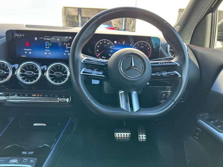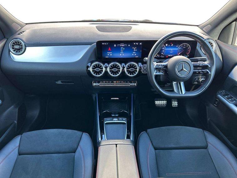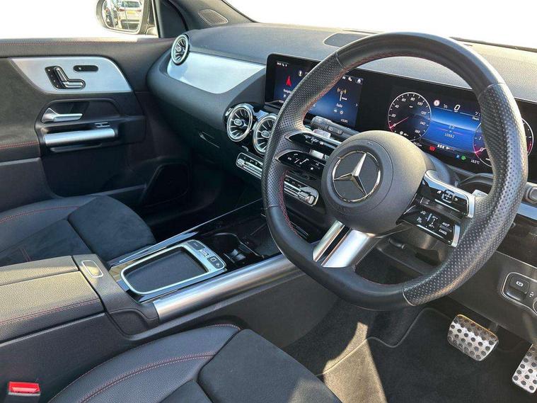 10.25 inch touchscreen central media display, 10.25" Digital instrument cluster display screen, Attention assist, Blind spot assist, Direct steering, DYNAMIC SELECT with a choice of driving modes (ECO, Comfort, Sport and Individual), Easy-pack tailgate, ECO start/stop function, Fingerprint scanner, Fluid level warning indicator for fuel, oil, coolant and washer fluid, Hard-disk navigation, Hey Mercedes Voice activation, Lamp failure indicator, Lane keeping assist (LKA), Mercedes me connect including emergency call system, accident recovery, breakdown and maintenance management, Mercedes me remote services, Multi function trip computer, Outside temperature gauge, Owners manual and service booklet in English, Pre-installation of private car share, Radio aerial integrated into front and rear windshields, Service indicator (ASSYST), Smartphone integration with Apple CarPlay and Android auto, Speed limit assist, Wireless charging, Lowered comfort suspension, Rear axle multi-link, Bluetooth connectivity including audio streaming, DAB Digital radio, MBUX multimedia system, Mercedes-Benz (225w) sound system with 10 speakers, Adaptive brake lights, Adaptive highbeam assist, Aluminium roof rails, AMG front apron with front splitter in the colour of the vehicle with chrome trim element, AMG rear apron with visible tailpipe trim and chrome trim element, AMG specific/dual flow exhaust pipes in chrome (non-functional), Automatic headlamp activation, Beltline trim and window line trim strip in high gloss aluminium, Black grained side sill trim with chrome inlay, Body coloured door handles with chrome insert for keyless entry, Car wash function, Dark privacy glass from B-pillar backwards, Electric front windows, Electric rear windows, Electrically adjustable and heated door mirrors with integrated LED indicators, Exhaust system with 2 Visible tailpipe trim elements and rear apron with trim in chrome, Heat insulating dark tinted glass, Heated glass rear windscreen + timer control, Illuminated door sill panels with Mercedes-Benz lettering, Interior mirror with black reading lamps and frameless, LED high performance headlamps with integrated LED daytime running lights, LED tail lights, LED third brake light, Radiator diamond grille with chrome pins and central Mercedes star, single louvre in matt grey with chrome inserts and black highlights, Rain sensor windscreen wipers, Rear fog lights, Rear side wing doors, Rear wiper, Wheel arch liners in the colour of the vehicle, 3 seat bench in 2nd row, 3 spoke flat bottom multifunction nappa leather steering wheel, 40:20:40 split folding rear seat backrests, Adjustable head restraints, Air conditioning - air vents with silver chrome surround, Air conditioning - Two zone thermotronic luxury automatic climate control with display, AMG floor mats, Auto Mercedes-Benz child seat recognition sensor, Black roof lining, Courtesy light in boot, Electrically adjustable front memory seats with four way lumbar support, Fluorescent jacket, Front centre armrest with stowage, Galvanished gear shift paddles on steering wheel in silver chrome, Heated front seats, Illuminated glovebox, Interior lighting - 64 colour Ambient lighting, Luggage net on driver/front passenger seat backrest, Manually height and reach adjustable steering column, Single front passenger seat, Sports pedals in brushed stainless steel with black rubber studs, Sports seats, Sports steering wheel, Stowage compartment in centre console, Stowage compartment with retractable cover, Sunvisors with illuminated vanity mirrors, Twin front cup holders, Two outer rear seat isofix and top tether child seat fixing points, Comfort seat pack - GLA Class, Interior lighting with light and sight pack - GLA, Keyless go comfort package - GLA, Mirror pack - GLA Class, Parking package with reversing camera - GLA, USB package plus - GLA, 3 rear 3 point seatbelts, ABS with Brake Assist, Active bonnet pedestrain safety measure which detects an impact and raises bonnet by 65mm, Active brake assist includes forward collision warning system with autonomous braking, Adaptive brake assist with hold function and hill start assist, Bonnet with power domes, Brake pad wear warning indicator, Childproof locks manually operated for rear doors and electrically operated for rear power windows, Crash responsive emergency lighting, Driver and passenger head and side airbags, Drivers knee airbag, Dual stage driver/passenger airbags, Electronic parking brake, ESP curve dynamic assist, ESP with ASR, Front and rear seatbelt reminder, Front brake callipers with Mercedes Benz logo lettering on front, Front brake discs internally ventilated and perforated, Front passenger seat occupancy sensor, Sports braking system, Tyre pressure monitoring system, Warning triangle and first aid kit, Window airbags, Alarm system with immobiliser and interior protection -Thatcham category 1, Guard 360 degree vehicle protection, Keyless Go starting function, Remote central locking and crash sensor with emergency opening function, Black seatbelts, Light longitudinal grain aluminium trim, 20" AMG multi spoke light alloy wheels aerodynamically optimised and painted in black with a high-sheen finish RVU, Summer tyres, Tirefit tyre sealant kit,