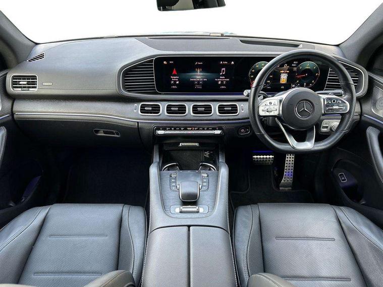 Attention assist, Cockpit display 12.3" widescreen digital instrument cluster, Crosswind Assist, Cruise control, Direct steer speed sensitive steering, DYNAMIC SELECT with a choice of driving modes (ECO, Comfort, Sport and Individual), Easy-pack tailgate - Powered opening/closing automatically, ECO start/stop function, Head up Display, Lane keeping assistant (LKA), Mercedes me connect including emergency call system, accident recovery, breakdown and maintenance management, Outside temperature display, rear seatbelt status indicator, Parking pilot with 360 degree camera, Remote online technical preparation for Mercedes me connect, Reversing camera, Service indicator (ASSYST), Smartphone integration with Apple CarPlay and Android auto, Sports direct steer system with speed sensitive power assistance, Traffic Sign Assist, Traffic sign recognition including wrong way warning function and display of posted speed limits in the instrument cluster, Wireless charging, 4MATIC permanent four wheel drive, 85 litre fuel tank, 9G TRONIC automatic transmission with steering column gear selector, DIRECT SELECT steering wheel gearshift paddles, Airmatic air suspension with adaptive damping system, Diesel particulate filter (DPF), Bluetooth interface for hands free and audio streaming, Burmester surround sound system, DAB Digital radio, Hard disk navigation with MBUX multimedia system, 3rd brake light, Adaptive brake lights, Adaptive high beam assist plus, Aluminium look, illuminated running boards with rubber studs, AMG bodystyling front and rear bumpers, Black door mirrors, Body coloured bumpers, Daytime running lights, Electric panoramic sunroof with sunblind, Electric windows with one touch opening/closing and obstruction sensors, Exhaust system - twin pipe with two integrated chrome tailpipe trims, Front and rear underbody protection with chrome look finish, LED tail lamp, Magic vision control with adaptive windscreen wiper system, Multi beam LED headlights, Privacy glass - heat insulating dark tinted glass, Radiator grille with integrated star and single louvre in matt iridium silver with chrome trim, Rain sensing windscreen wipers, Rear side wing doors, Rear wash/wipe, Top surround of side windows in polished aluminium, 2 cup holders in front and rear, 2 rear head restraints, 3 seat bench in 2nd row, 3 spoke AMG multifunction steering wheel with touch control buttons, trimmed in black nappa leather with flattened bottom section, 4 way adjustable front head restraints and 2 way rear head restraints, 40:20:40 split folding rear seats, AMG floor mats with AMG lettering, Artico man-made leather upper dash trim, Automatic child seat recognition sensor, Central stowage compartment with 12 V socket in centre console, Climatised front seats, Courtesy lights in rear grab handles with reading light functionality, Driver and front passenger cup holders temperature controller, Electric adjust front headrests, Electrically adjustable front seats with memory function, Electrically height and reach adjustable steering column with memory, Folding rear armrest, Front centre armrest with stowage compartment and illuminated grab handles, Glove compartment - lockable, air conditioned and illuminated, Heated front seats, Illuminated stainless steel door sill panels with Mercedes-Benz lettering, Interior lighting - 64 colour Ambient lighting, Luggage compartment cover, Nappa leather upholstery, Single front passenger seat, Sports pedals with stainless steel surfaces and rubber studs, Sunvisors with illuminated vanity mirrors, Thermotronic automatic 4 zone climate control, Touchpad, Two (type C) USB ports in centre console, Driving assistance pack - GLE Coupe, Interior chrome package - GLE, KEYLESS-GO Comfort package - GLE Coupe, Memory package - GLE Coupe, Mirror package - GLE Coupe, Night pack - GLE Coupe, Parking package - GLE Coupe, 3x3 point rear seatbelts, Active bonnet, Active braking assist, Adaptive brake assist with hold function and hill start assist, Airbags - windowbags, Anti-lock braking system (ABS), Black seat belts, Child proof door locks, Downhill speed regulation (DSR) with switch and variable speed control, Driver/front passenger airbag, Drivers knee airbag, Electronic four wheel traction control, Electronic parking brake, Electronic stability programme with acceleration skid control, First aid kit, warning triangle and high visibility jacket, Front side airbags, ISOFIX child seat attachment points two outer rear seats, Perforated front brake discs and brake calipers with Mercedes-Benz lettering, Pre-Safe anticipatory safety system, Tyre pressure monitoring system, Alarm system/interior protection/immobiliser, Chrome surround in electric key, Remote central locking, Urban guard vehicle protection, Dashboard and door, anthracite open pore oak wood trim, Summer tyres with noise reducing absorber, TIREFIT with tyre inflation compressor,