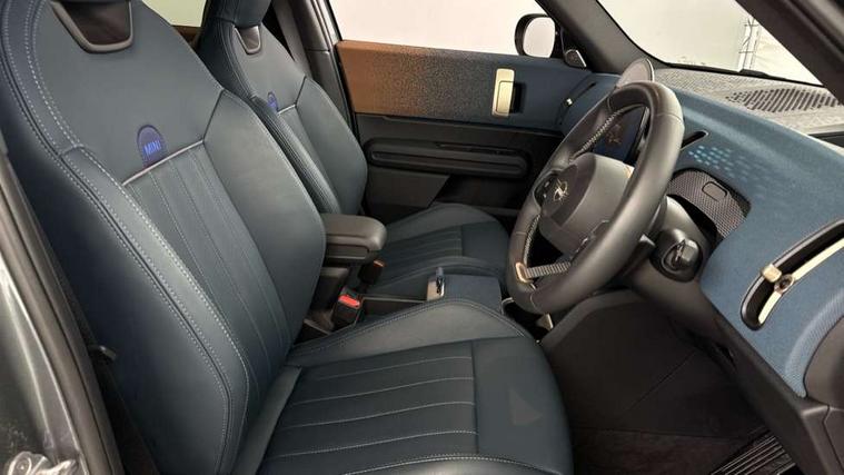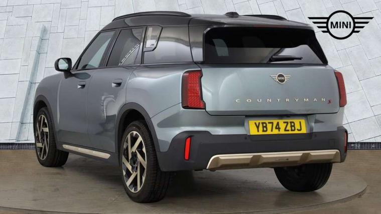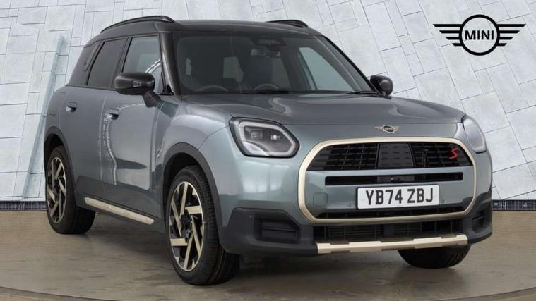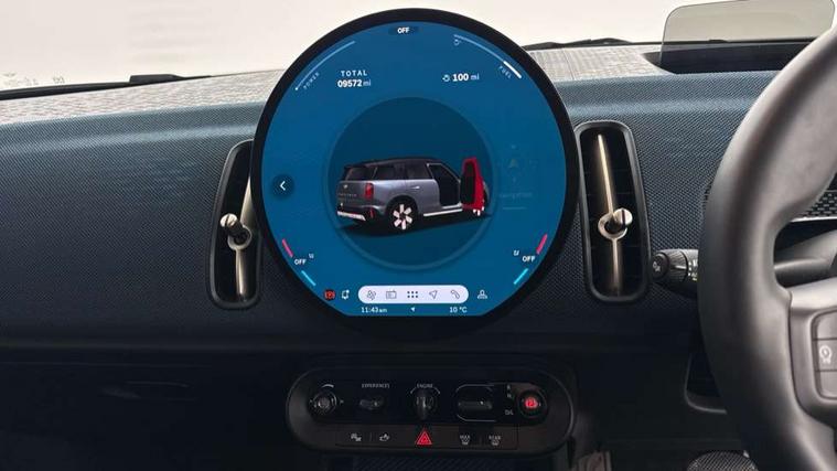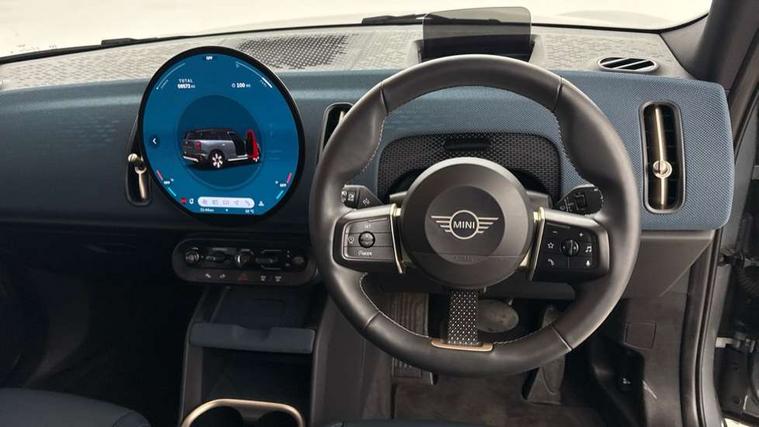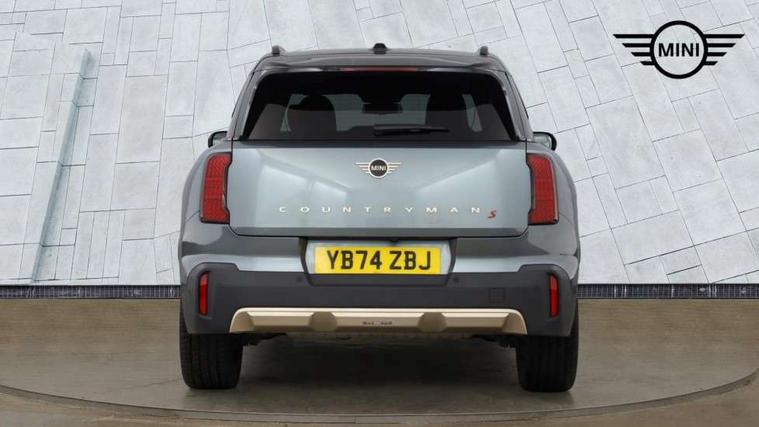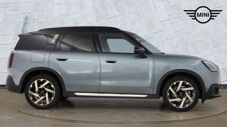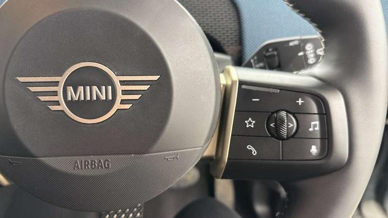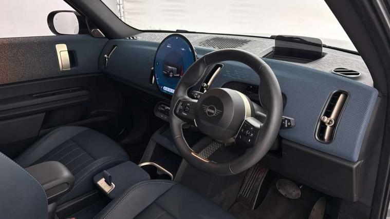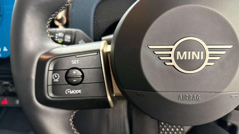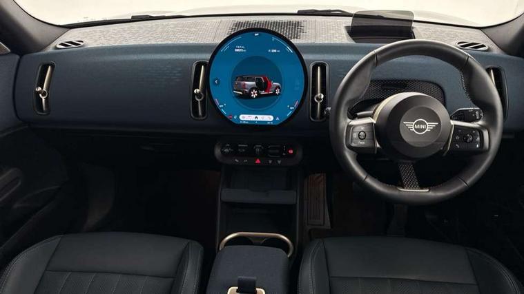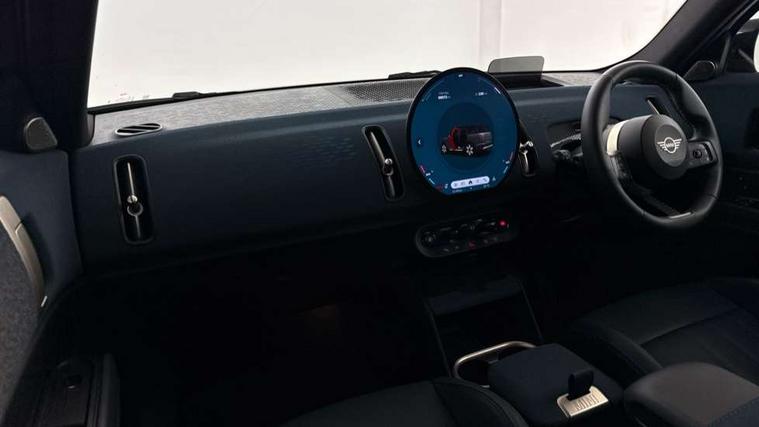 Bluetooth connection, Circular OLED Screen, Compatible mobile phone bluetooth with audio streaming, Cruise Control (DCC), Digital dashboard display, Driving assistant, Driving Assistant Plus Preparation, E-call, Electro-mechanical speed dependant steering assistance, MINI Experience Modes, MINI Head up display, Mini navigation system, MINI TeleServices, Parking assistant in camera and ultrasound based assistance system, rear view camera, parking aid and distance control, Auto transmission with Paddles, Larger capacity fuel tank, 6 speakers, DAB Digital radio, Personal eSim, Auto tailgate, Electric adjustable heated door mirrors, Front and rear electric windows, Heated rear window, High beam assistant, Interior rear-view mirror with automatic anti-dazzle function, LED daytime running lights, LED headlights with extended contents including Adaptable light signatures, LED rear lights, LED third brake light, Logos in Vibrant Silver, Rain sensor with auto headlights, Rear side wing doors, Rear window wiper, Roof rails, Vibrant silver grille surround, 3 Seat sliding rear bench in 2nd row, 60/40 split rear bench seat, Anthracite headliner, Auto air conditioning, Driver and front passenger seat heating, Floor mats, Front armrest, Front headrests, Front sport seats, Heated steering wheel, Height and length steering column adjustment, Lidded storage box in Petrol knit, Luggage compartment separating net, Rear headrests, Seat adjustment for rear seats, Single front passenger seat, Sport Vescin Steering Wheel, Sunvisors with vanity mirrors, Vescin synthetic leather upholstery, Vibrant Silver sill inlay, Wireless charging tray, Interior and exterior mirror package - Mini Countryman, 3x3 point rear seat belts, 6 Airbags - front, side, head and seat belt tensioners, ABS, DSC - Dynamic Stability Control, Electronic handbrake, Electronic Stability Programme (ESP), Front ISOFIX (iSize), Hill descent control, Hill hold assist, Hill start assist, Manual rear child locks, Traction control, Tyre pressure monitoring system, Warning triangle, Alarm system with tilt sensor, monitoring doors, bonnet interior and tailgate, Auto drive away locking, Comfort access system, Deadlocking function, Electronic vehicle immobiliser, Locking wheel bolts, Remote control locking, Start/stop toggle with keyless go, Petrol/Brown dashboard knit, MINI Mobility Kit,